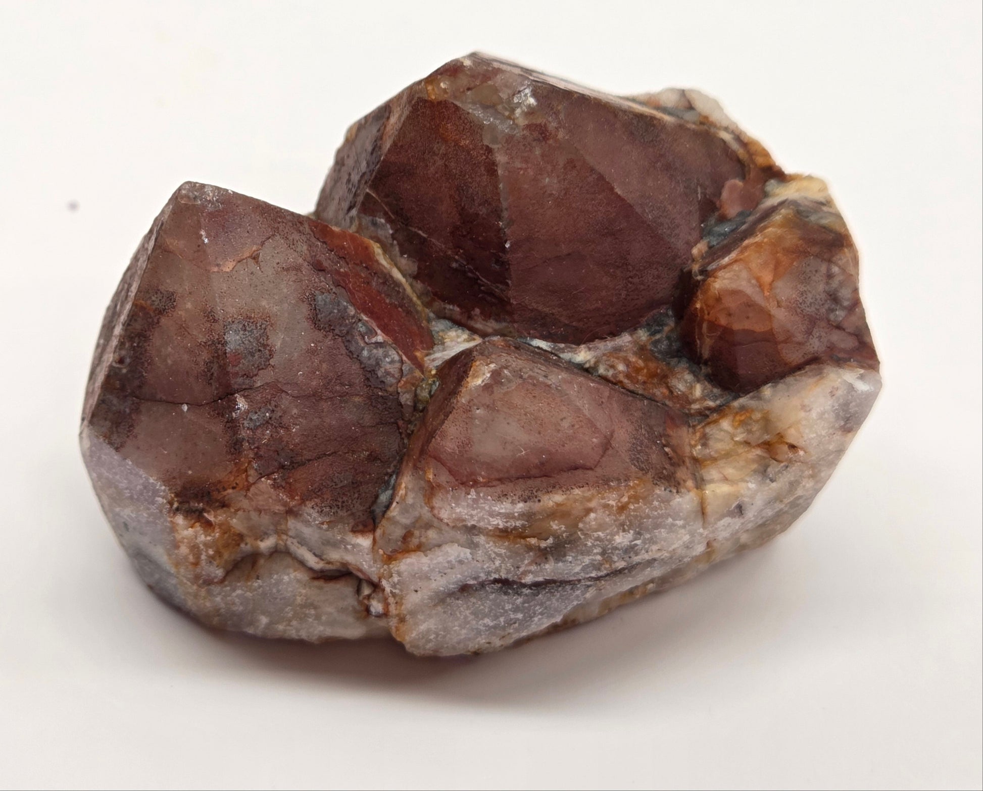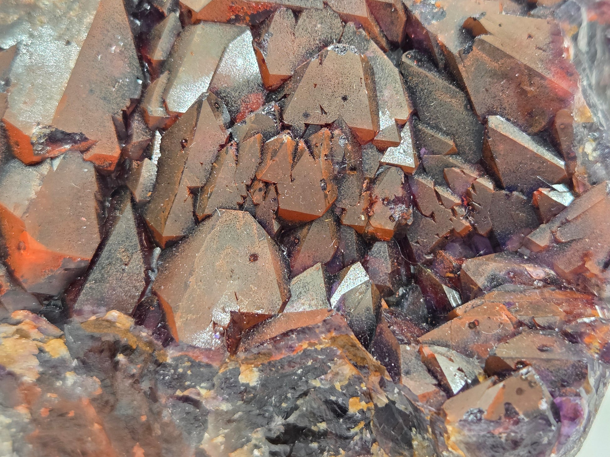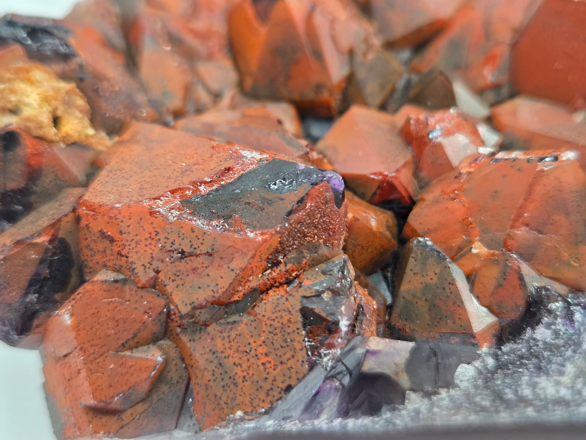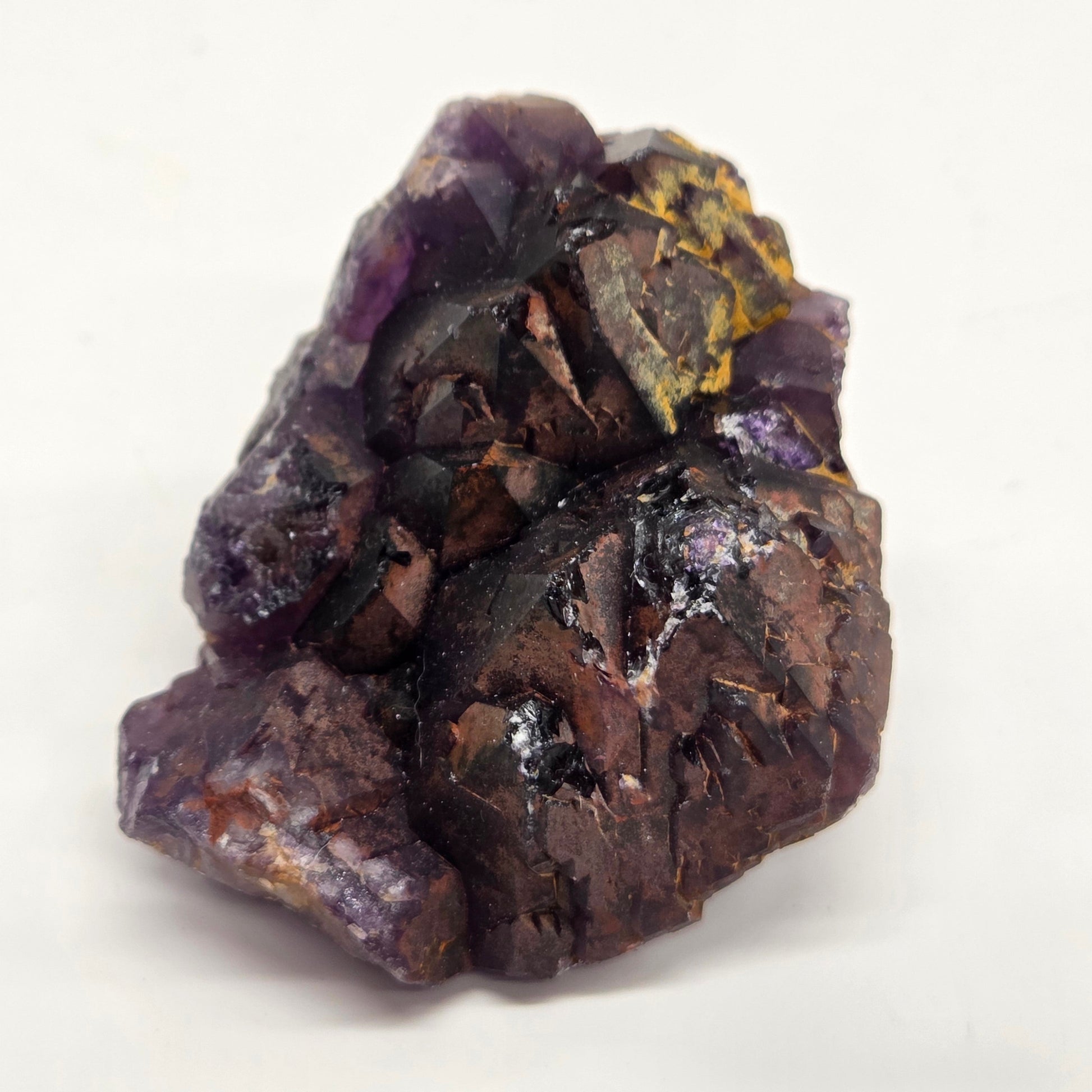 Amethyst with hematite (aka Alien Amethyst) is a natural combination of purple amethyst and the iron oxide mineral hematite. It appears as amethyst crystals with reddish hues, zones, or inclusions from the hematite.