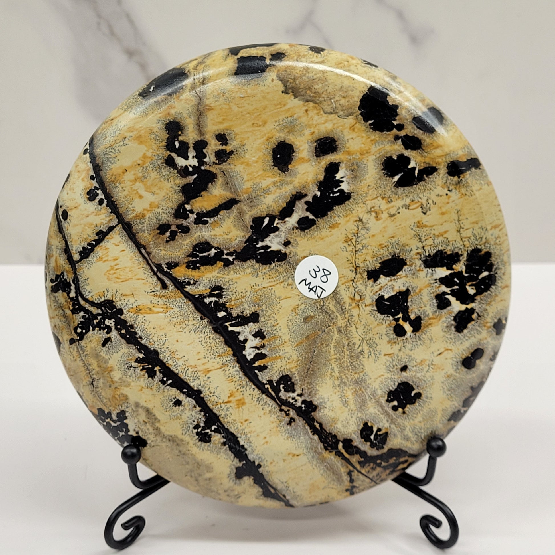 Chinese Picture Jasper is a type of Jasper known for its unique, landscape-like patterns naturally embedded within the stone. It's a type of dendritic siltstone found in mountainous regions of China, often called "Chinese Painting Stone" due to the resemblance of its patterns to Chinese landscape paintings. These patterns are created by various minerals like iron oxides and manganese that are deposited during the stone's formation.
