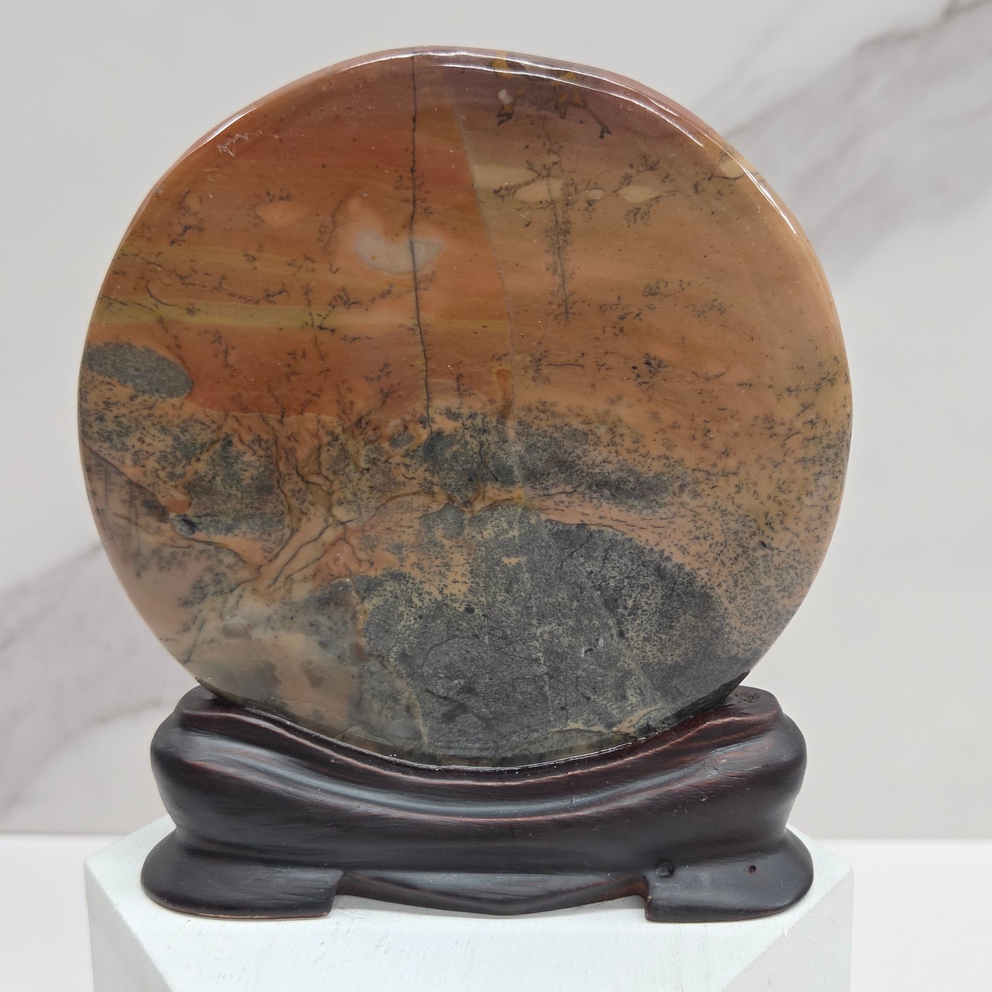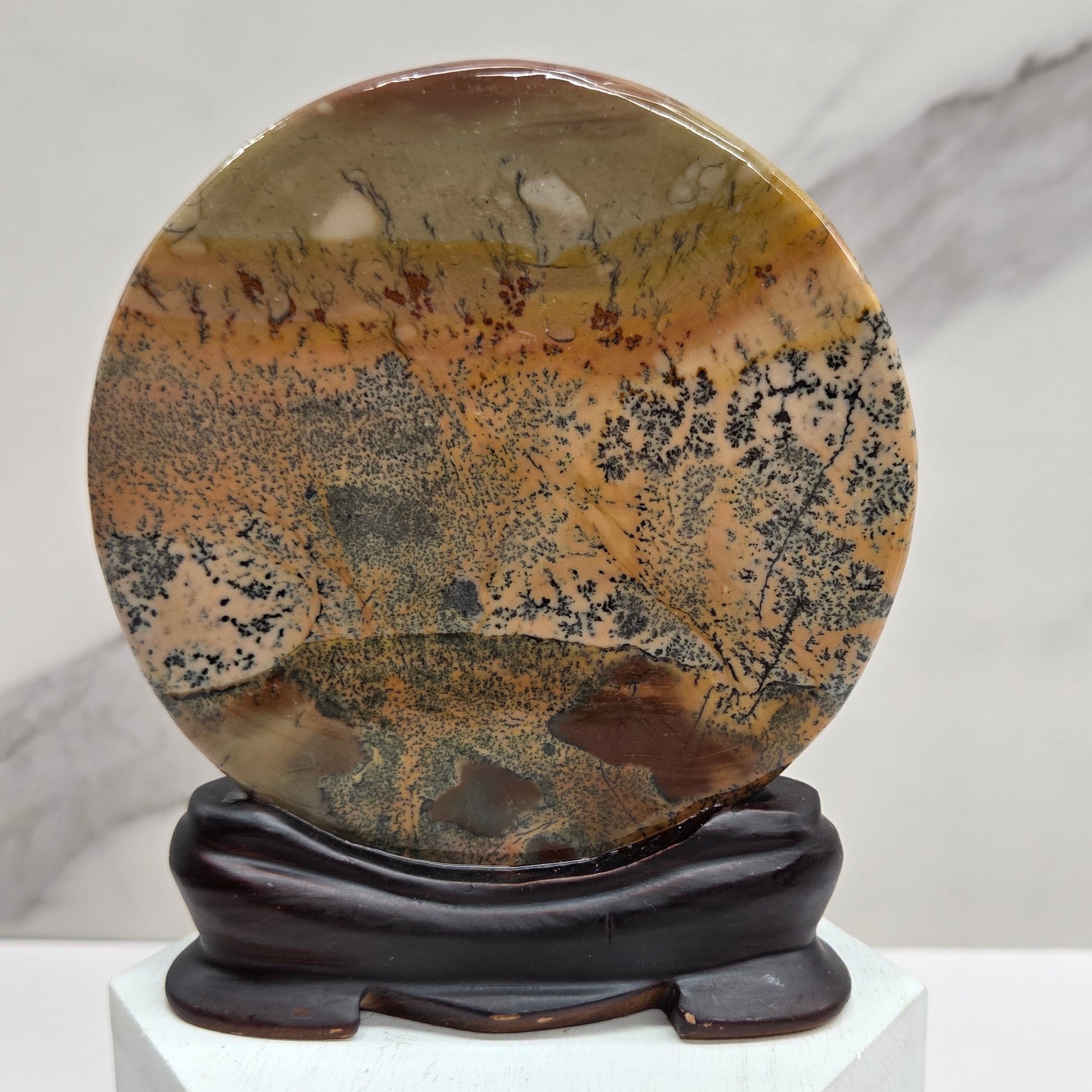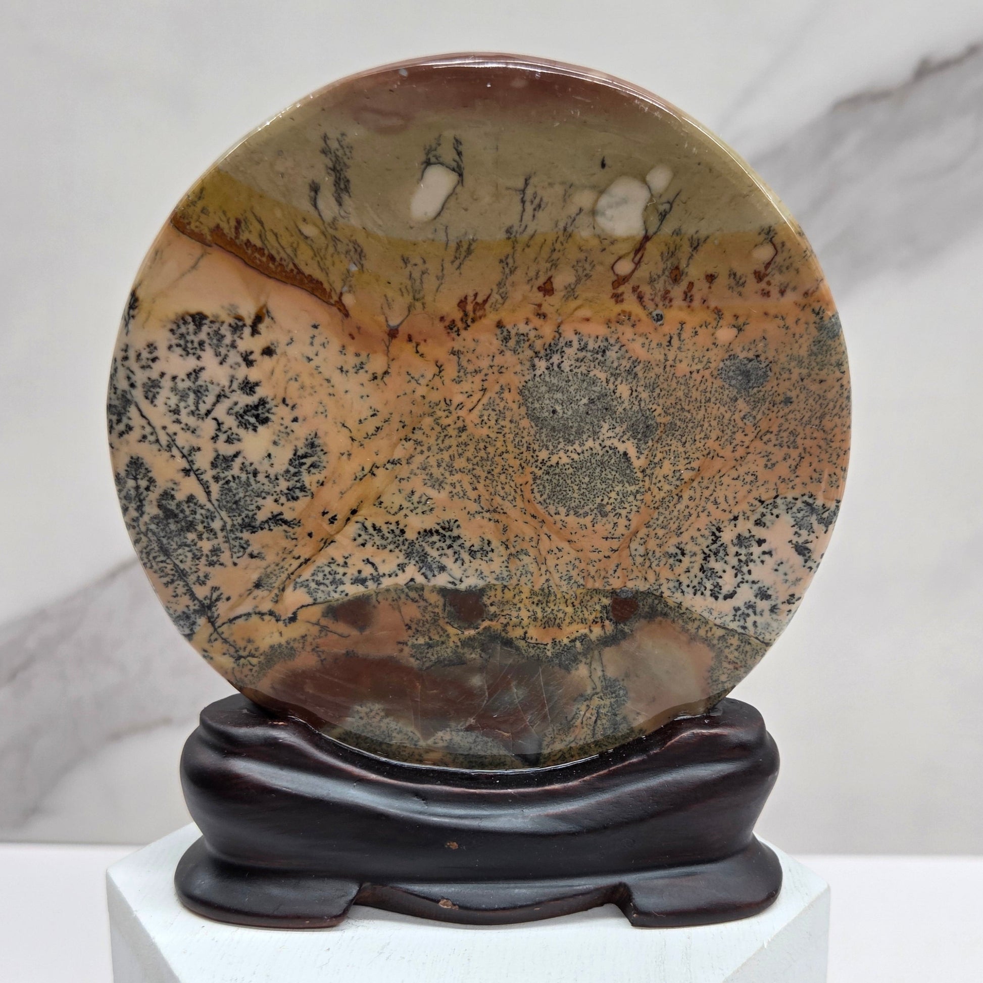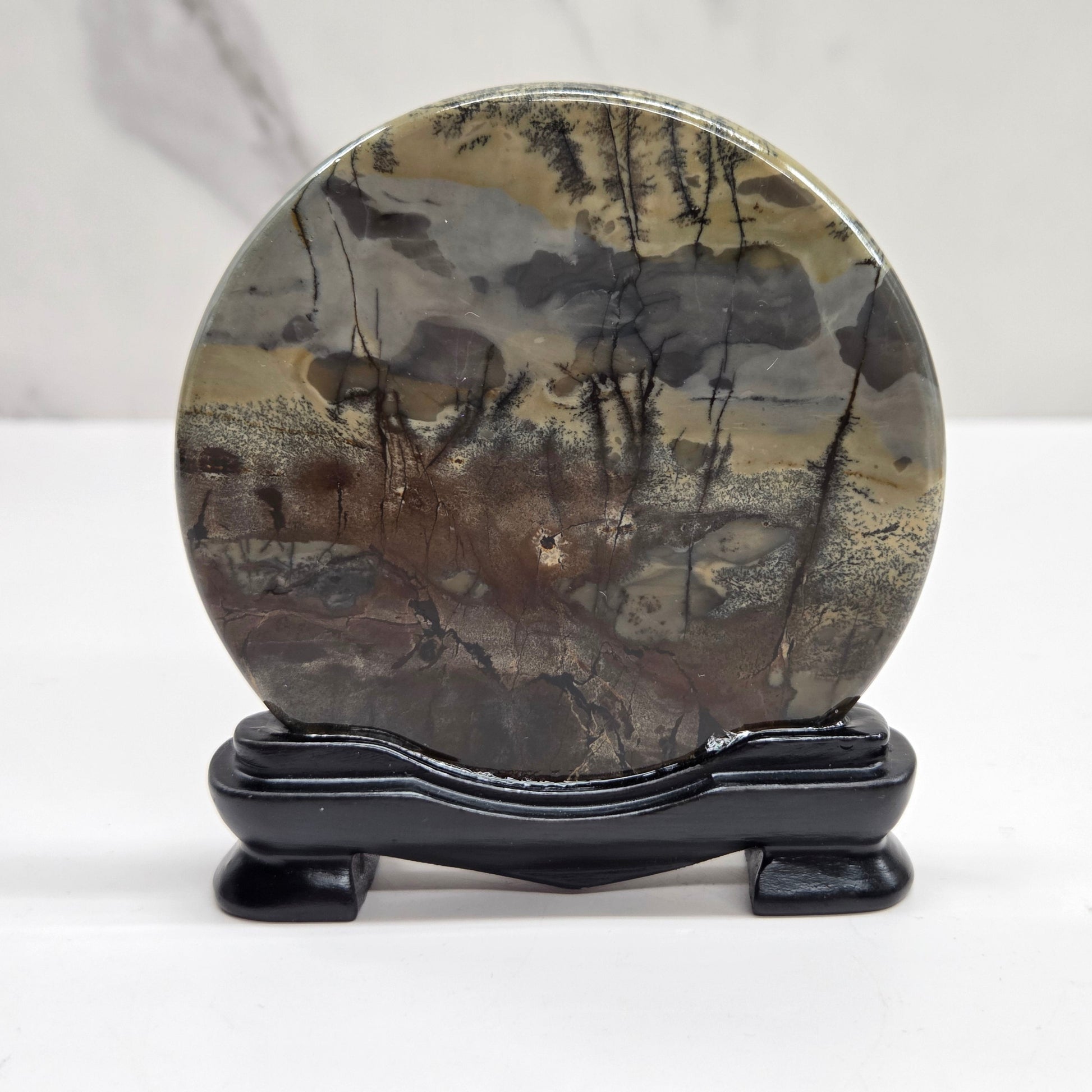 Picture Jasper is a type of brown jasper with dendritic inclusions that create various patterns, resembling landscapes or other natural scenes. It belongs to the quartz family. The colors range from red and brown to yellow and grayish blue.