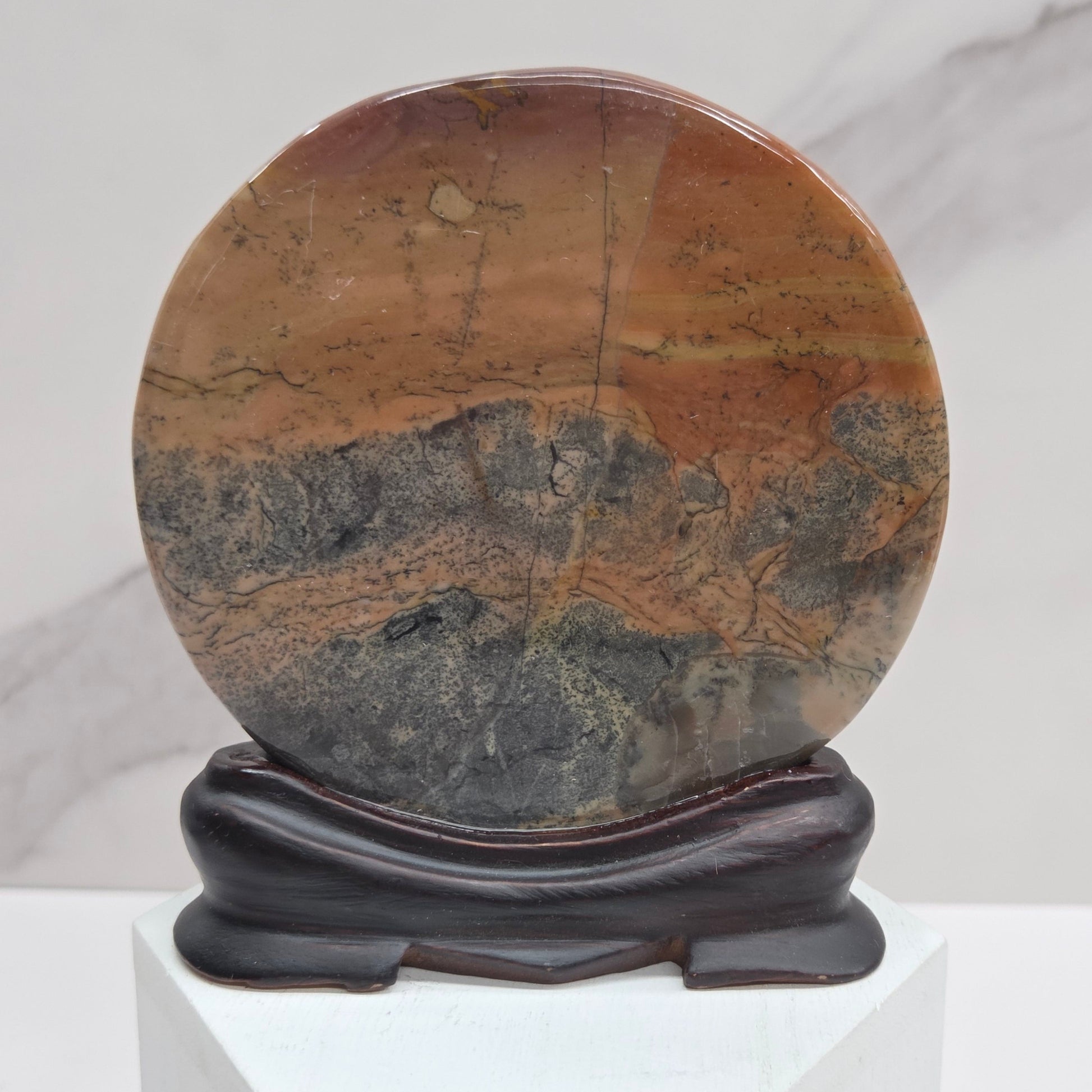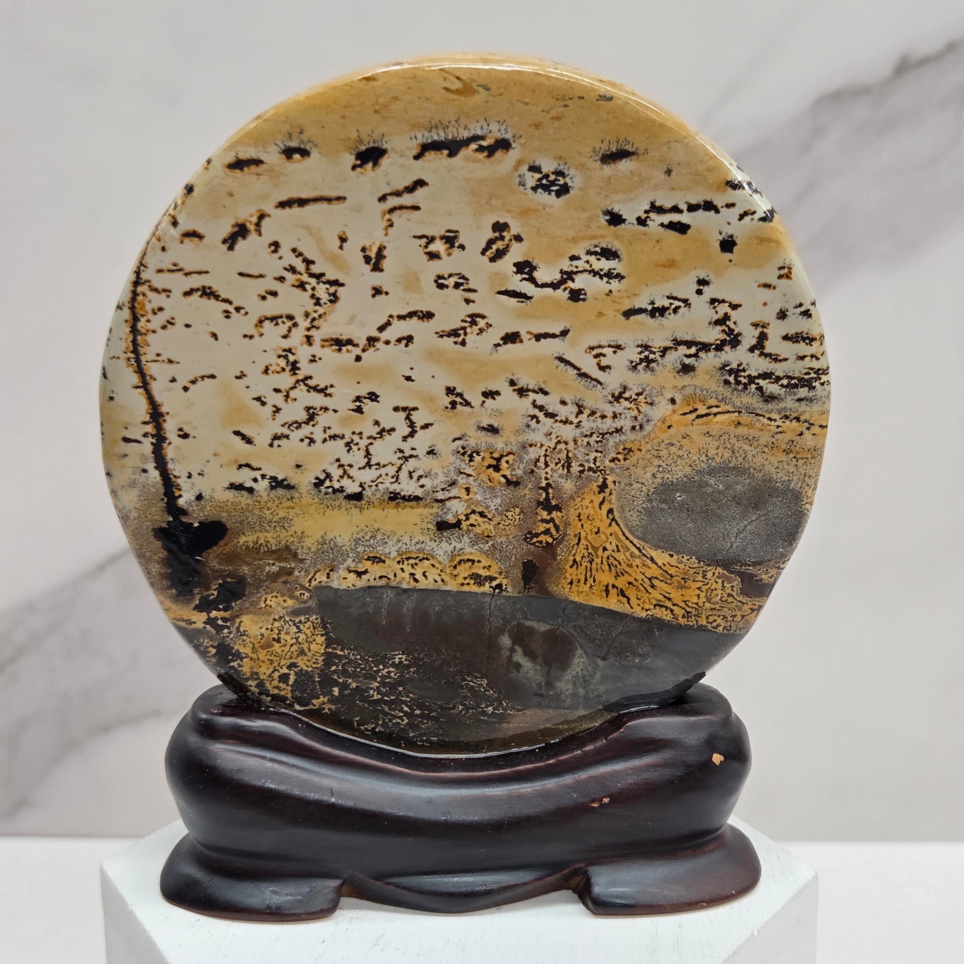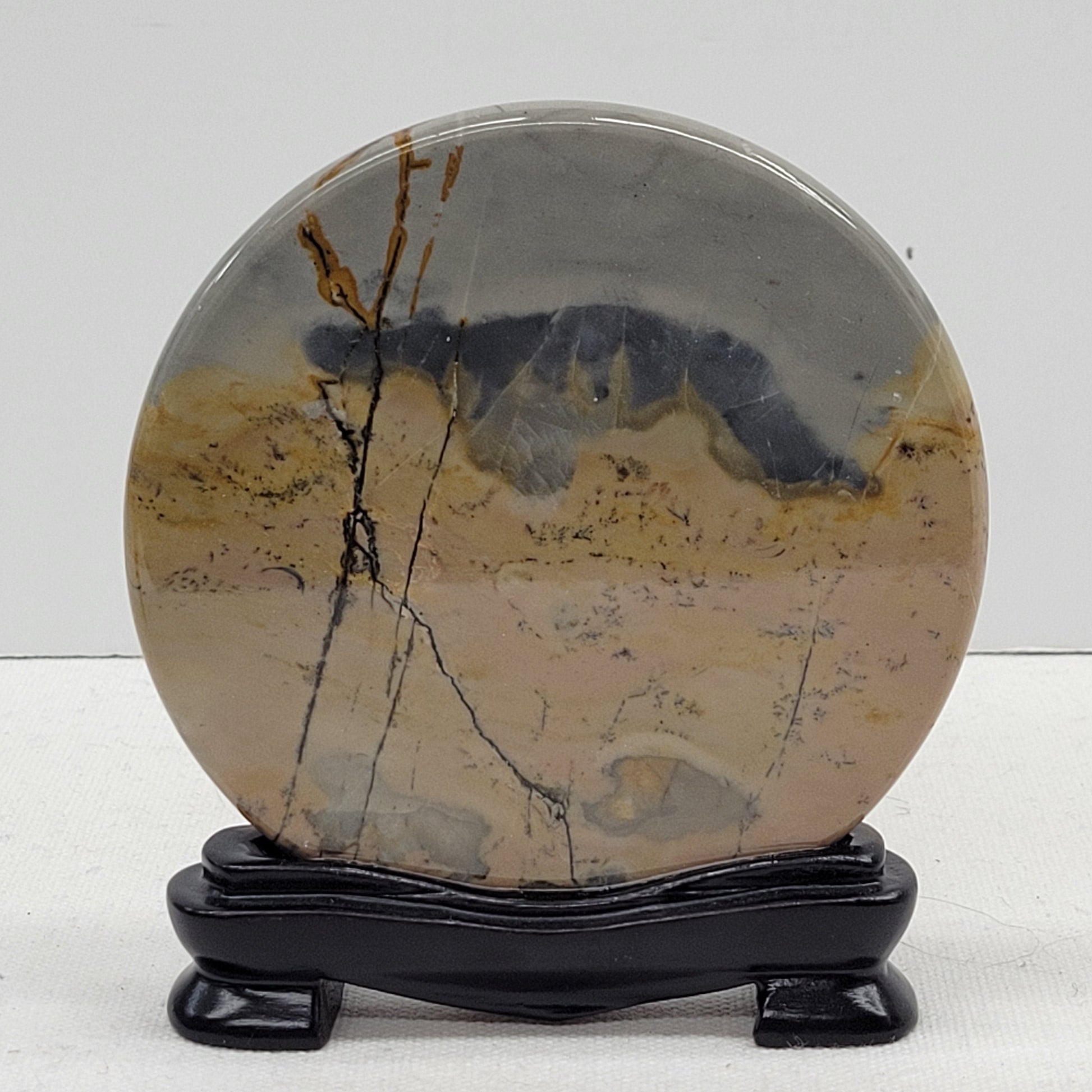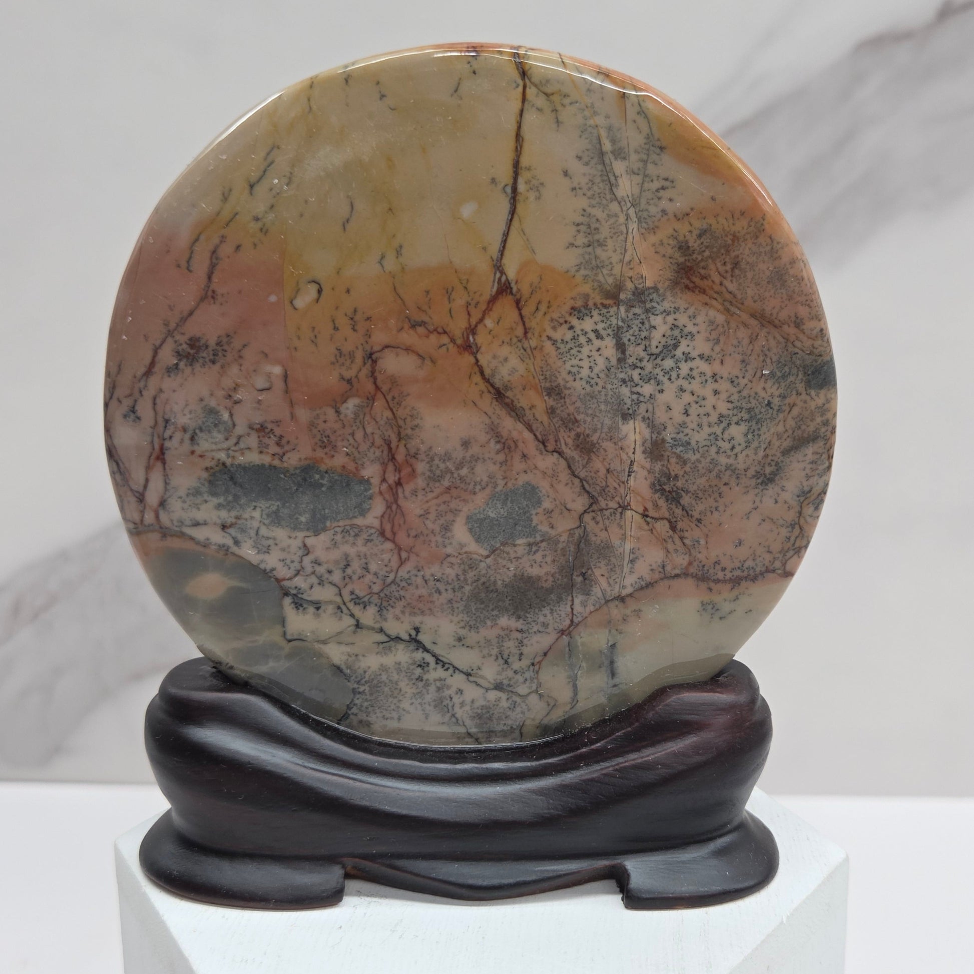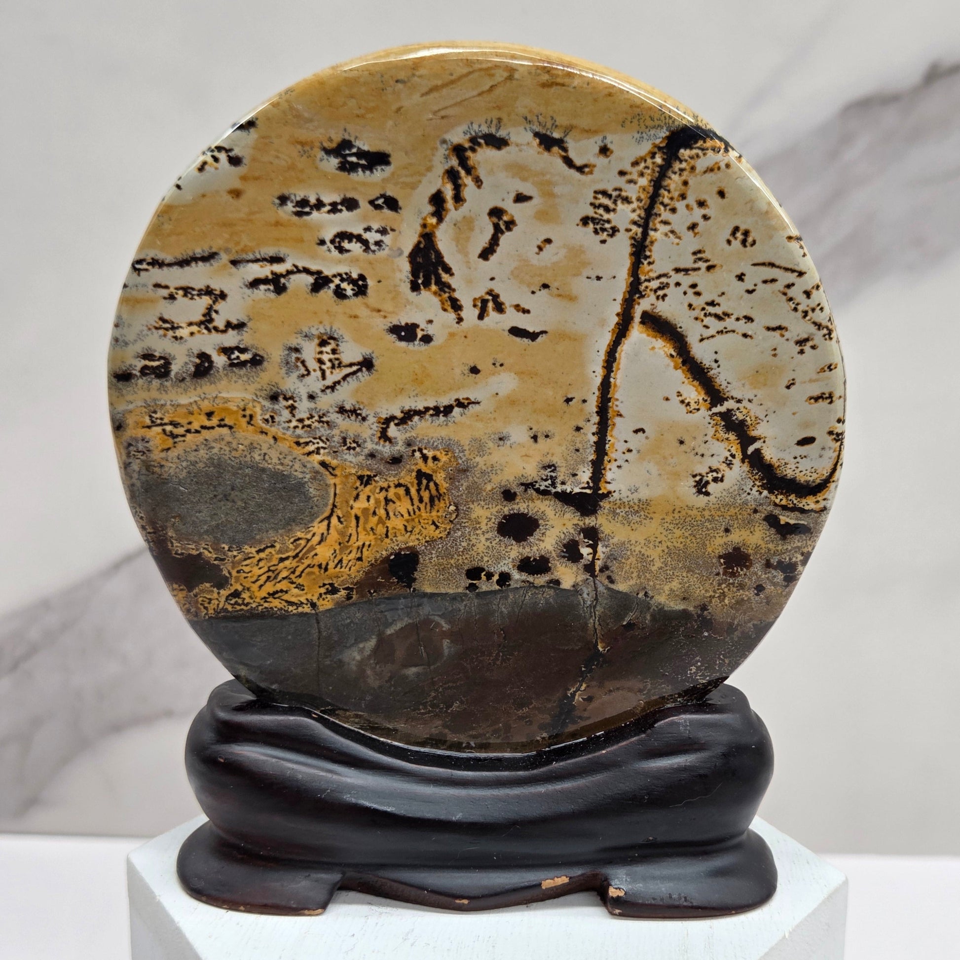 Picture Jasper is a type of brown jasper with dendritic inclusions that create various patterns, resembling landscapes or other natural scenes. It belongs to the quartz family. The colors range from red and brown to yellow and grayish blue.