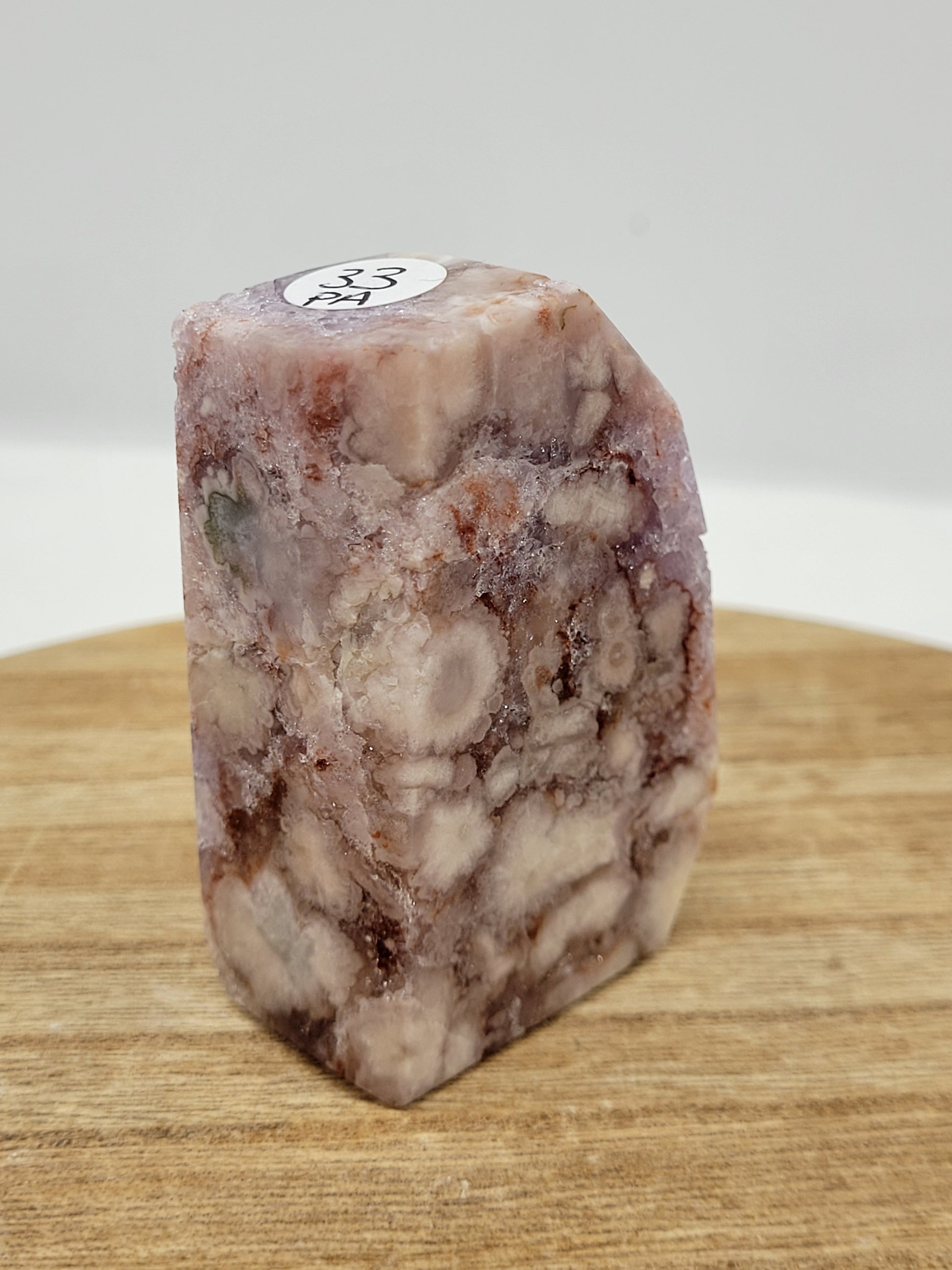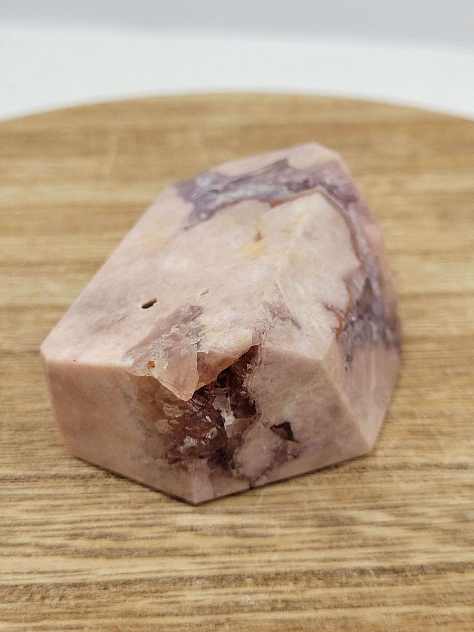 Pink amethyst got its name because the researchers found out that the chemical compound is different than normal purple amethyst, rose quartz or any other quartz or crystal that has been found before. Even though the name is "pink amethyst", it is not always pink colored. It can have shades of pink, orange, brown and blueish-grey. It gets its color from hematite aka iron. Pink amethyst was found in 2019 and so far it has only been found from Brazil and Argentina.