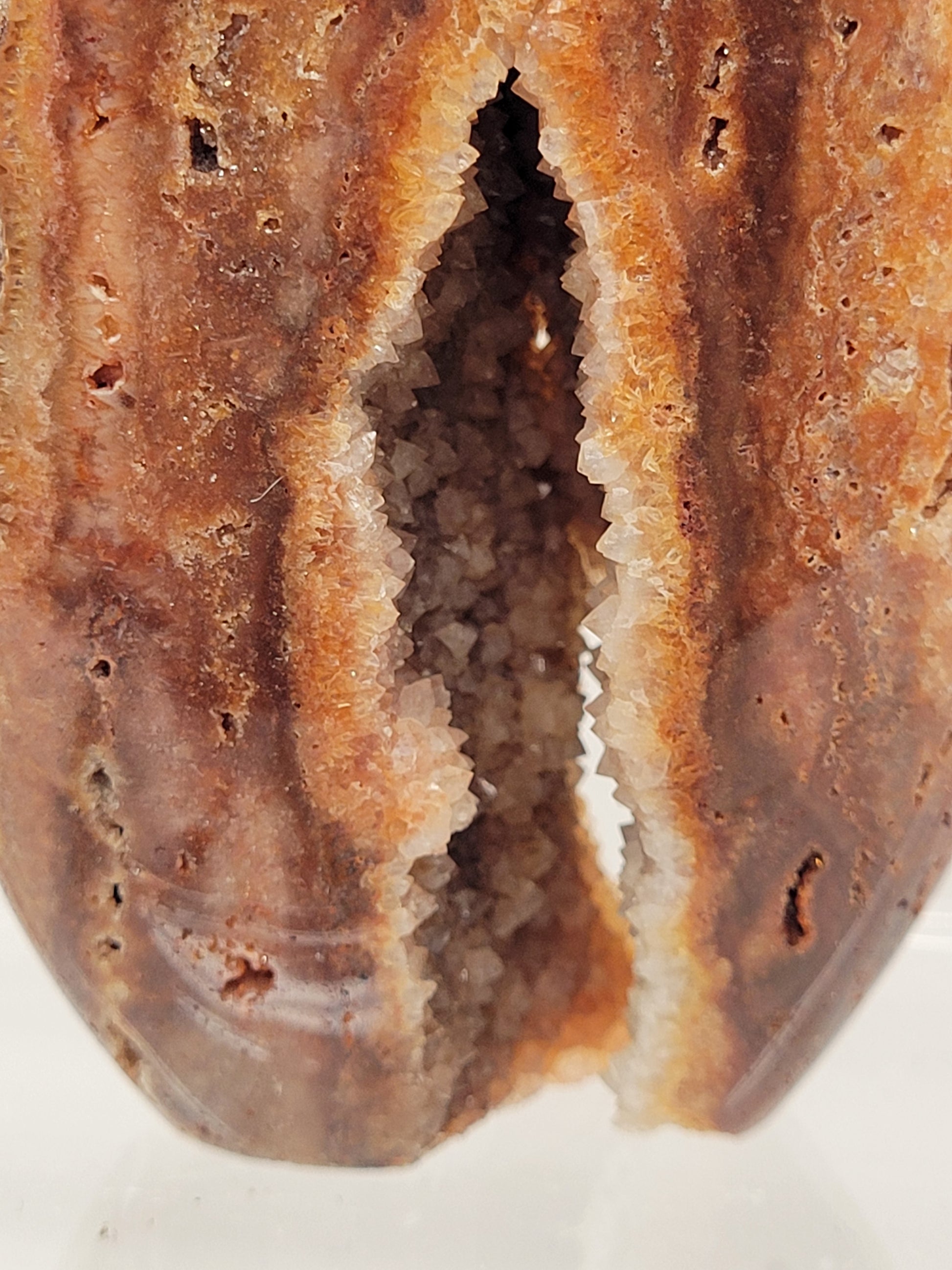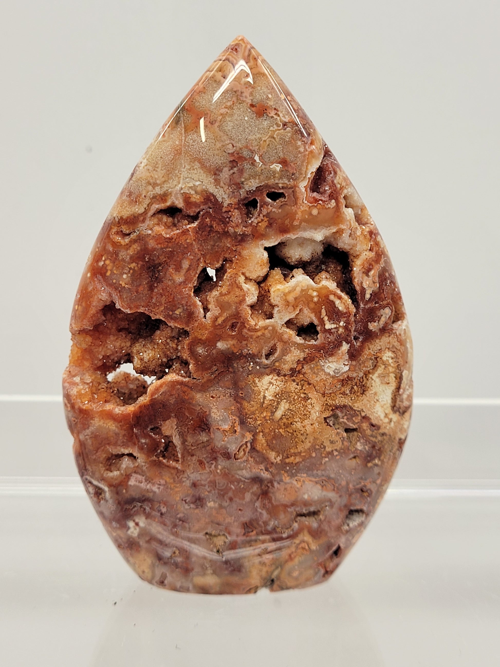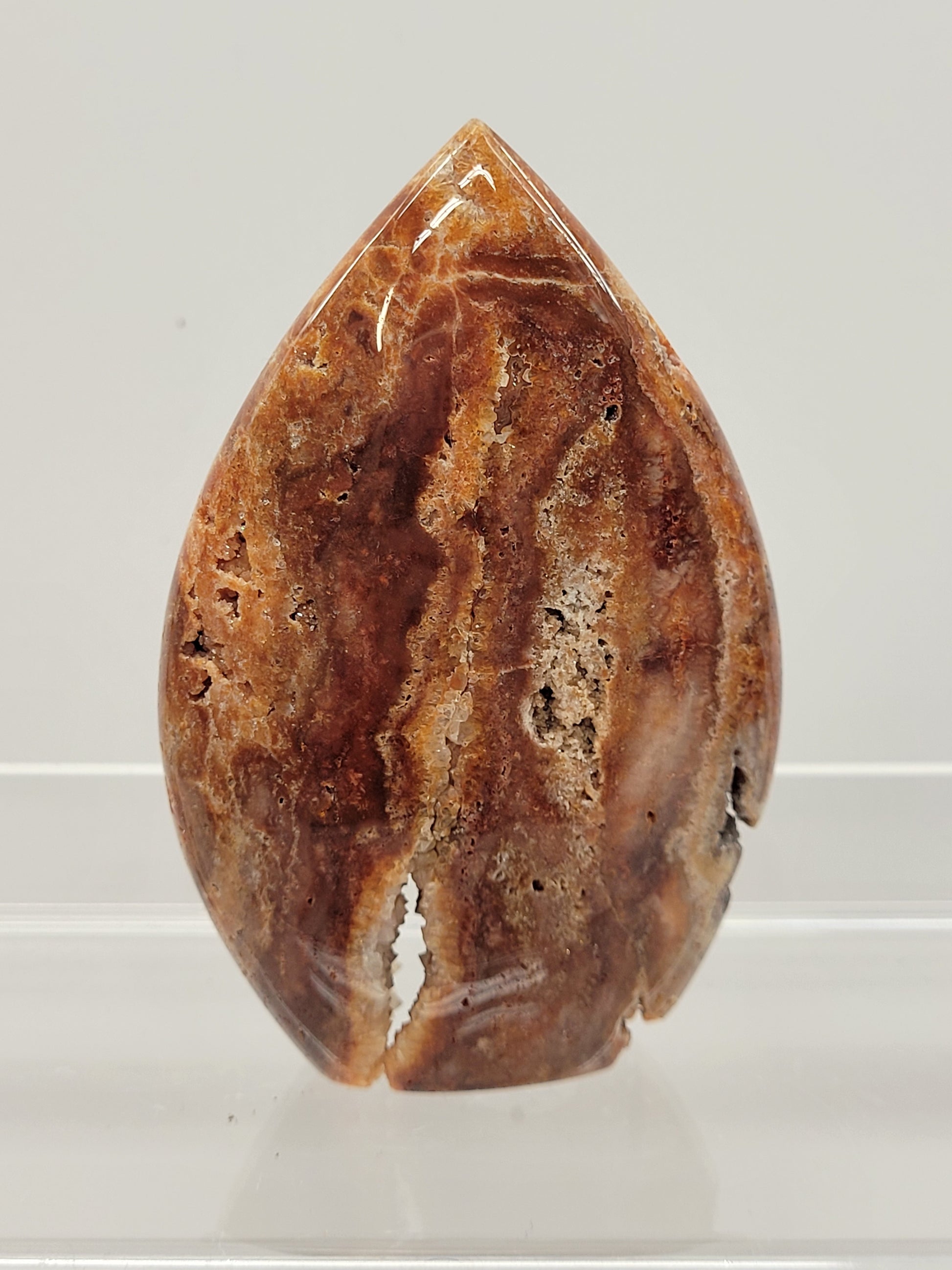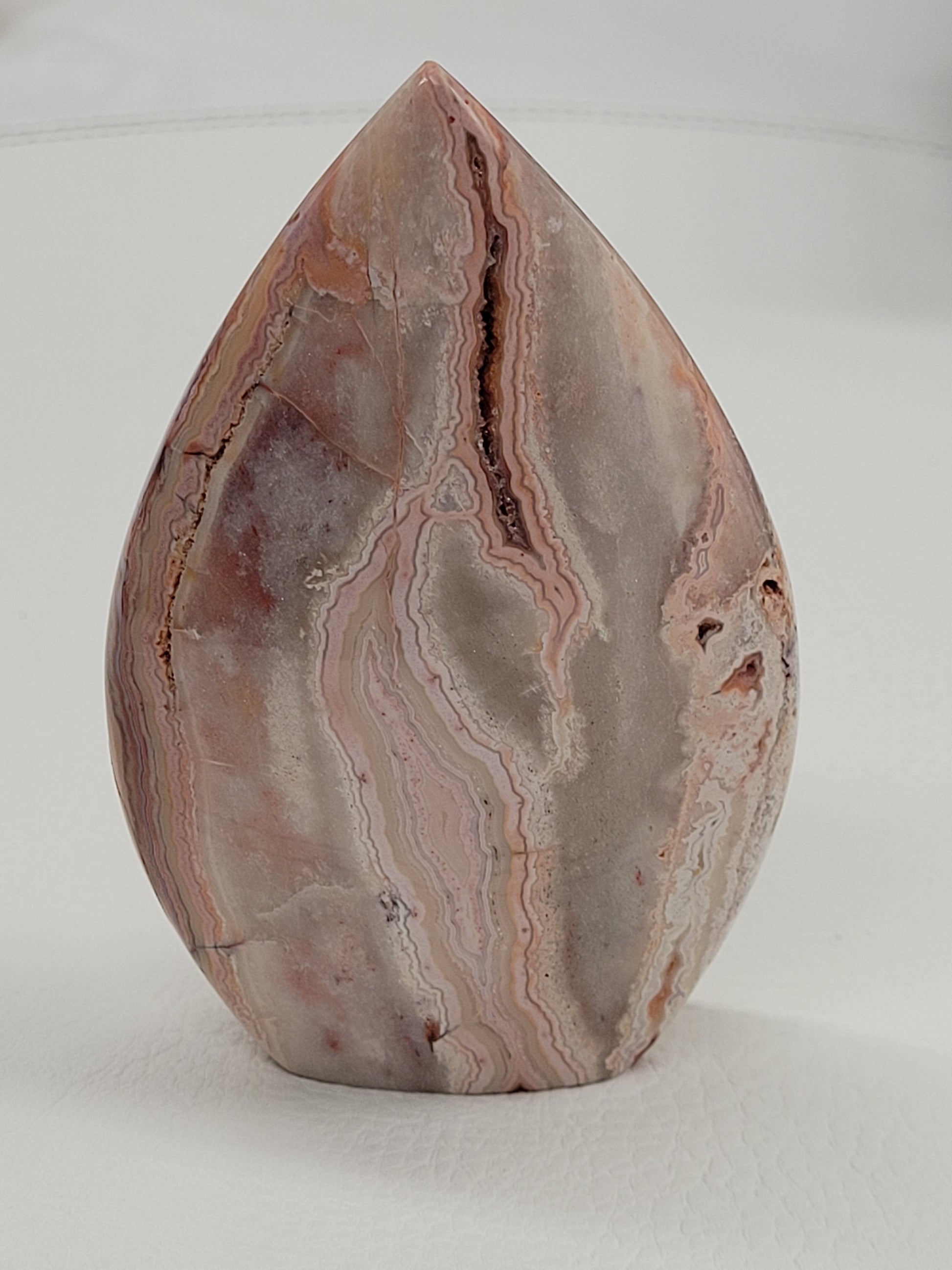 Crazy lace agate is a banded chalcedony (microcrystalline quartz) that's infused with iron and aluminum and is often brightly colored and complexly patterned. This produces the creamy browns, blacks, greys and golds (and occasional pinks or reds) swirled together in this stone.