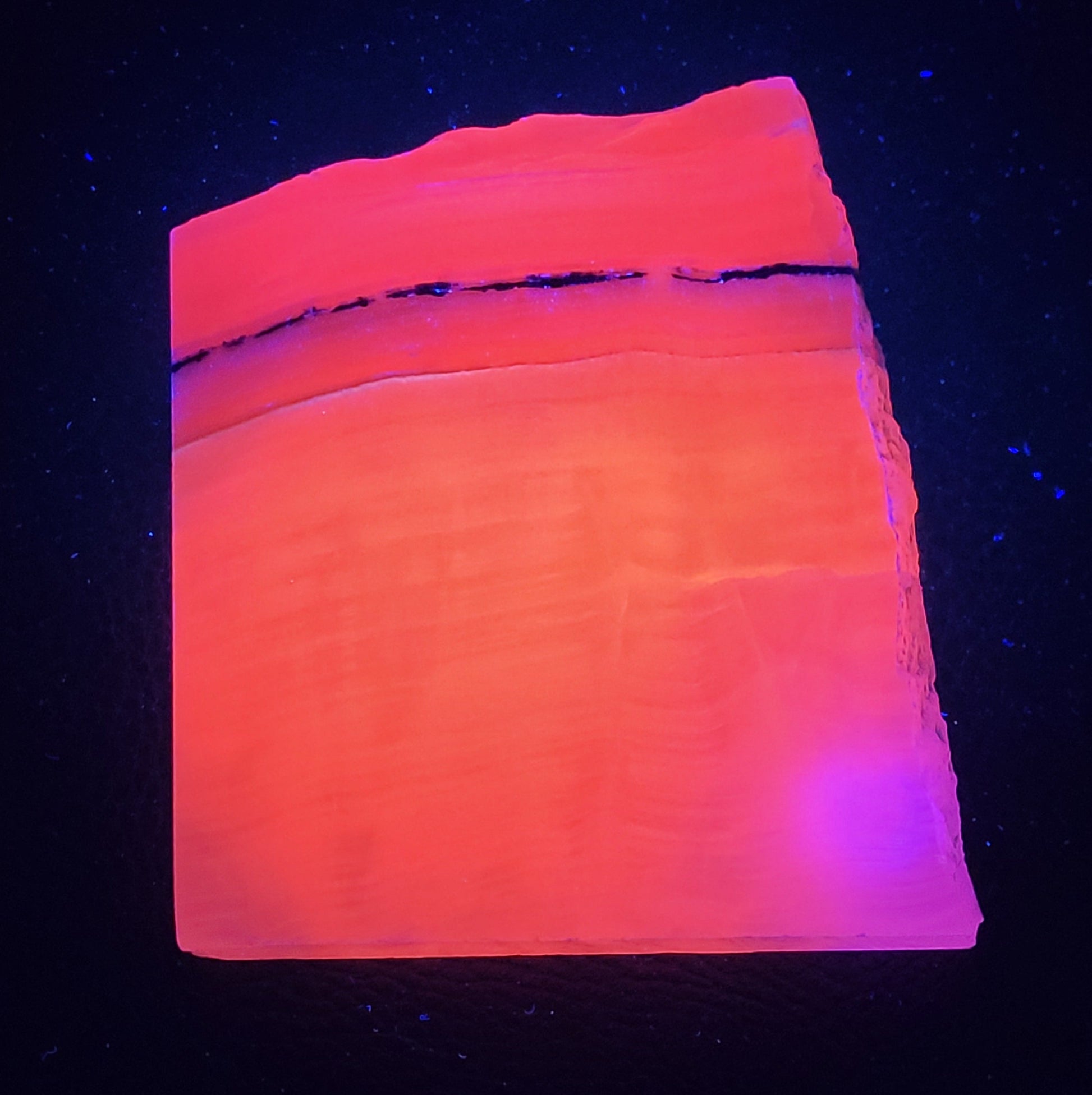 Mangano Calcite is a member of the Calcite family and is a manganese calcium carbonate mineral. Although its primary color is pink, you'll also see white dispersed throughout the crystal. The towers UV a bright, electric pink.