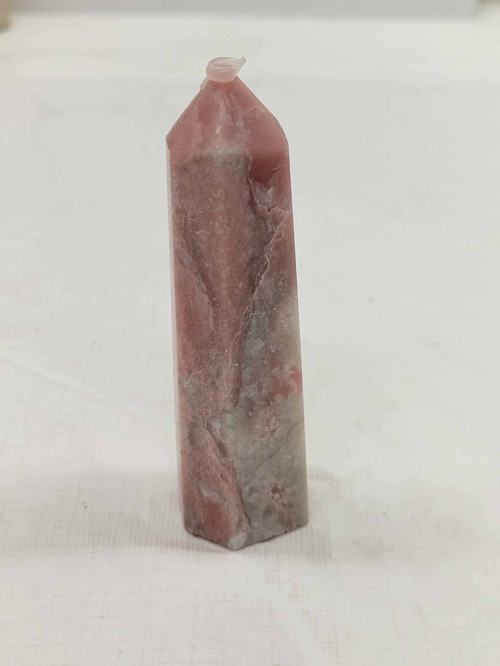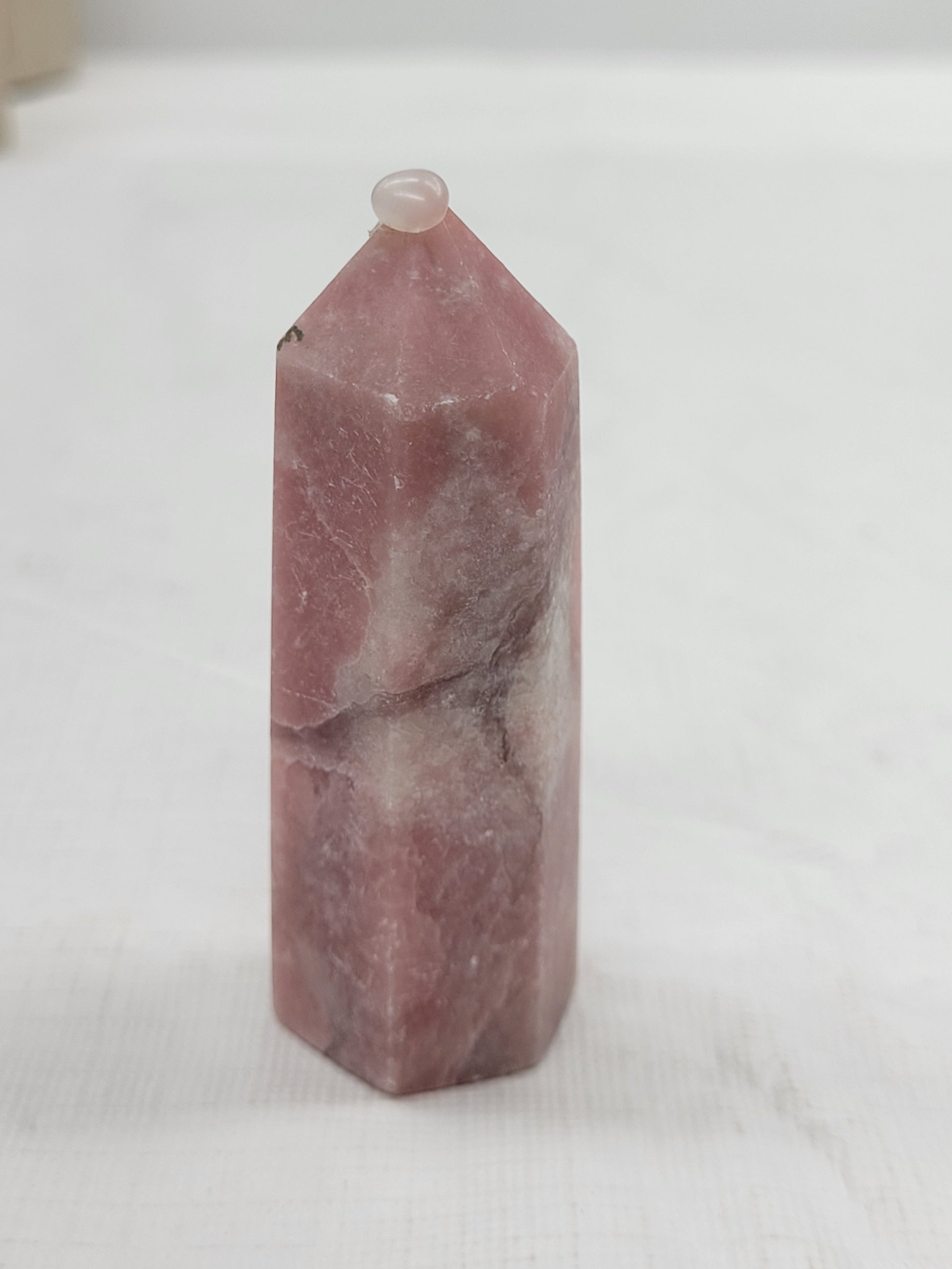 Pink opal is a variety of common opal that is an opaque light pink color. Each tower is unique and will have varying shades or inclusions.