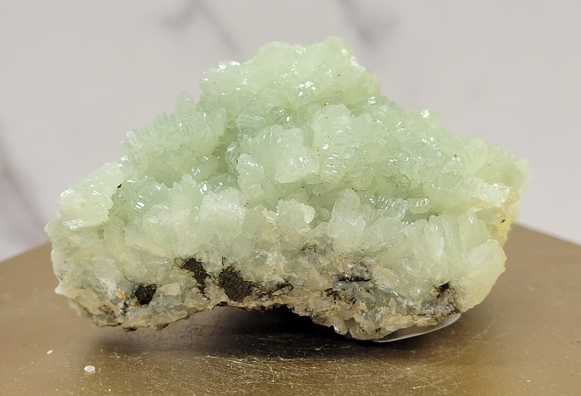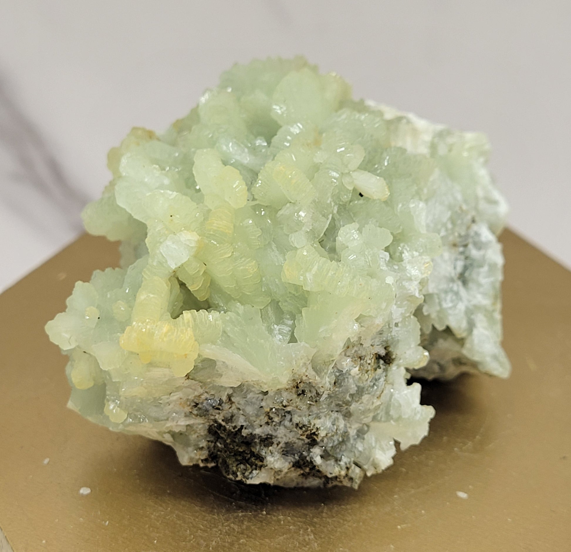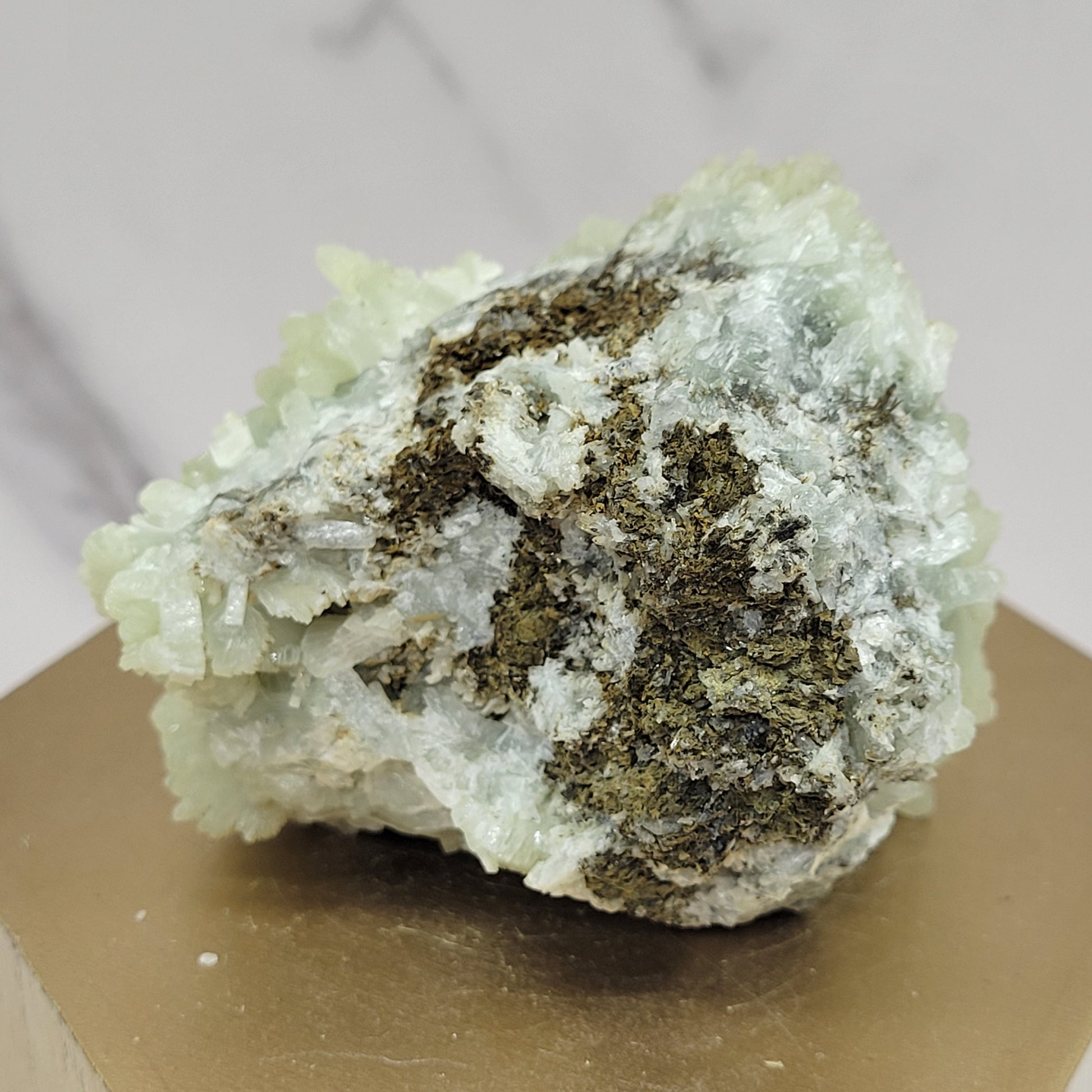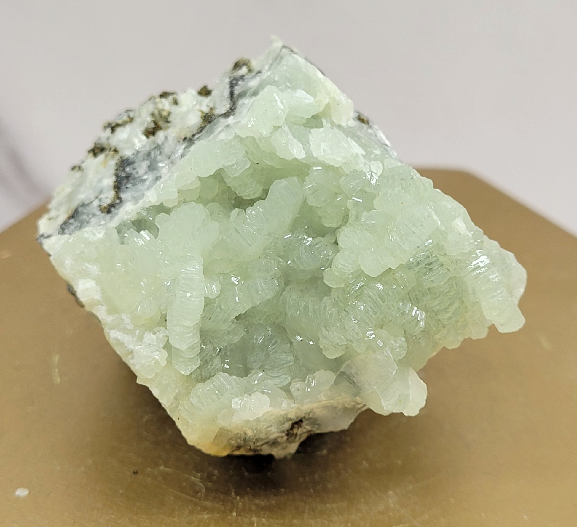 Prehnite is a calcium aluminum silicate mineral that crystallizes in the form of masses, globular formations, botryoidal, and stalactites. Epidote is an aluminum-iron mineral that can be found in either crystal or stone form.