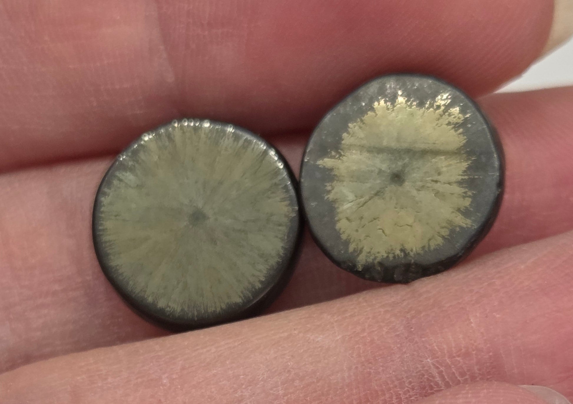 Pyrite suns are a unique crystal formation of the mineral pyrite that forms between layers of anthracite coal under immense pressure.