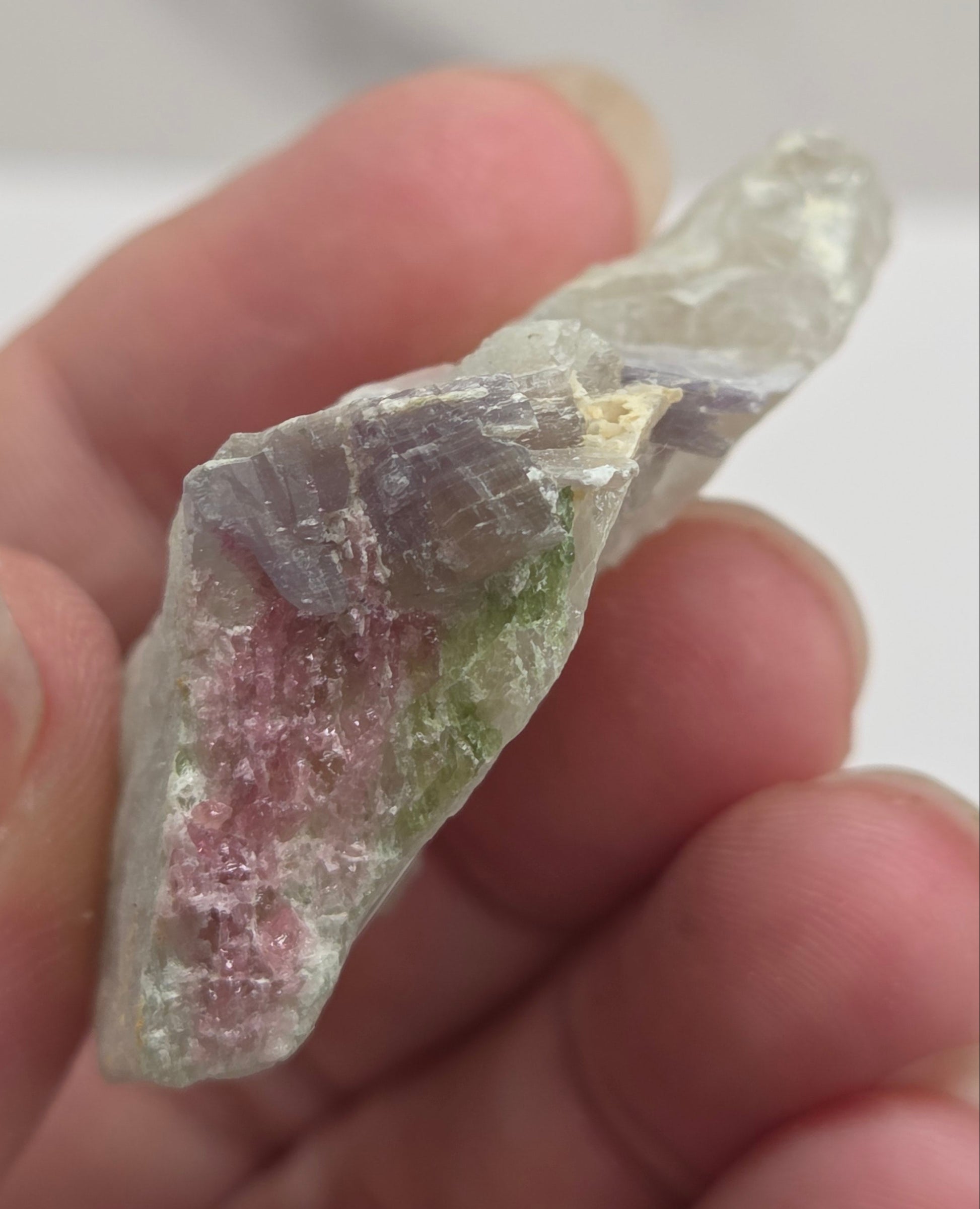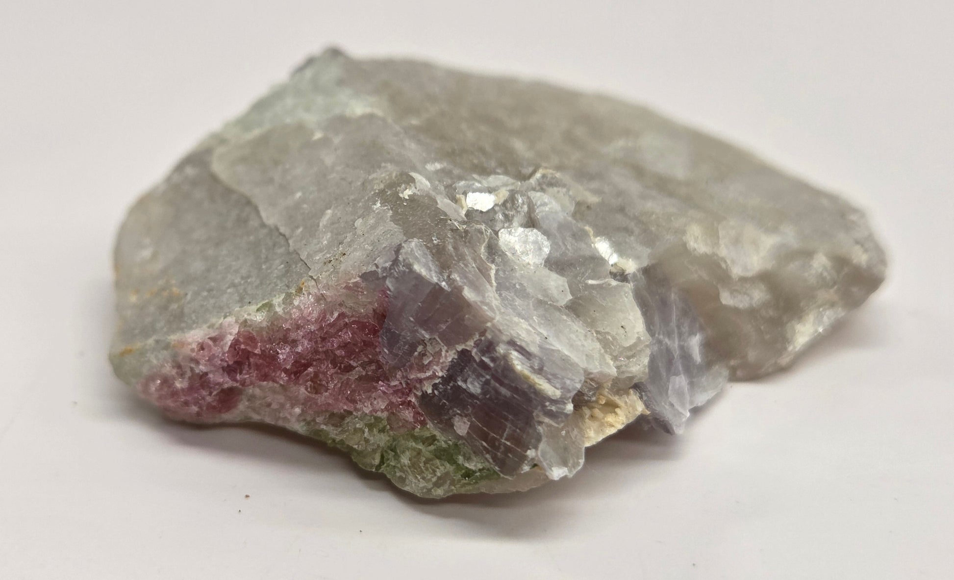 Quartz specimen with Lepidolite, Green Tourmaline and Pink Tourmaline.