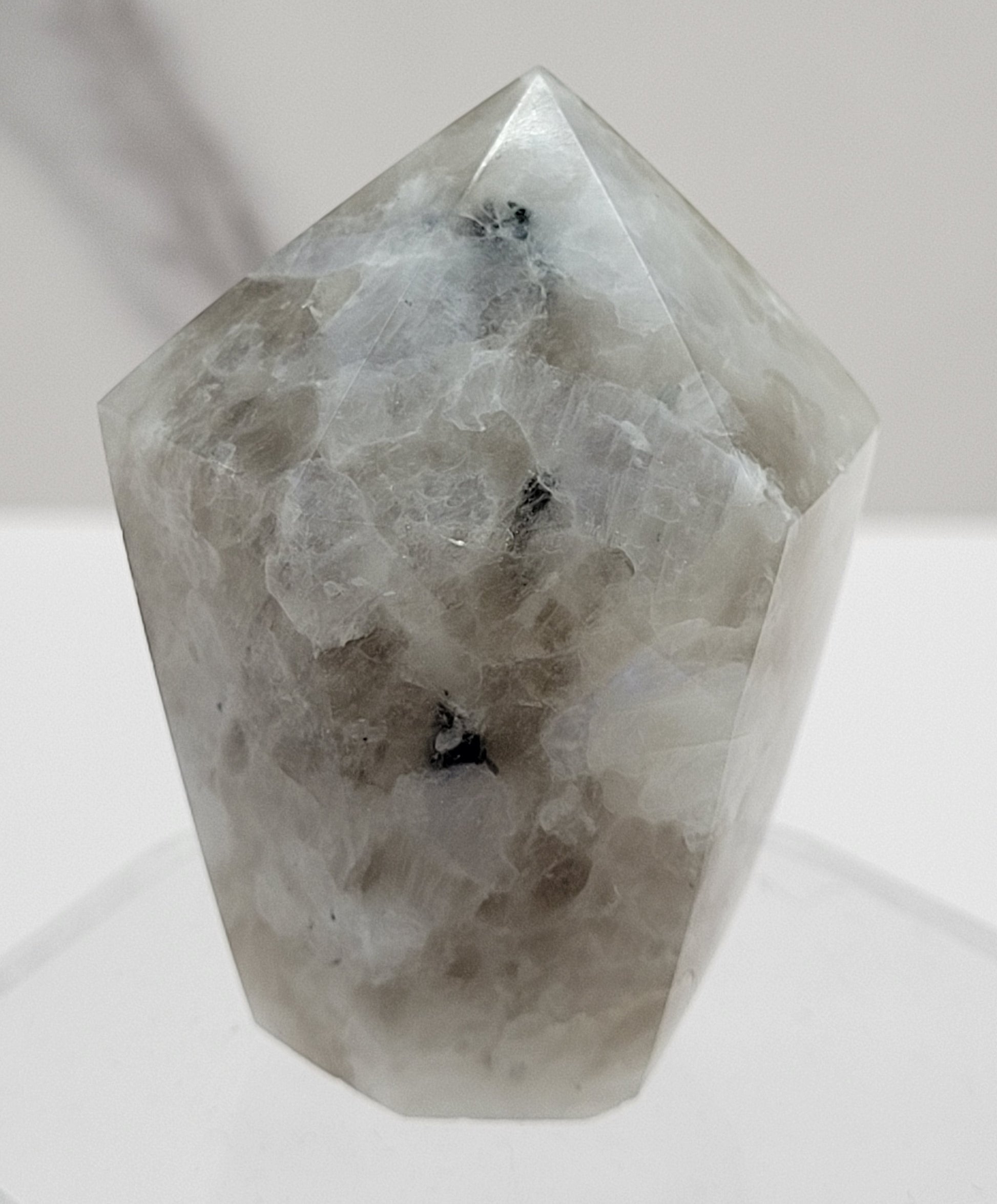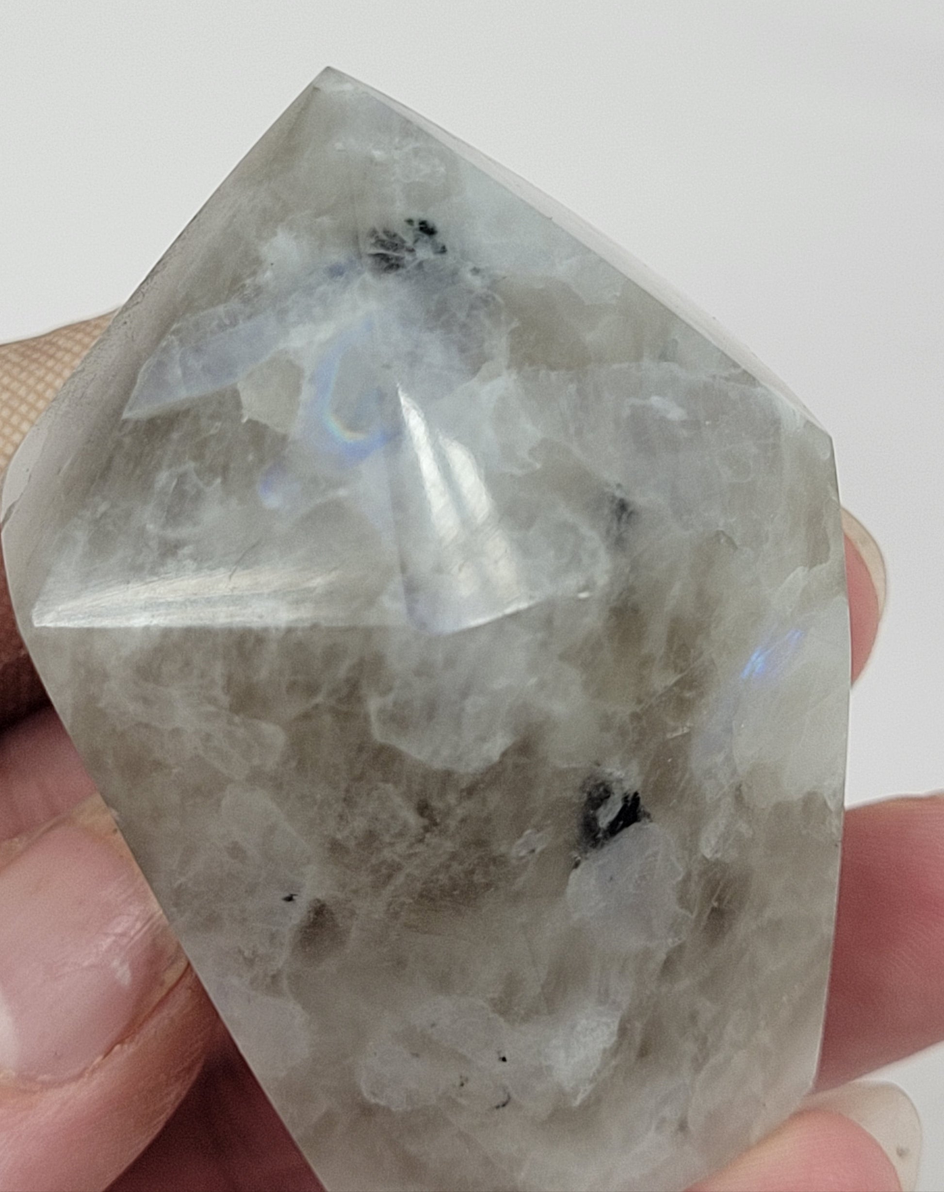 Rainbow moonstone is also known as white labradorite. While not a ‘true’ moonstone, rainbow moonstone is a Feldspar mineral. The name ‘labradorite’ referring to Labrador, Canada, where labradorite was first identified and can be found in large quantities.