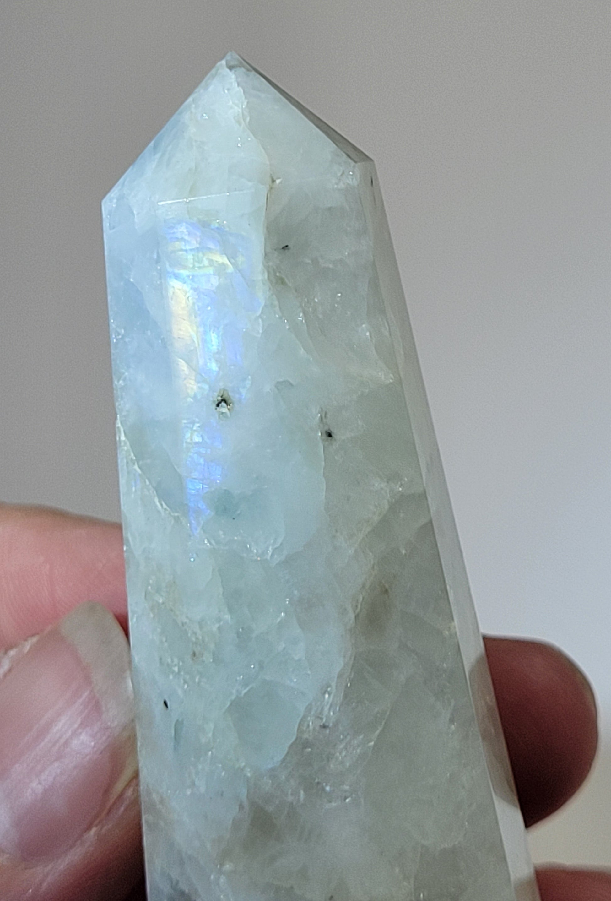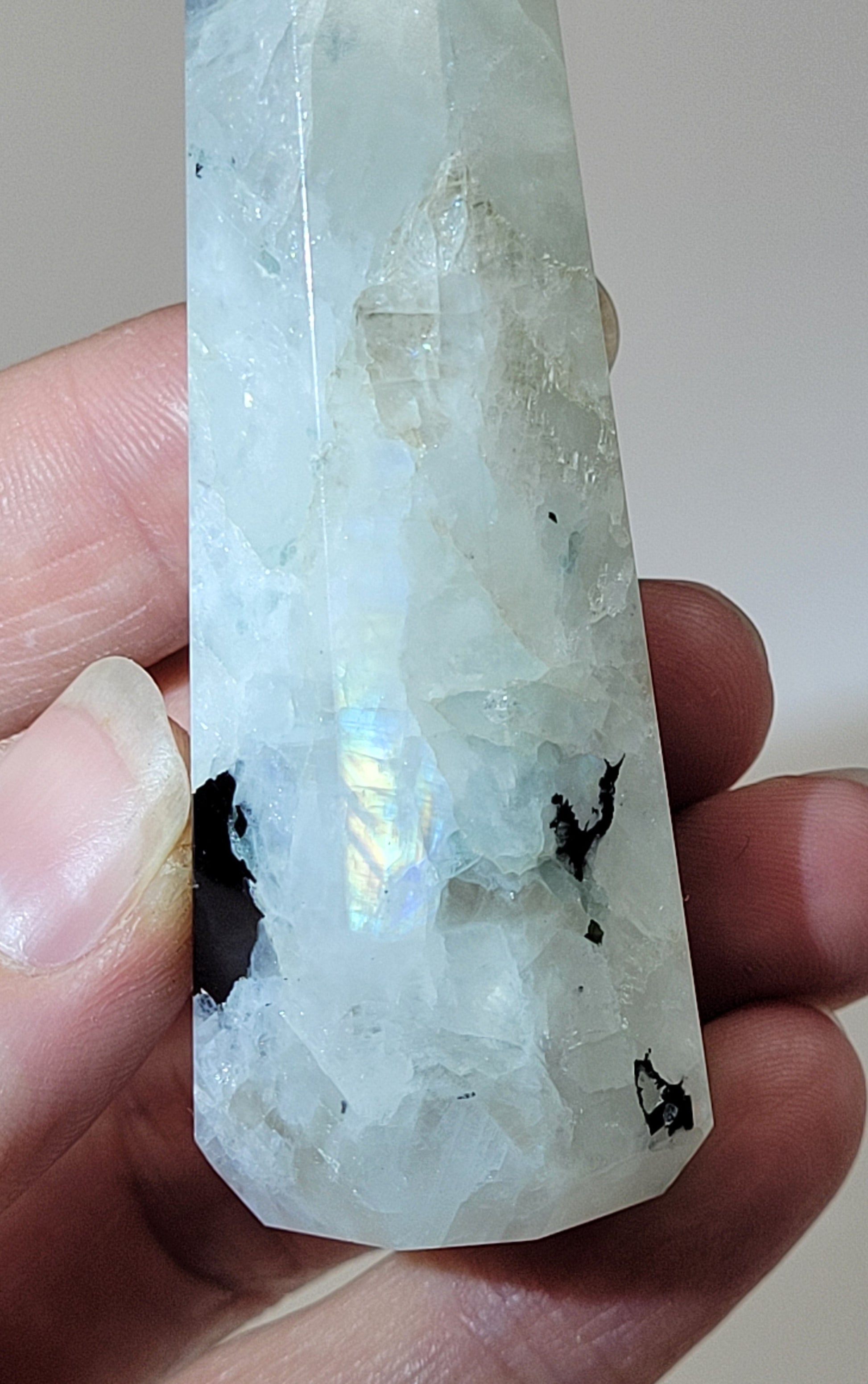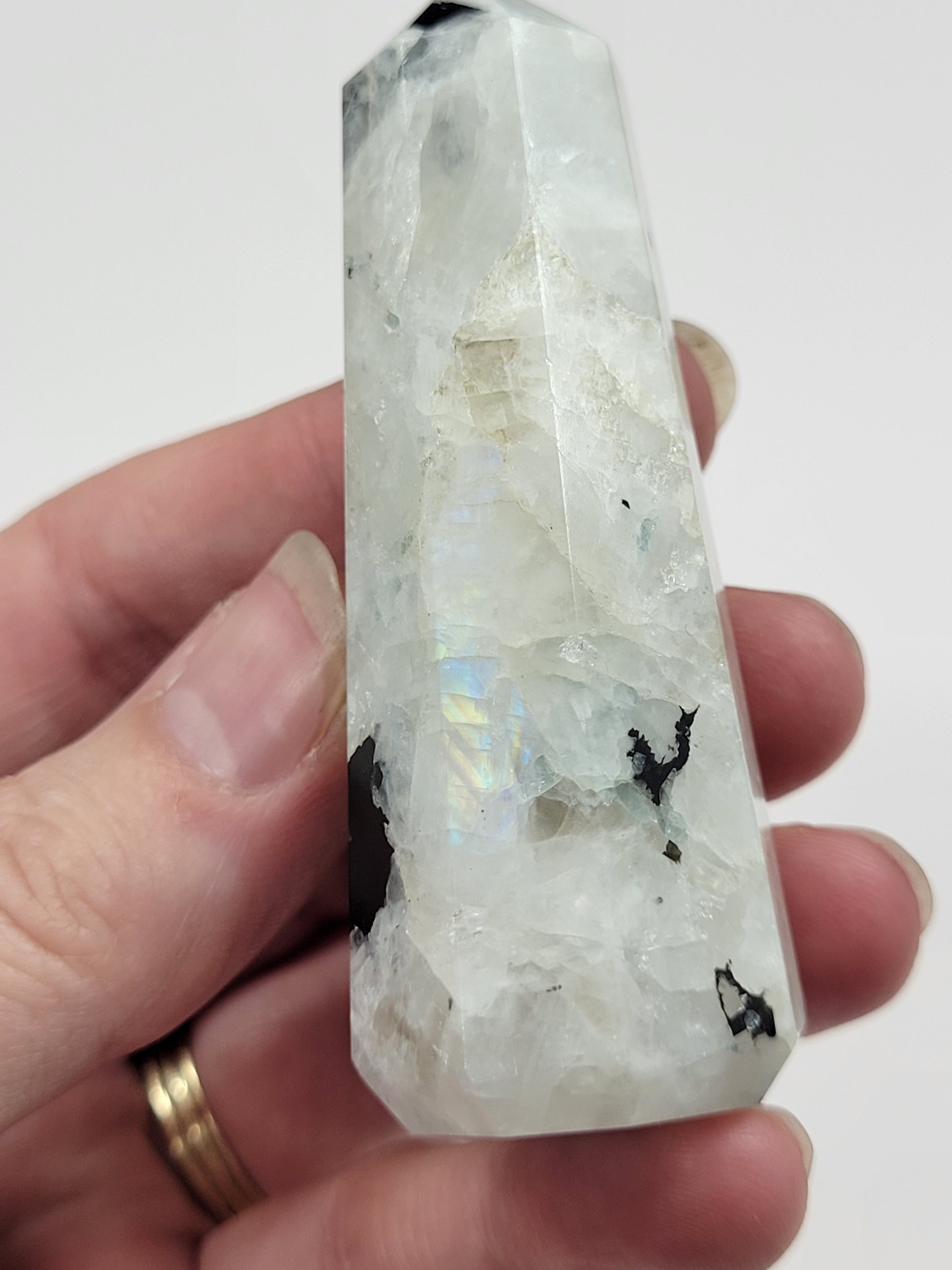 Rainbow moonstone is also known as white labradorite. While not a ‘true’ moonstone, rainbow moonstone is a Feldspar mineral. The name ‘labradorite’ referring to Labrador, Canada, where labradorite was first identified and can be found in large quantities.