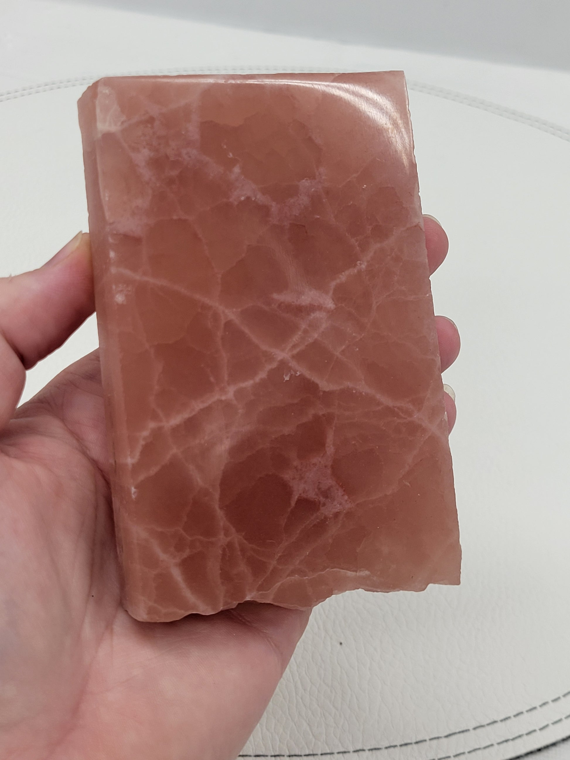 Beautiful and gemmy Rose Calcite slabs from Pakistan.