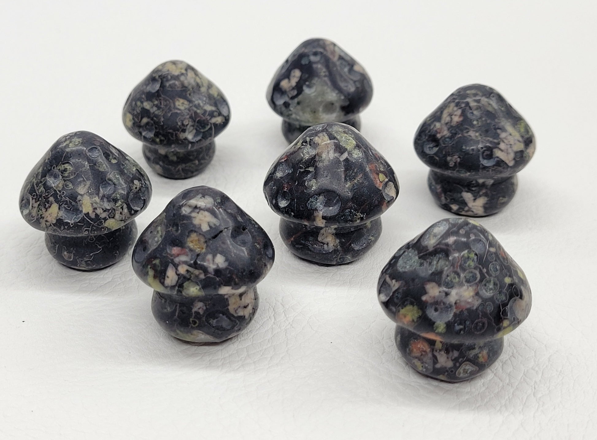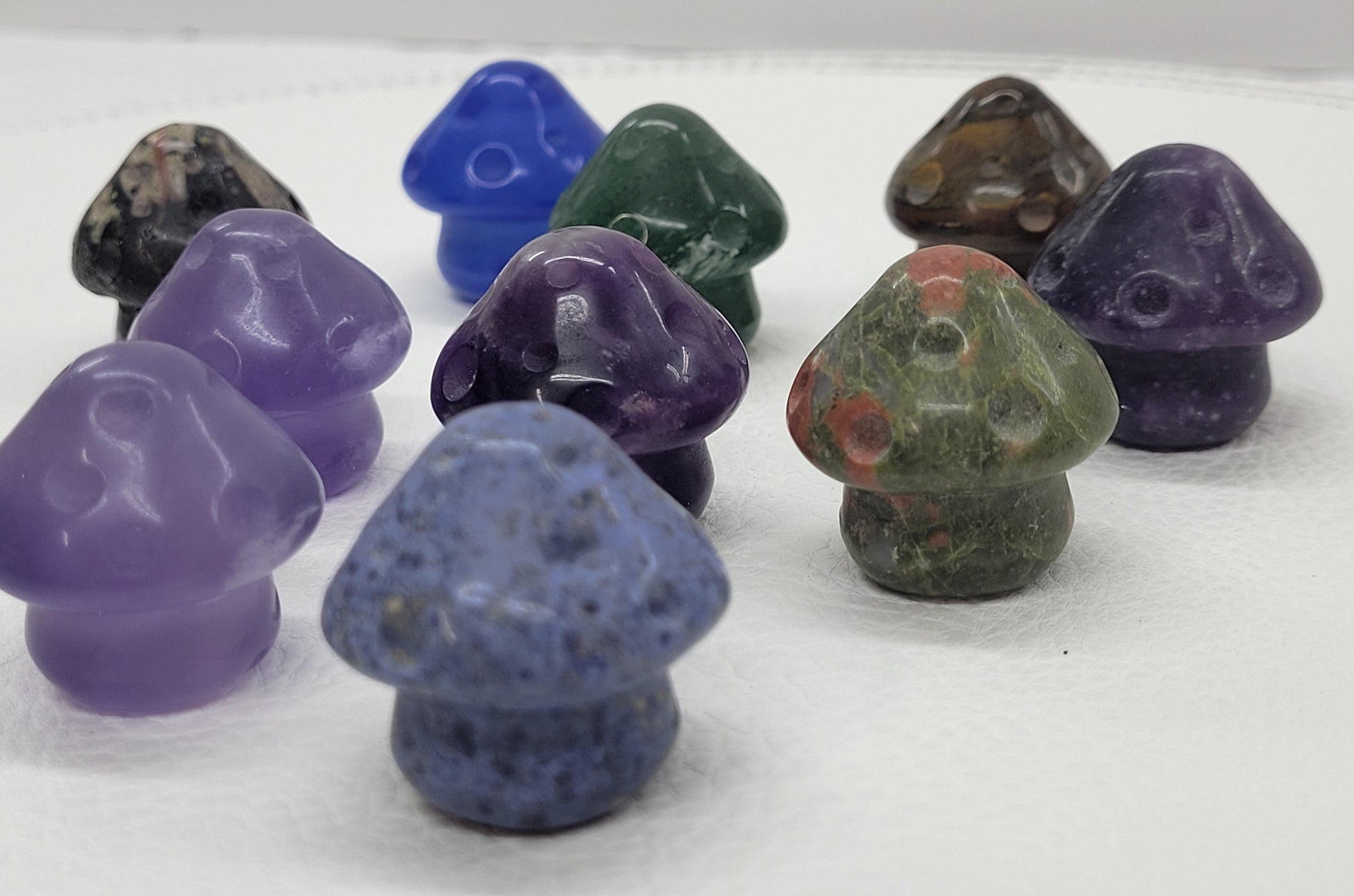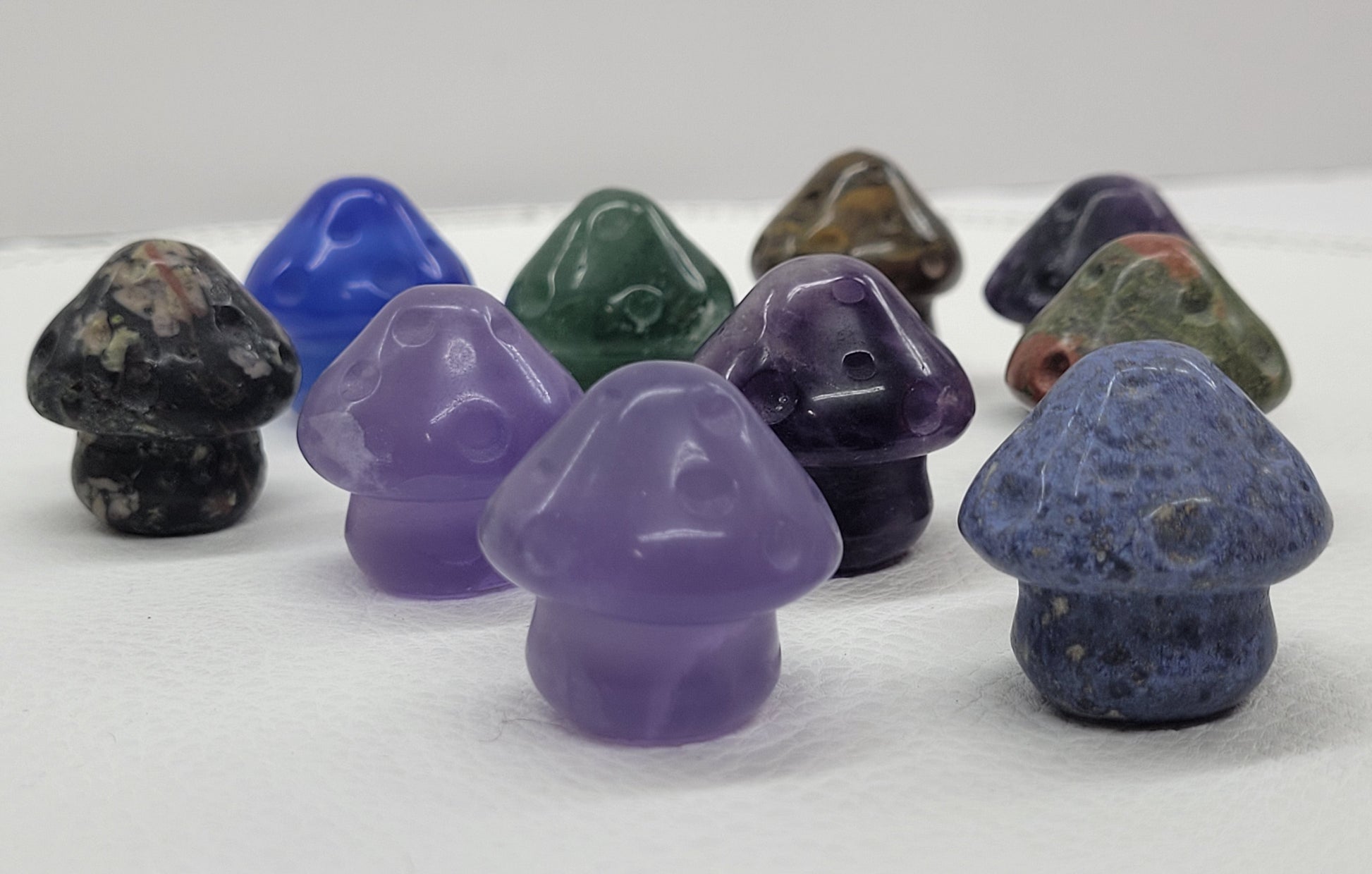 Mushrooms or Toadstools in a variety of materials. Each mushroom measures approx. 1.11"