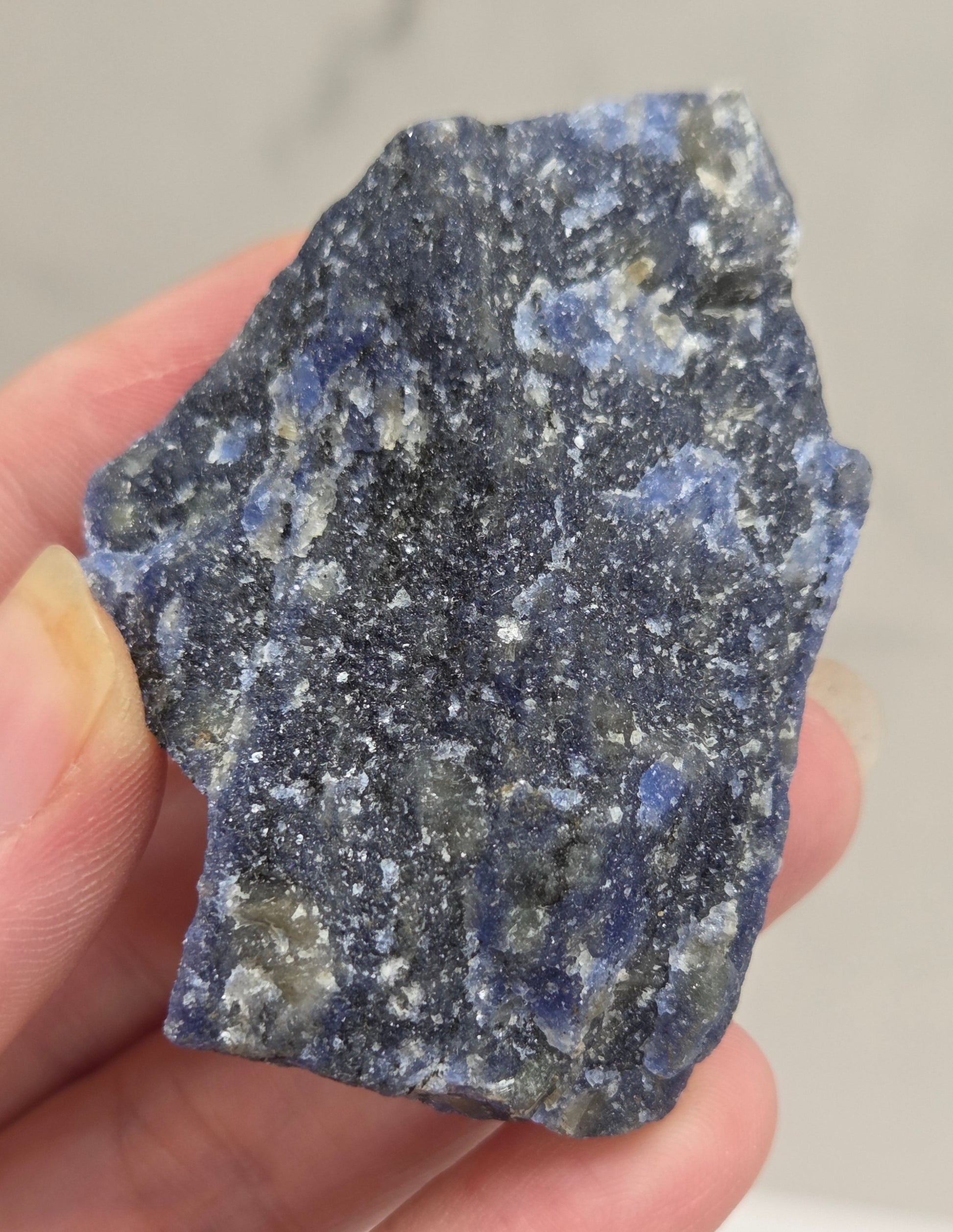 Sodalite is a blue to bluish-gray feldspathoid minderal, typically found in massive form and veined with white calcite. It's a tectosilicate mineral belonging to the sodalite group, often used for carvings and some jewelry. While commonly blue, sodalite can also exhibit colors like gray, yellow, green, or pink.