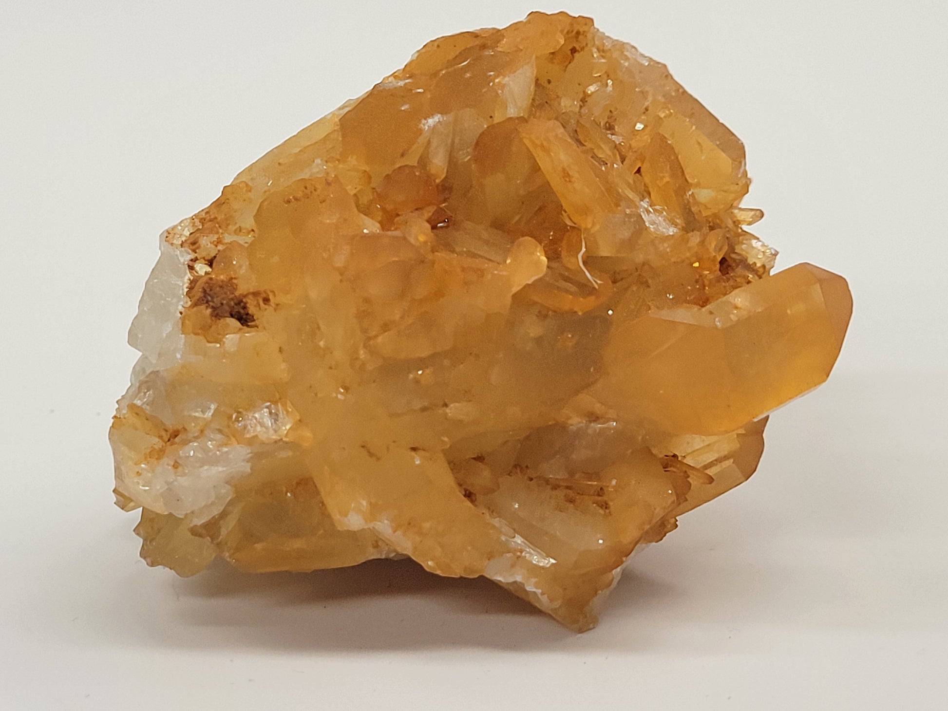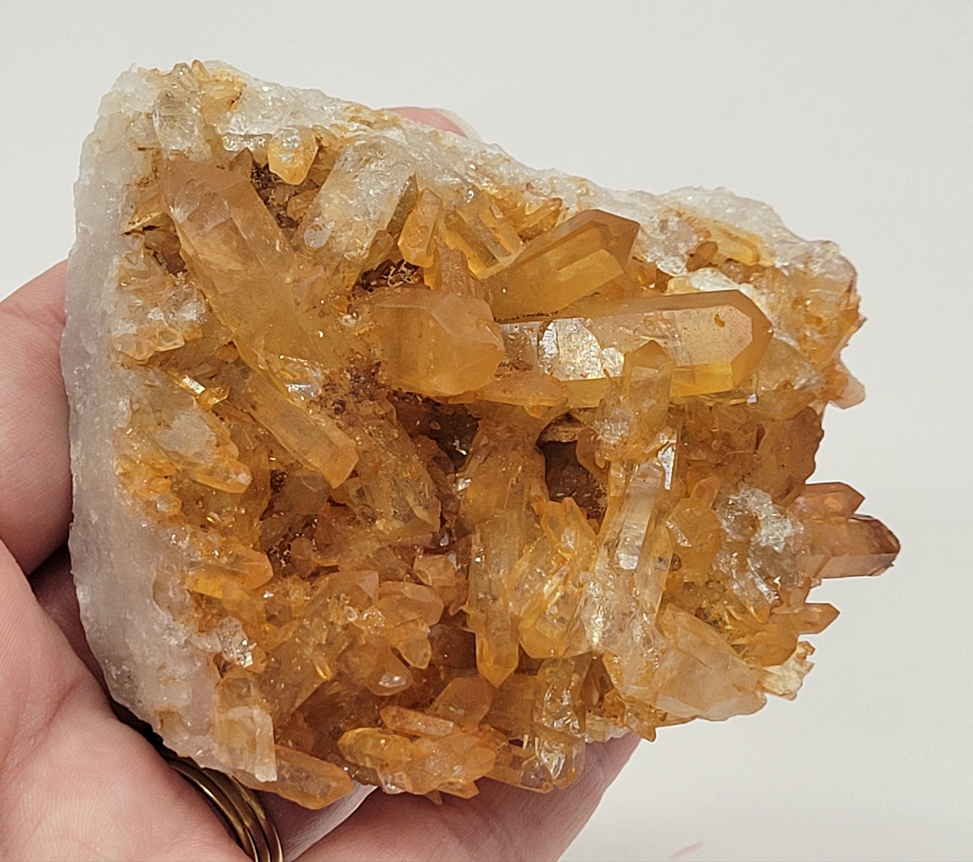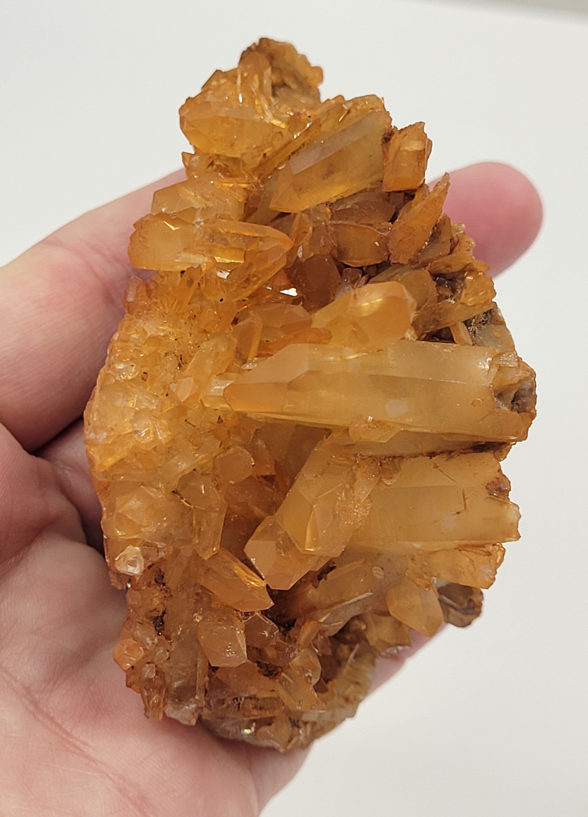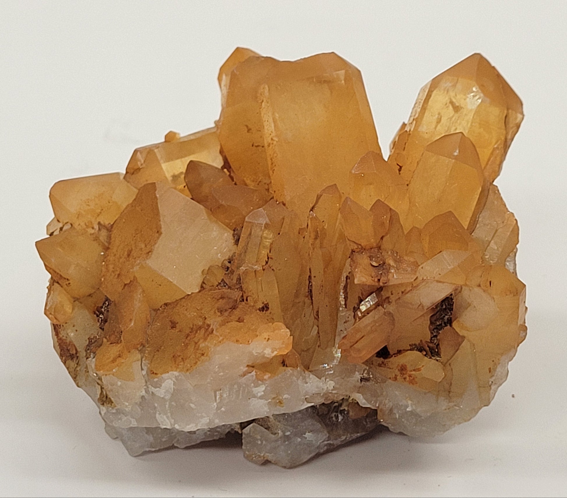 The vibrant orange color of Tangerine Quartz is a result of iron oxide minerals, such as hematite or lepidocrocite, that coat the surface of the quartz crystal. These minerals are typically found in close proximity to the quartz, and they become attached to the crystal through a process known as hydrothermal deposition. This process occurs when hot, mineral-rich water flows through fractures and cavities in the Earth’s crust, depositing minerals on the surfaces of existing crystals. As the water cools and evaporates, the minerals become concentrated, forming a thin layer on the quartz’s surface.
