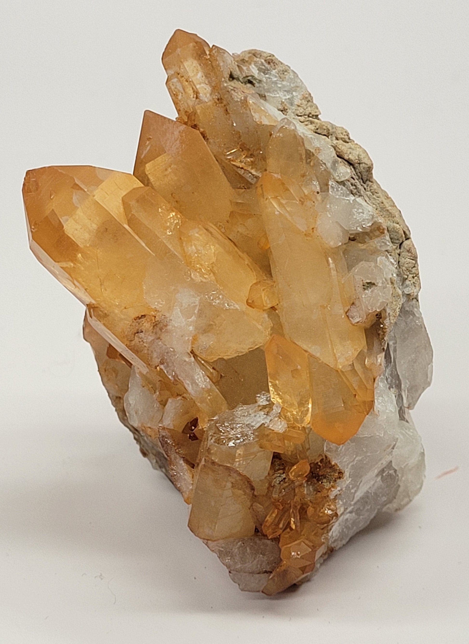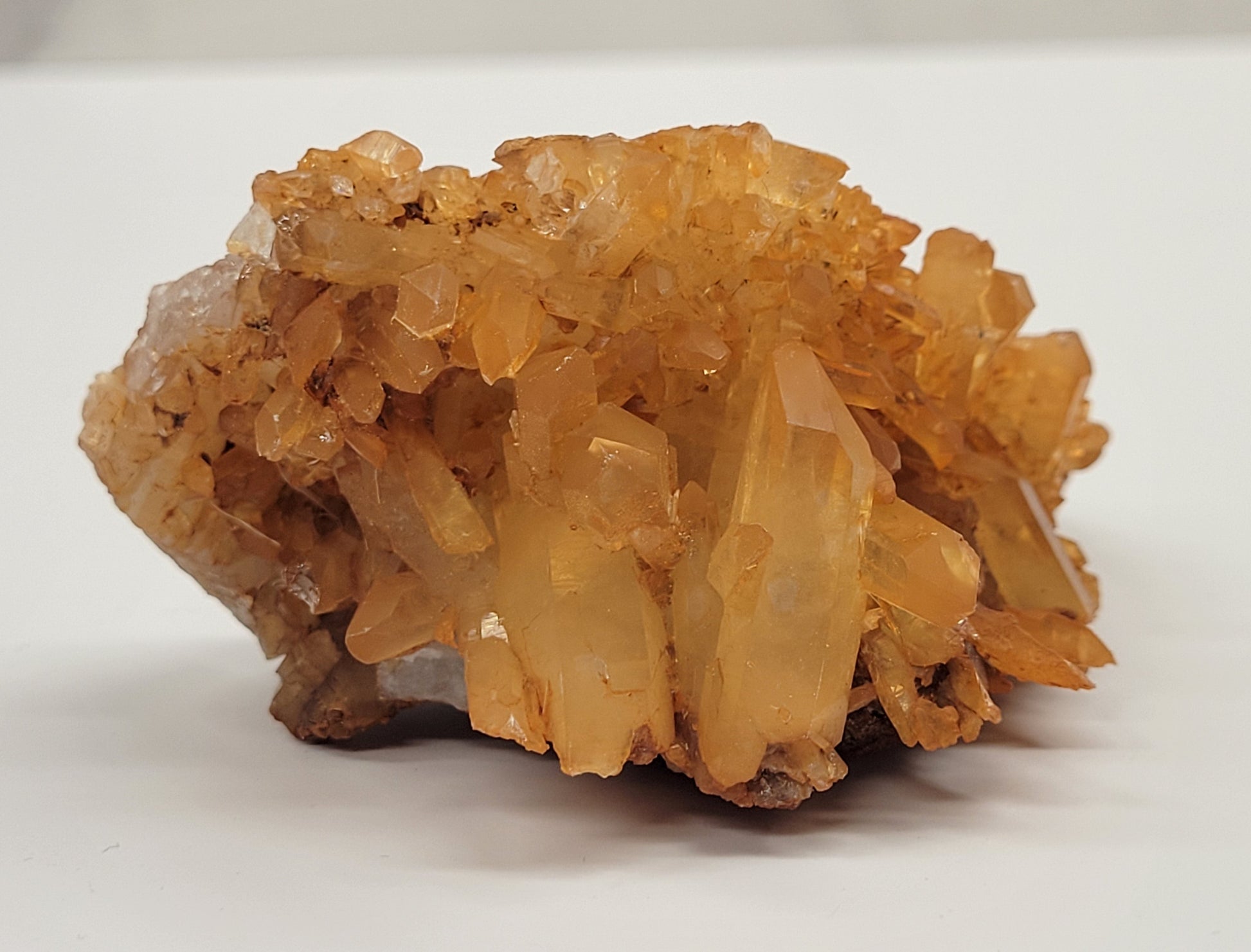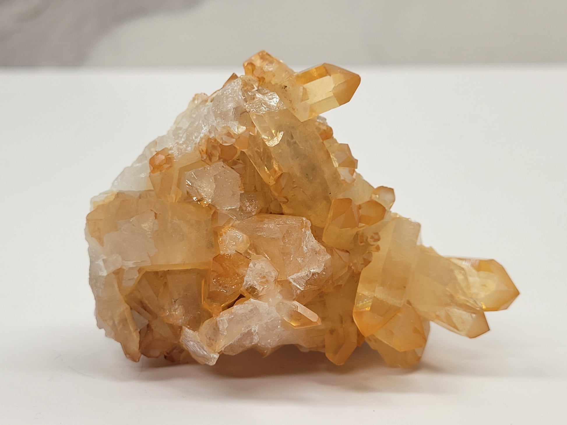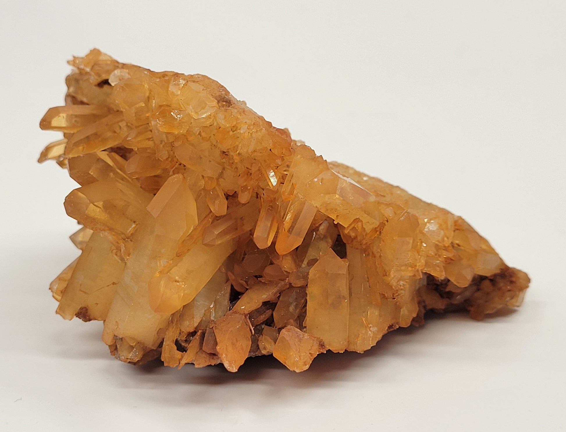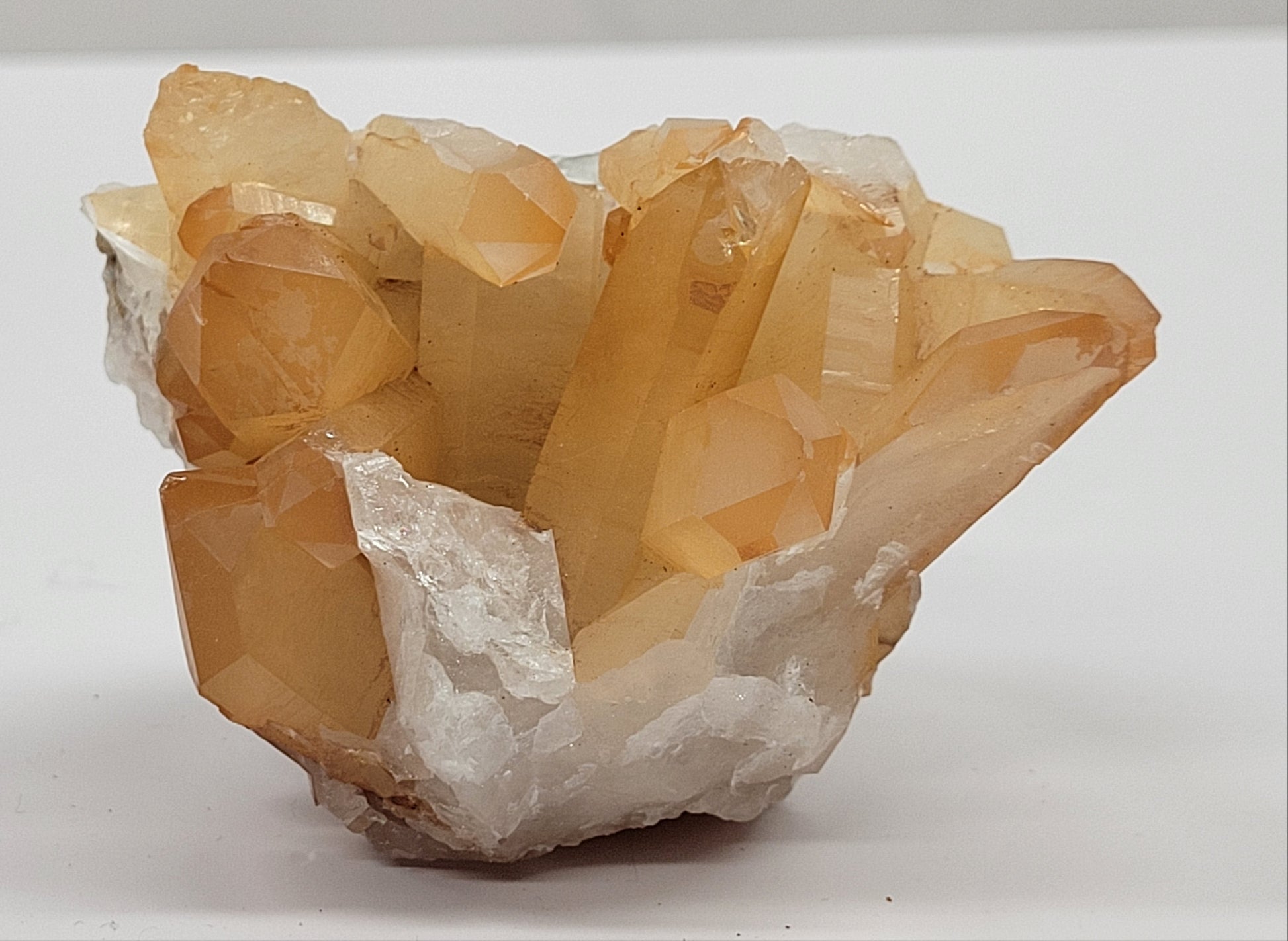The vibrant orange color of Tangerine Quartz is a result of iron oxide minerals, such as hematite or lepidocrocite, that coat the surface of the quartz crystal. These minerals are typically found in close proximity to the quartz, and they become attached to the crystal through a process known as hydrothermal deposition. This process occurs when hot, mineral-rich water flows through fractures and cavities in the Earth’s crust, depositing minerals on the surfaces of existing crystals. As the water cools and evaporates, the minerals become concentrated, forming a thin layer on the quartz’s surface.