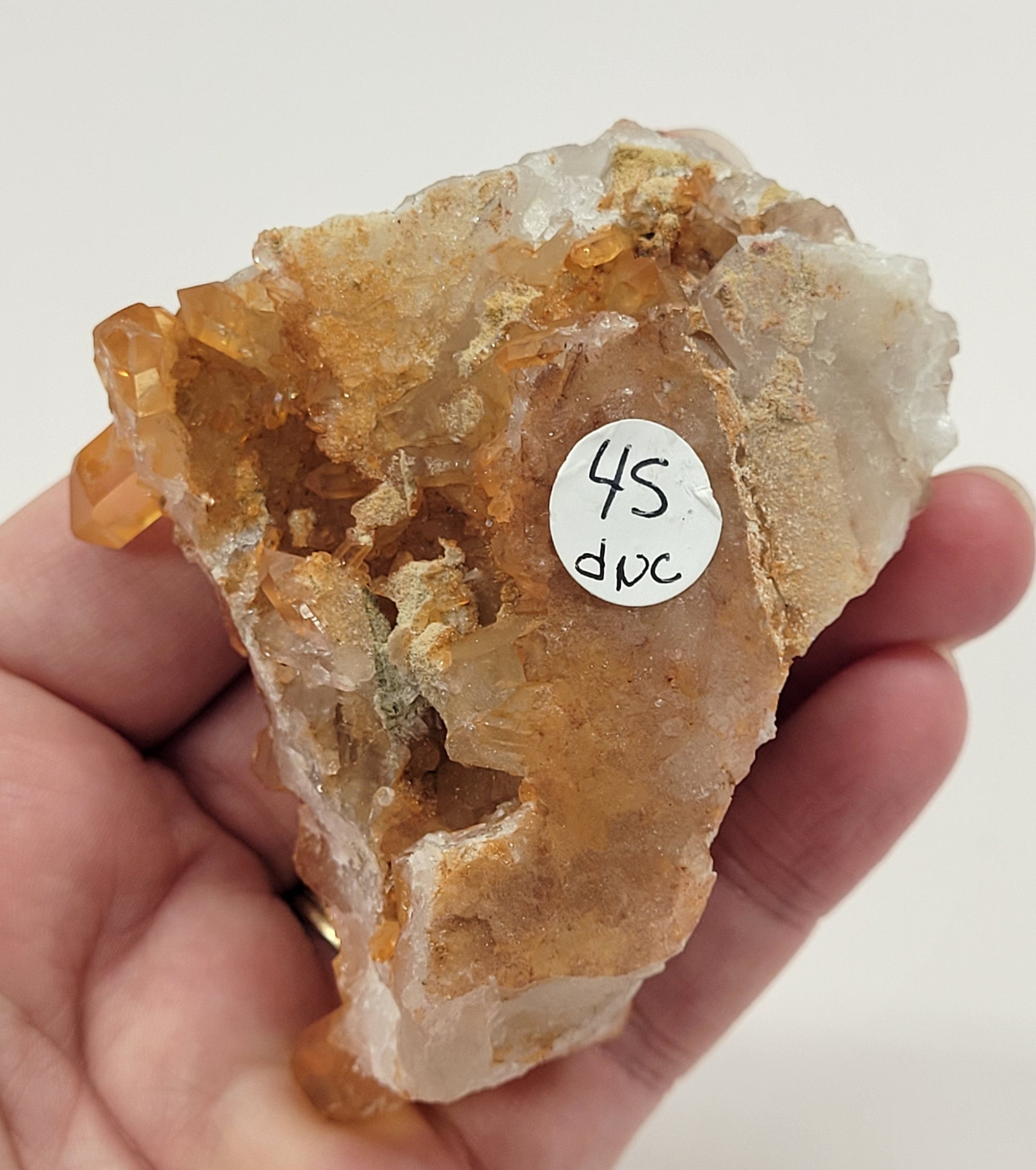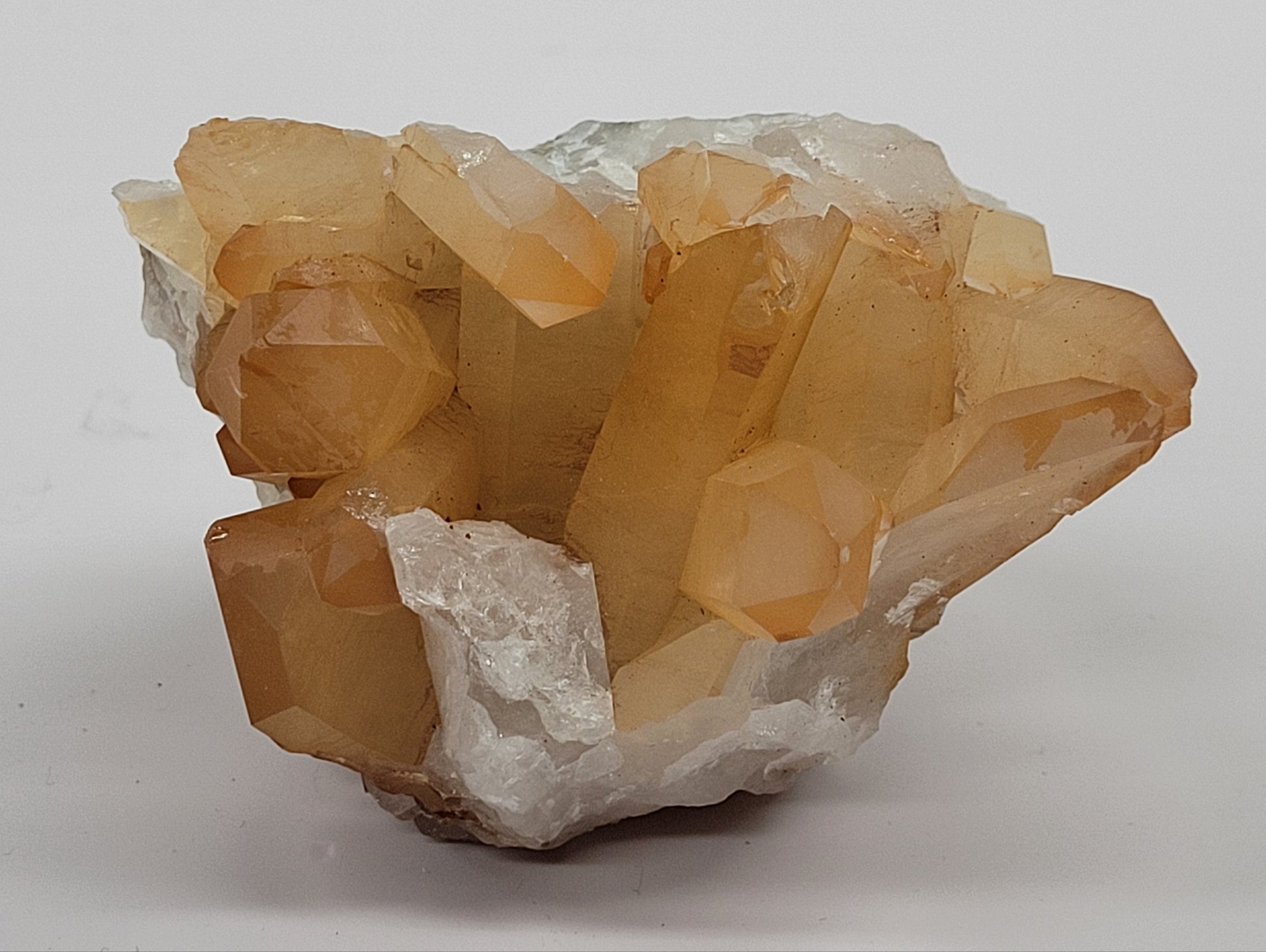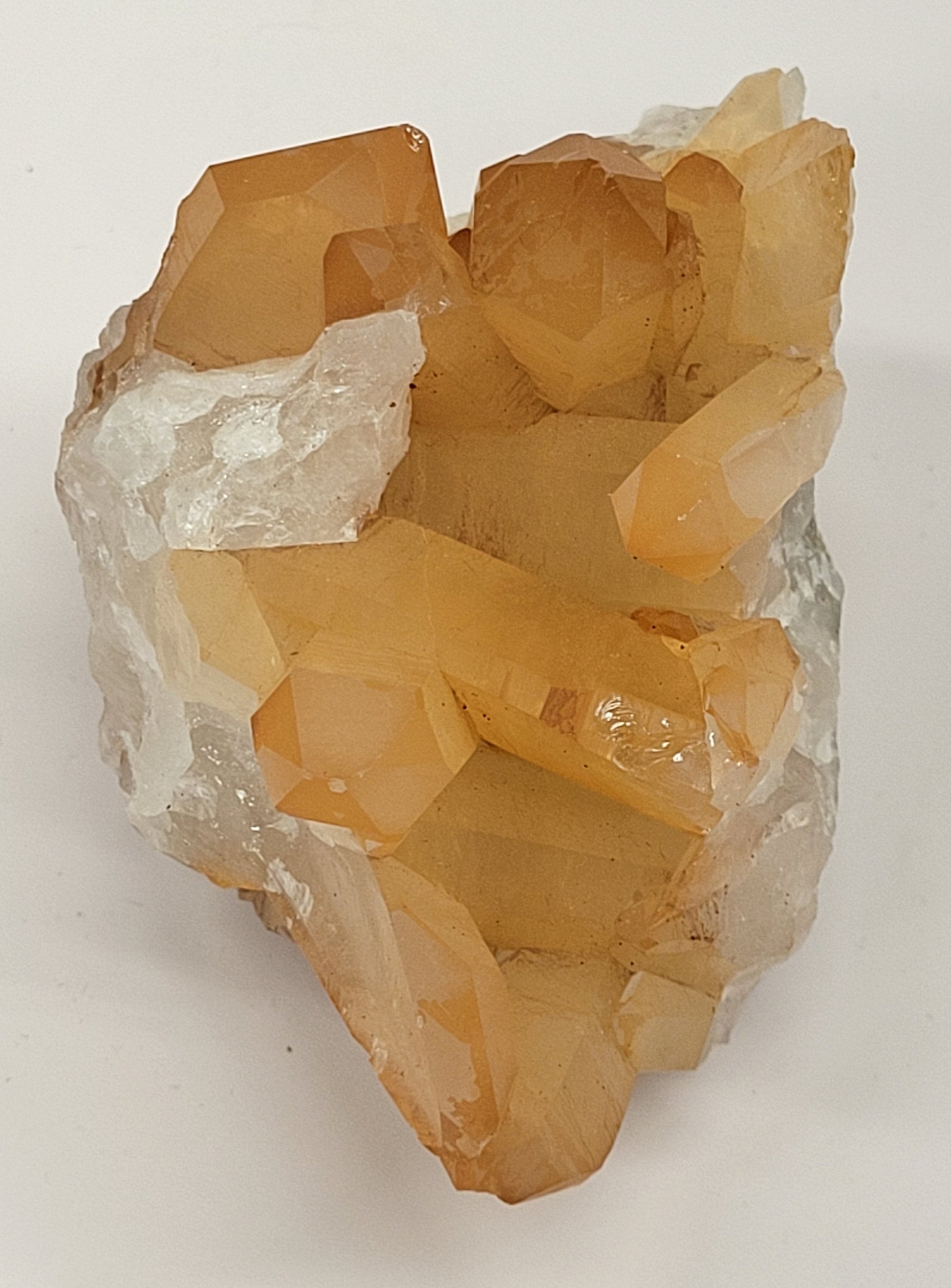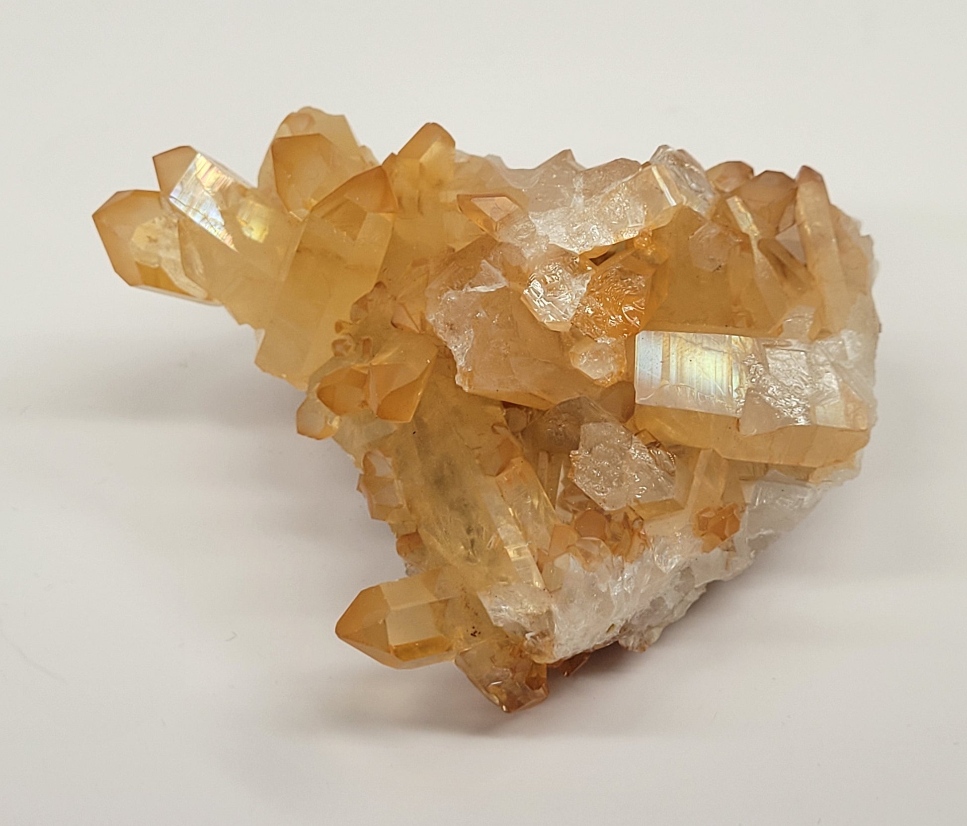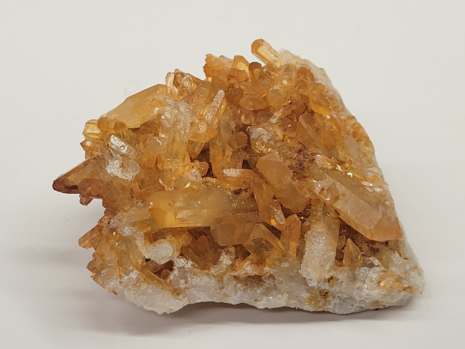The vibrant orange color of Tangerine Quartz is a result of iron oxide minerals, such as hematite or lepidocrocite, that coat the surface of the quartz crystal. These minerals are typically found in close proximity to the quartz, and they become attached to the crystal through a process known as hydrothermal deposition. This process occurs when hot, mineral-rich water flows through fractures and cavities in the Earth’s crust, depositing minerals on the surfaces of existing crystals. As the water cools and evaporates, the minerals become concentrated, forming a thin layer on the quartz’s surface.