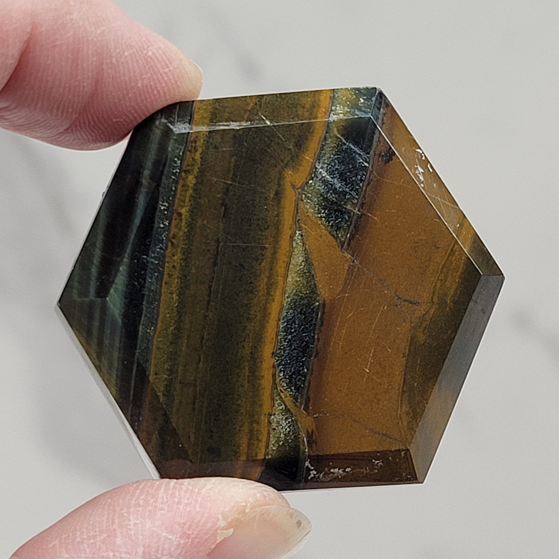Hexagon coins measure between 1.25" to 1.5" and are randomly chosen.