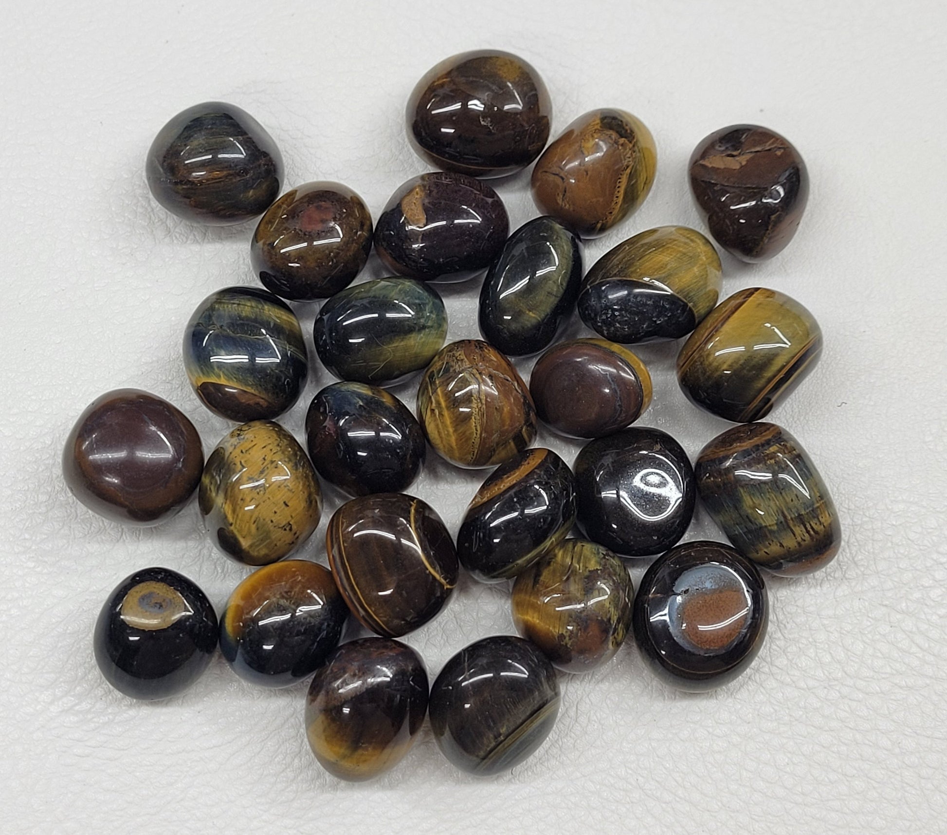 Tiger Eye is a variety of Quartz and a pseudomorph (meaning false form) replacement of Crocidolite. It forms when Crocidolite has its chemical fibers replaced by silica. Its colors are generally a combination of golden browns, yellow, beige or tan.