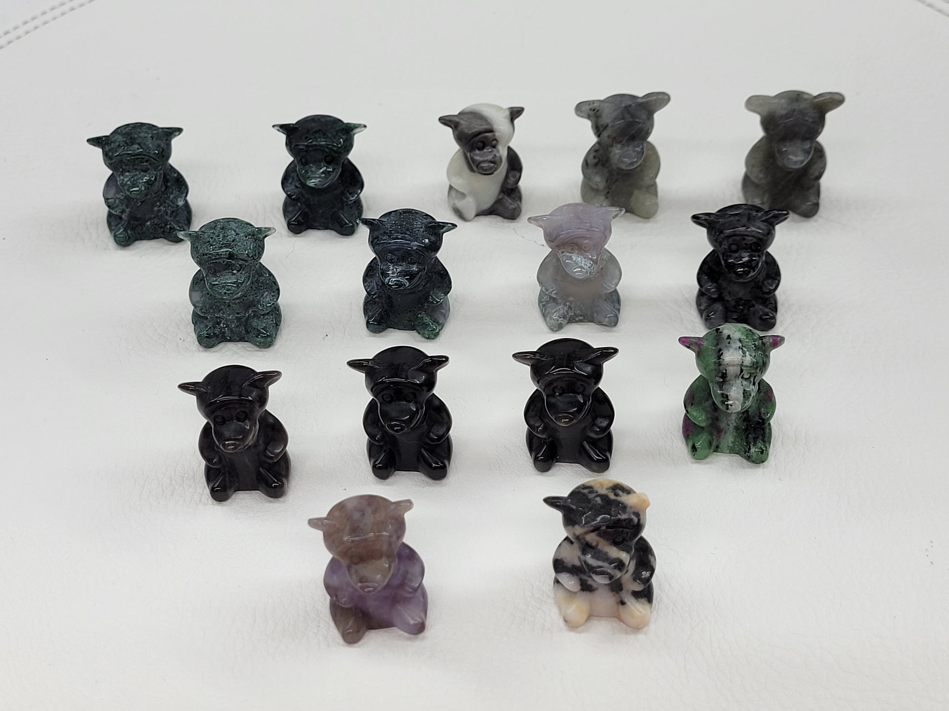 Tigger carving in a variety of materials. Each Tigger is about 1" tall.