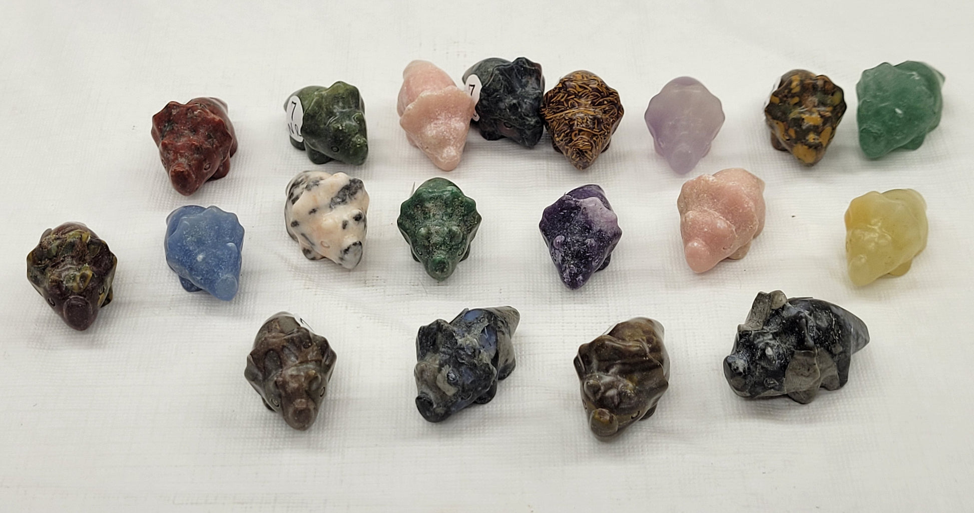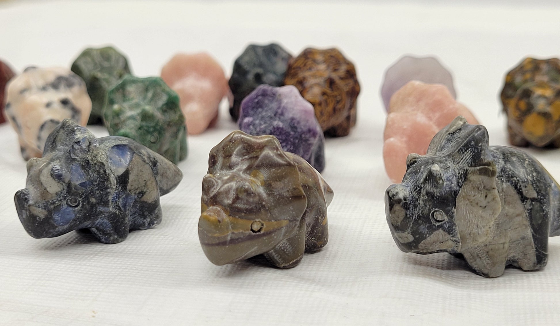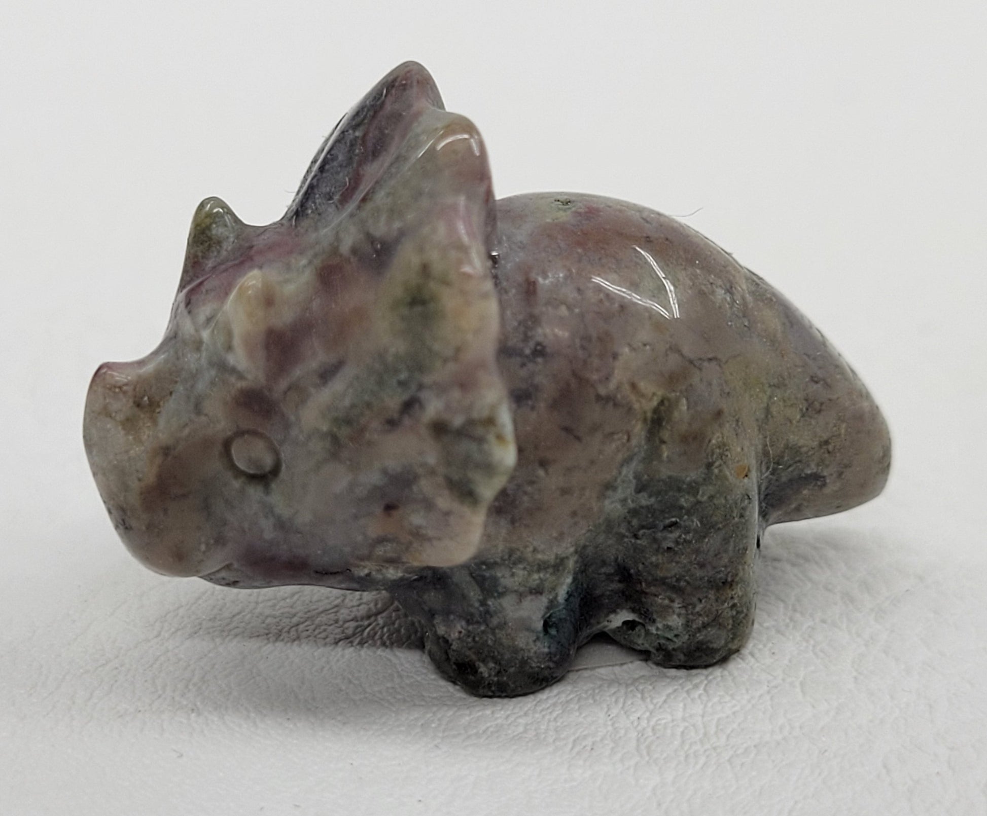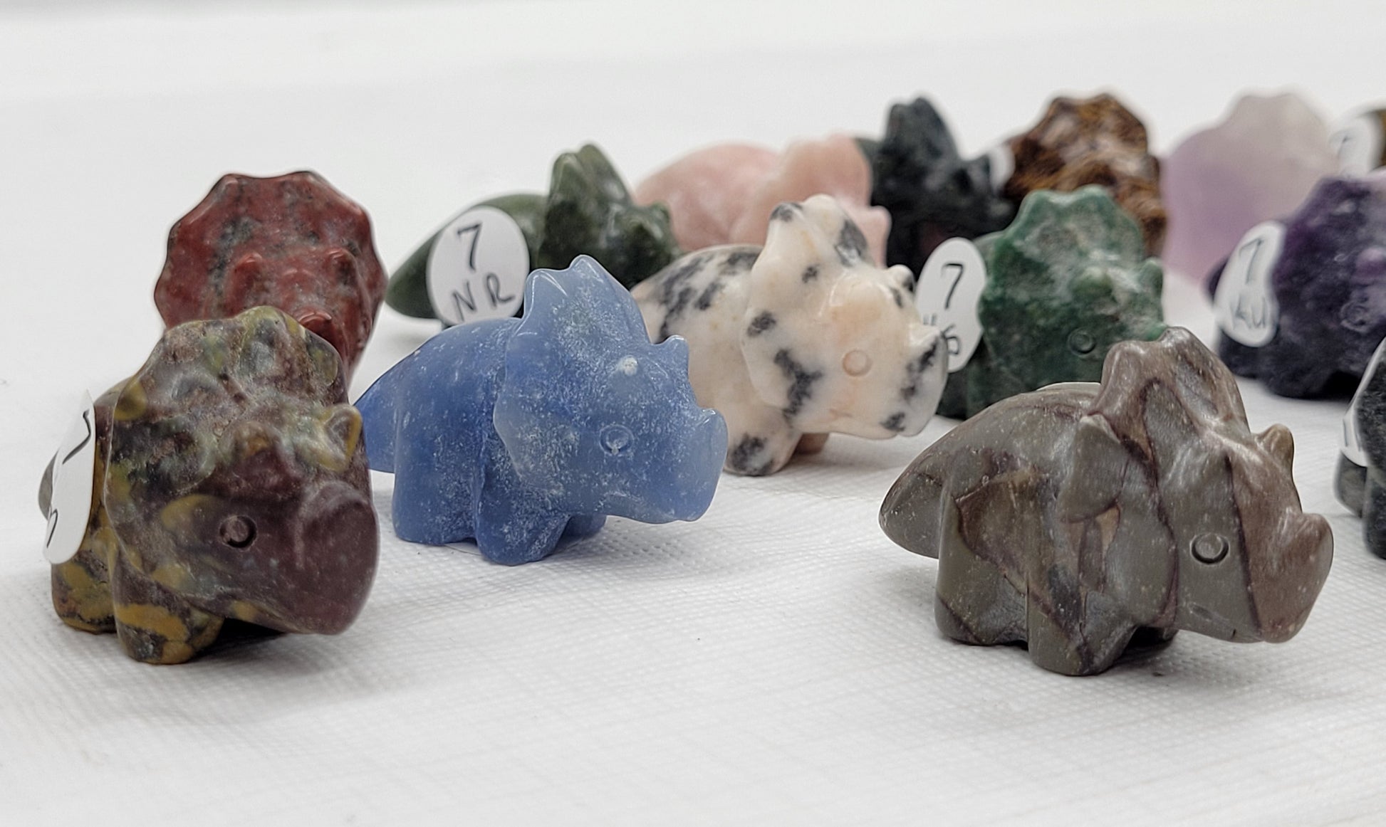 Adorable Triceratops dino carvings in a variety of materials. Each dino measures approx. 1.4" long