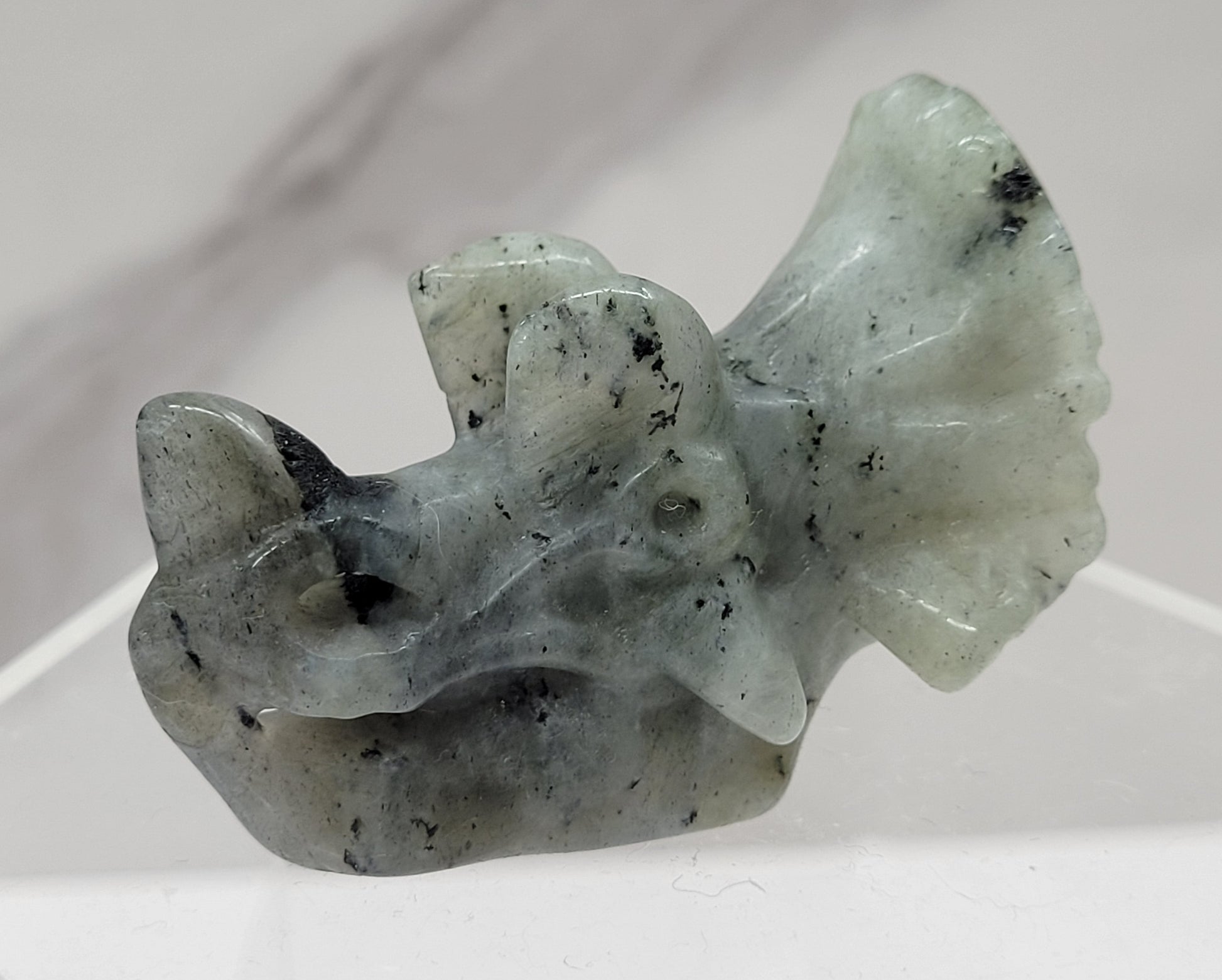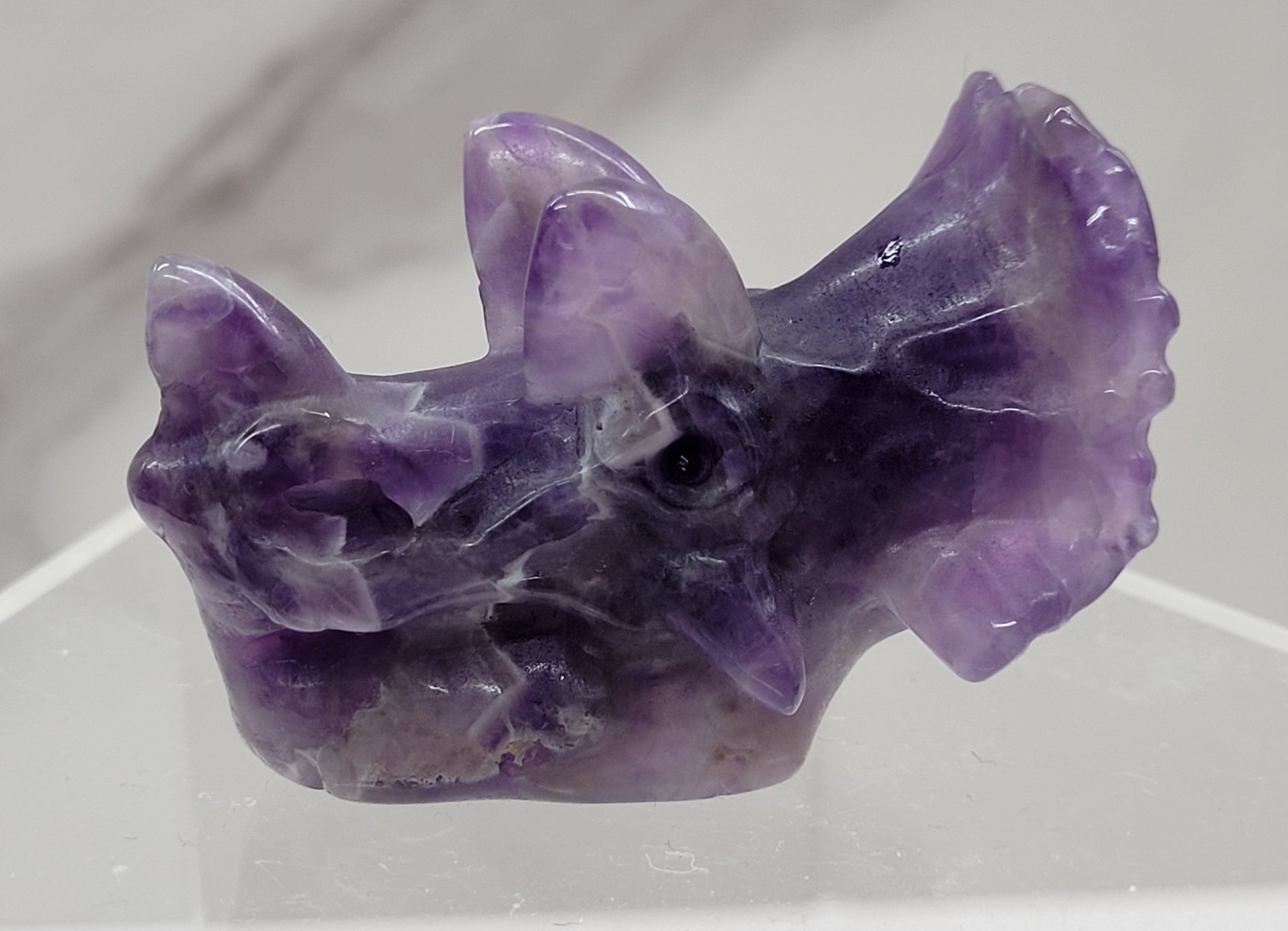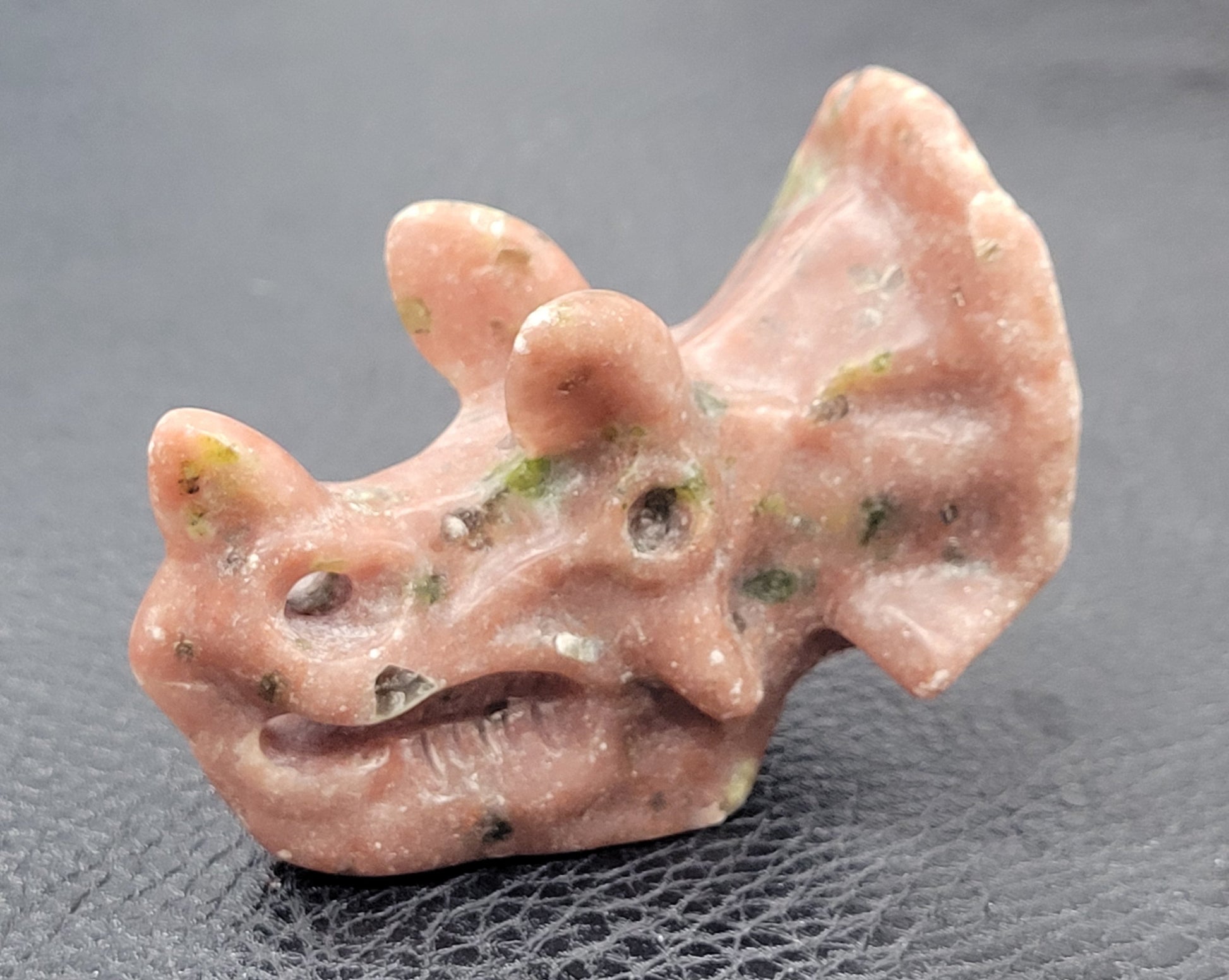 Triceratops skull carvings in a variety of materials. Each skull measures approx. 2.25" x 2"