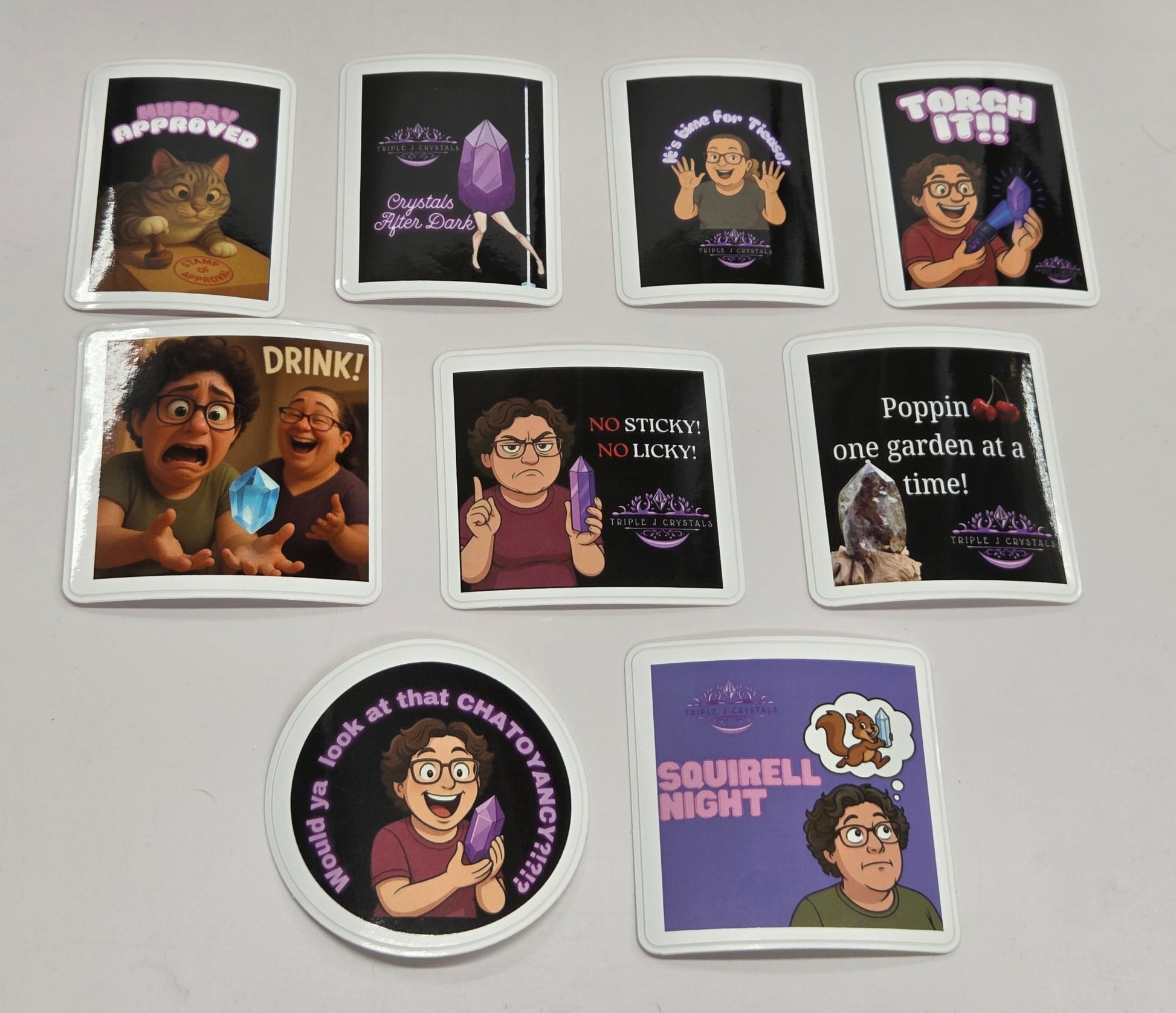 Fun stickers showcasing the crazy of Triple J lives, friends and my BFF, Tina (aka Ticasso).