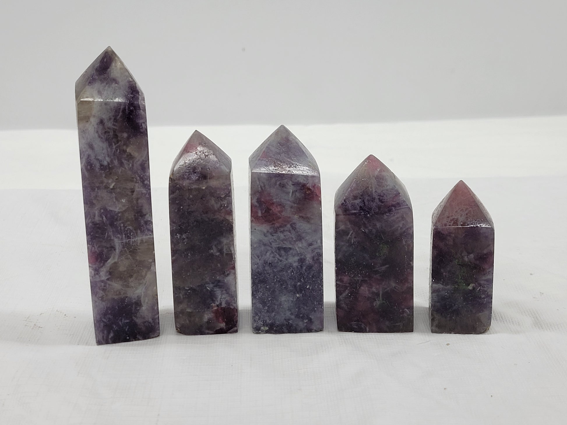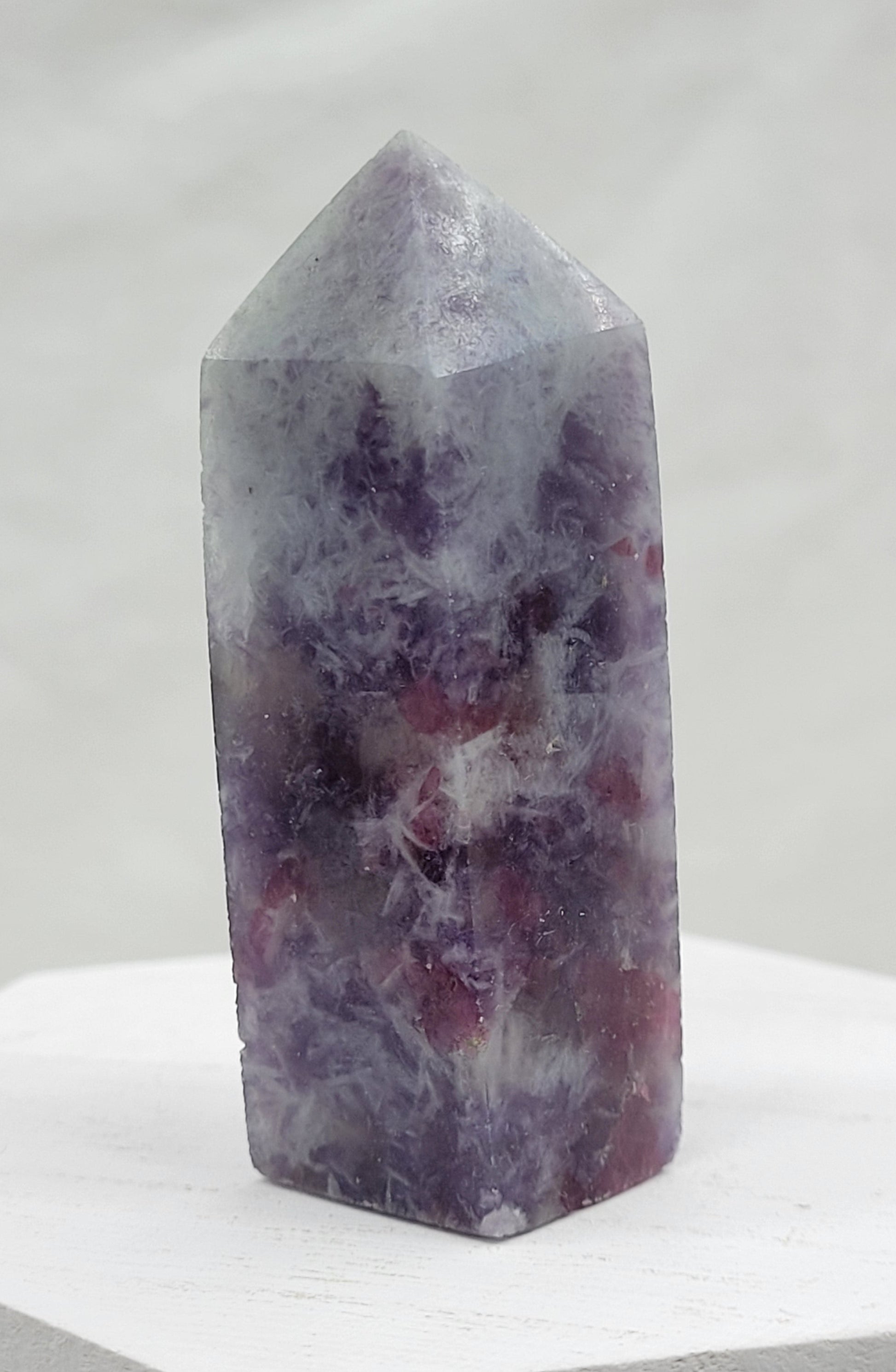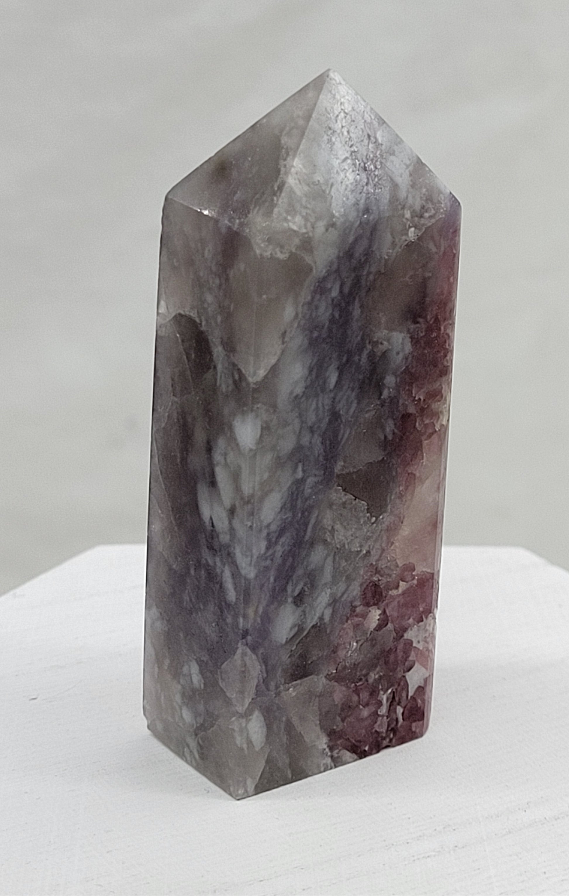 Unicorn Stone are a beautiful combination of Lepidolite, Pink Tourmaline/Rubellite, Clevelandite and Smokey Quartz.