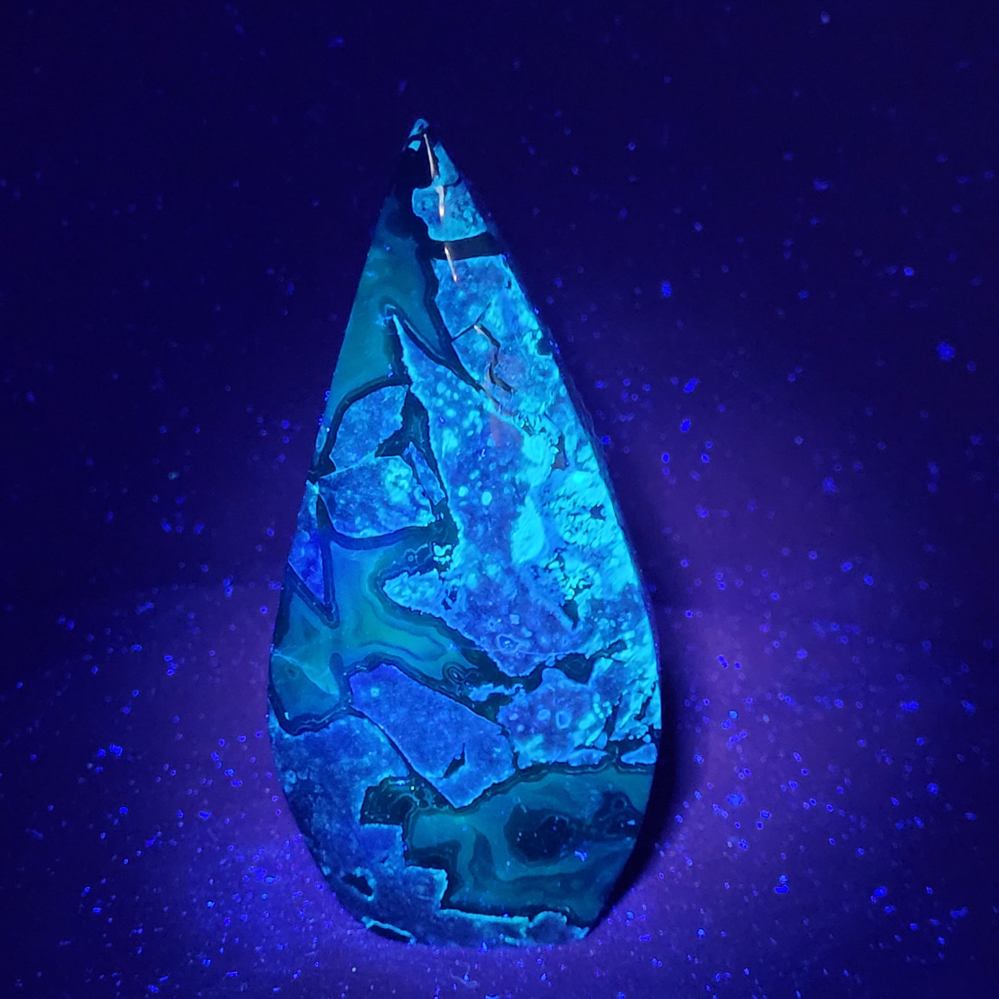 Agates are most commonly found as nodules within the cavities of volcanic rocks. These cavities are formed from the gases trapped within the liquid volcanic material forming vesicles. UV reactive.