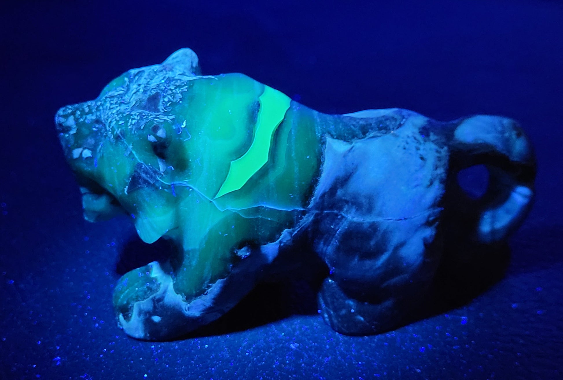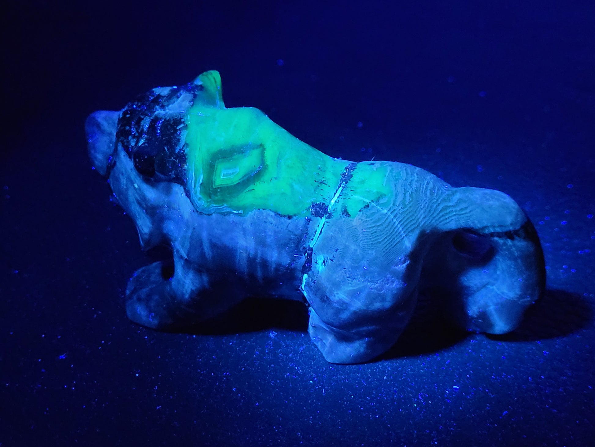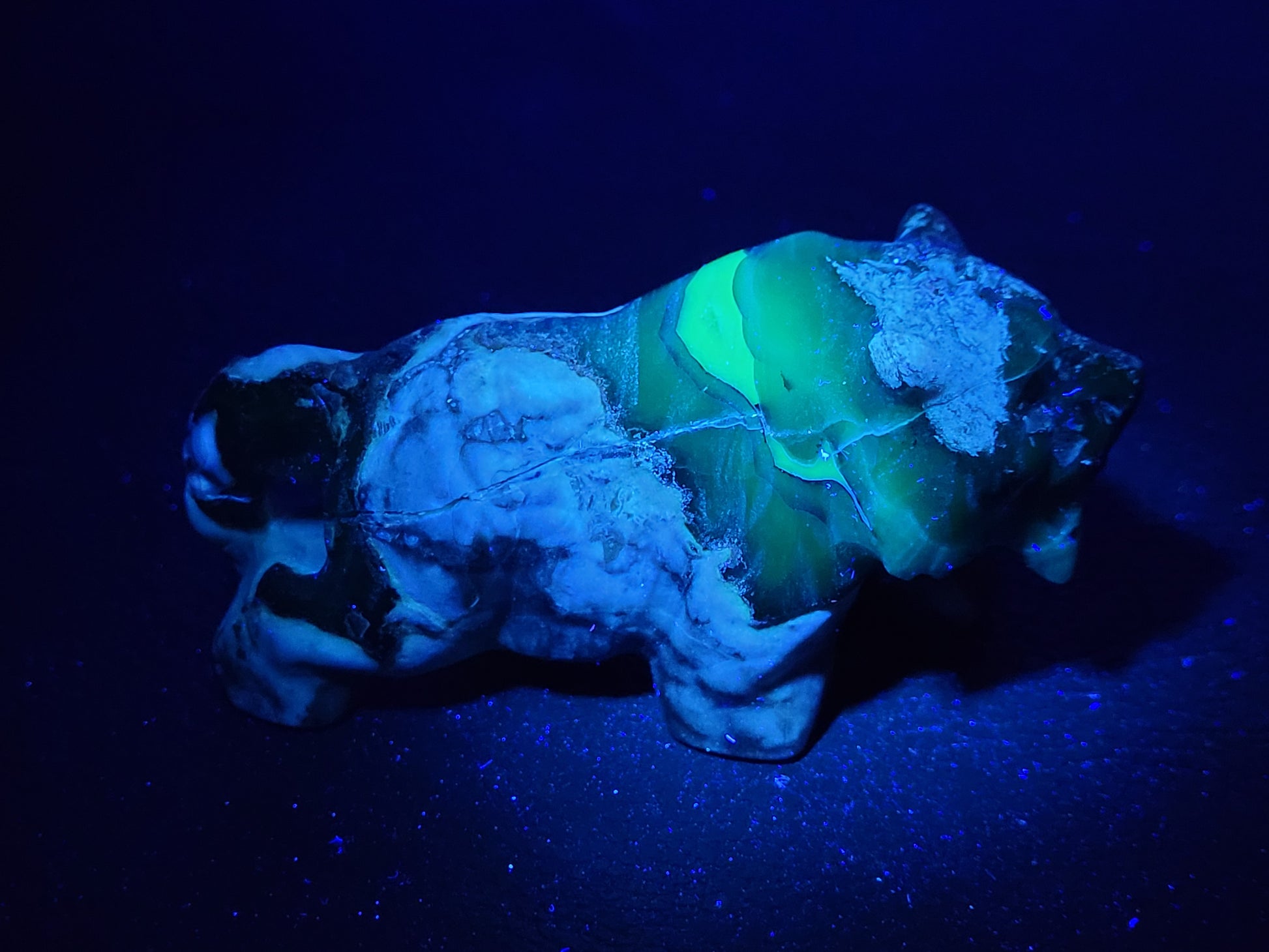 Agates are most commonly found as nodules within the cavities of volcanic rocks. These cavities are formed from the gases trapped within the liquid volcanic material forming vesicles. UV reactive.