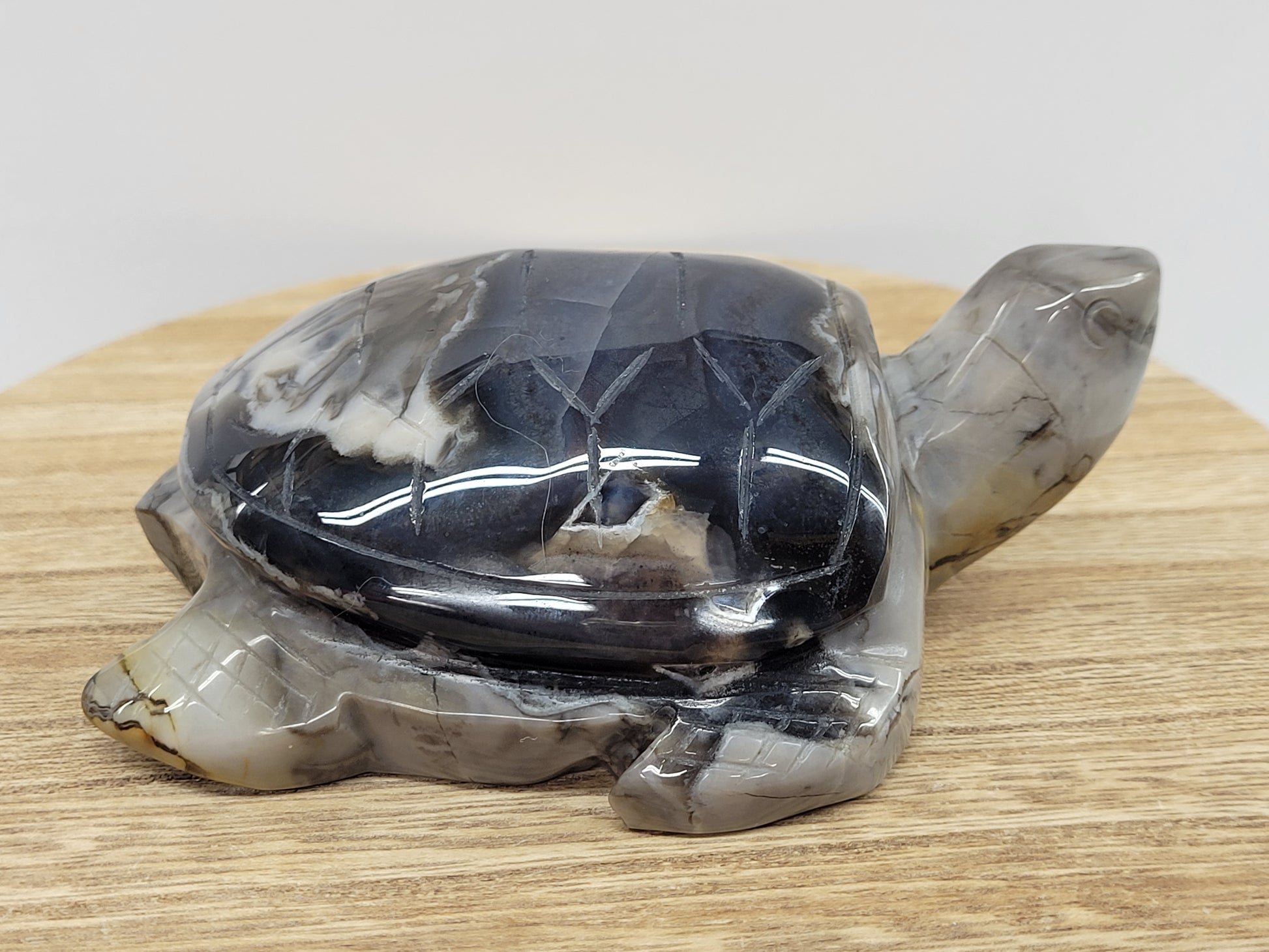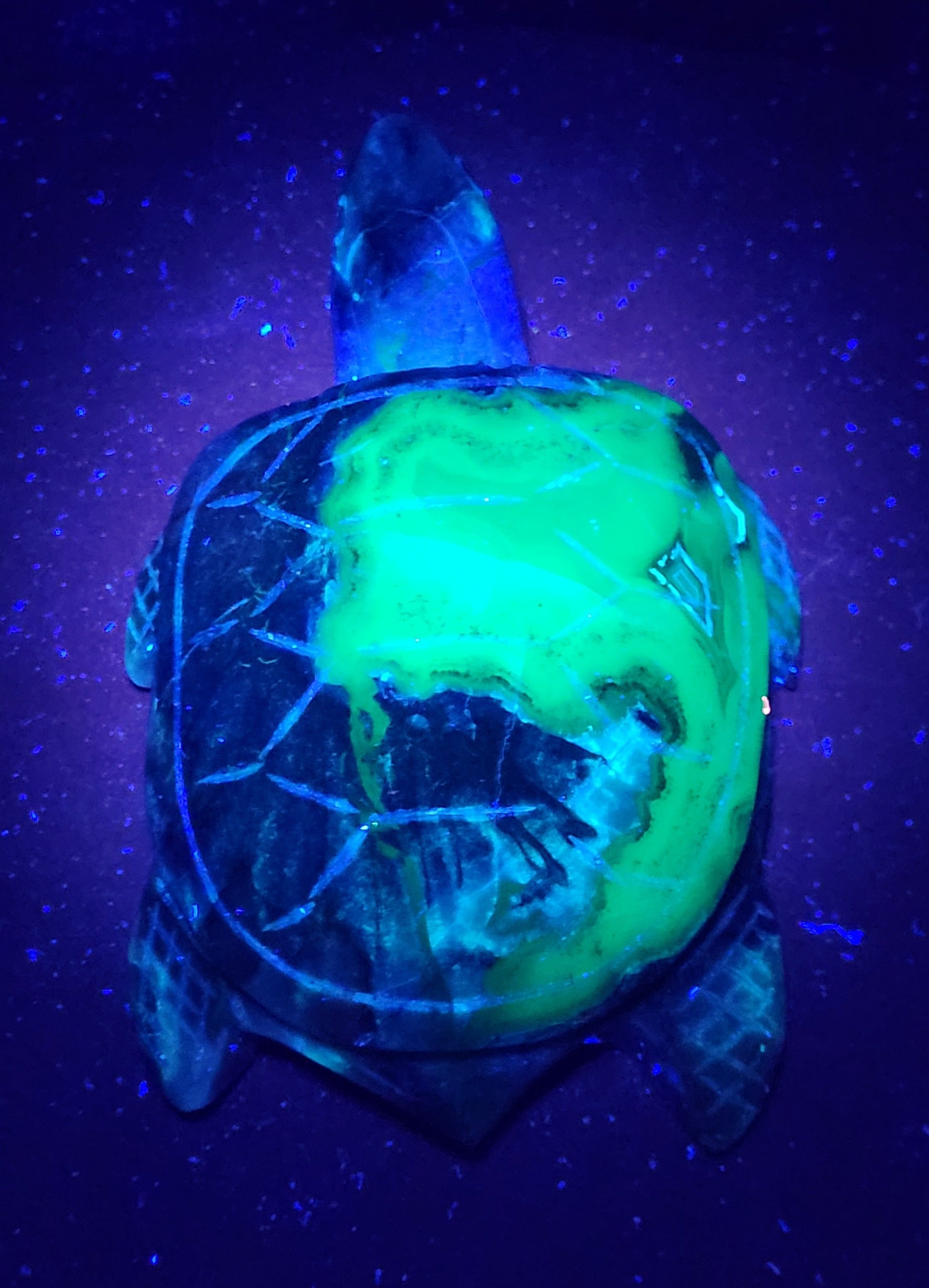 Agates are most commonly found as nodules within the cavities of volcanic rocks. These cavities are formed from the gases trapped within the liquid volcanic material forming vesicles. UV reactive.