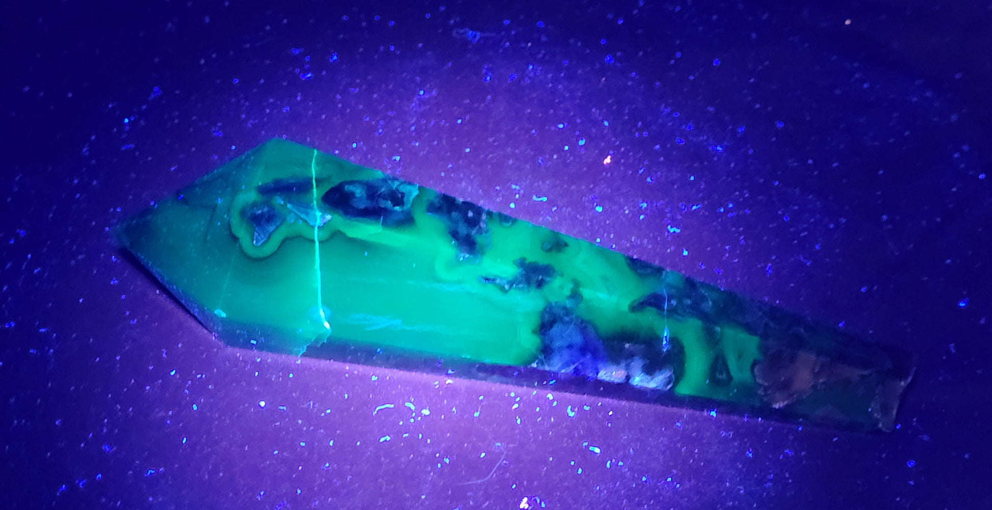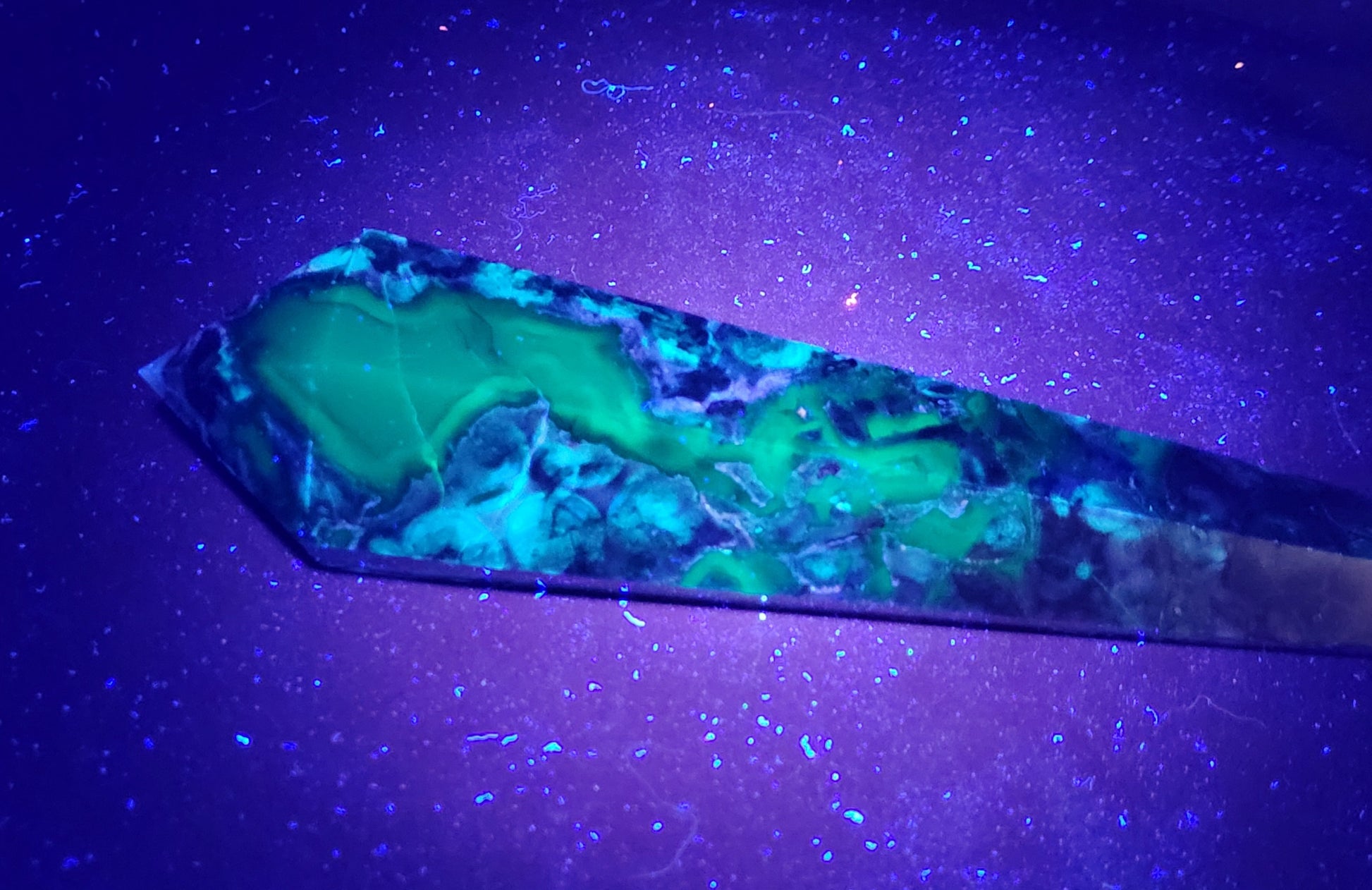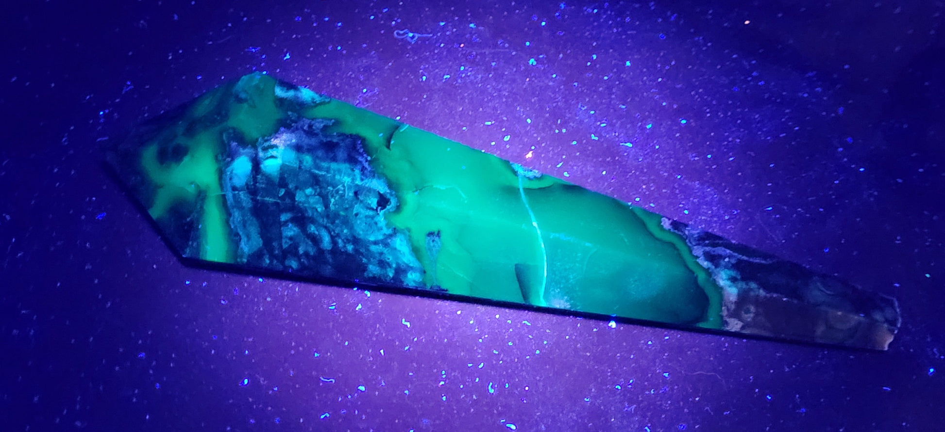 Agates are most commonly found as nodules within the cavities of volcanic rocks. These cavities are formed from the gases trapped within the liquid volcanic material forming vesicles. UV reactive.