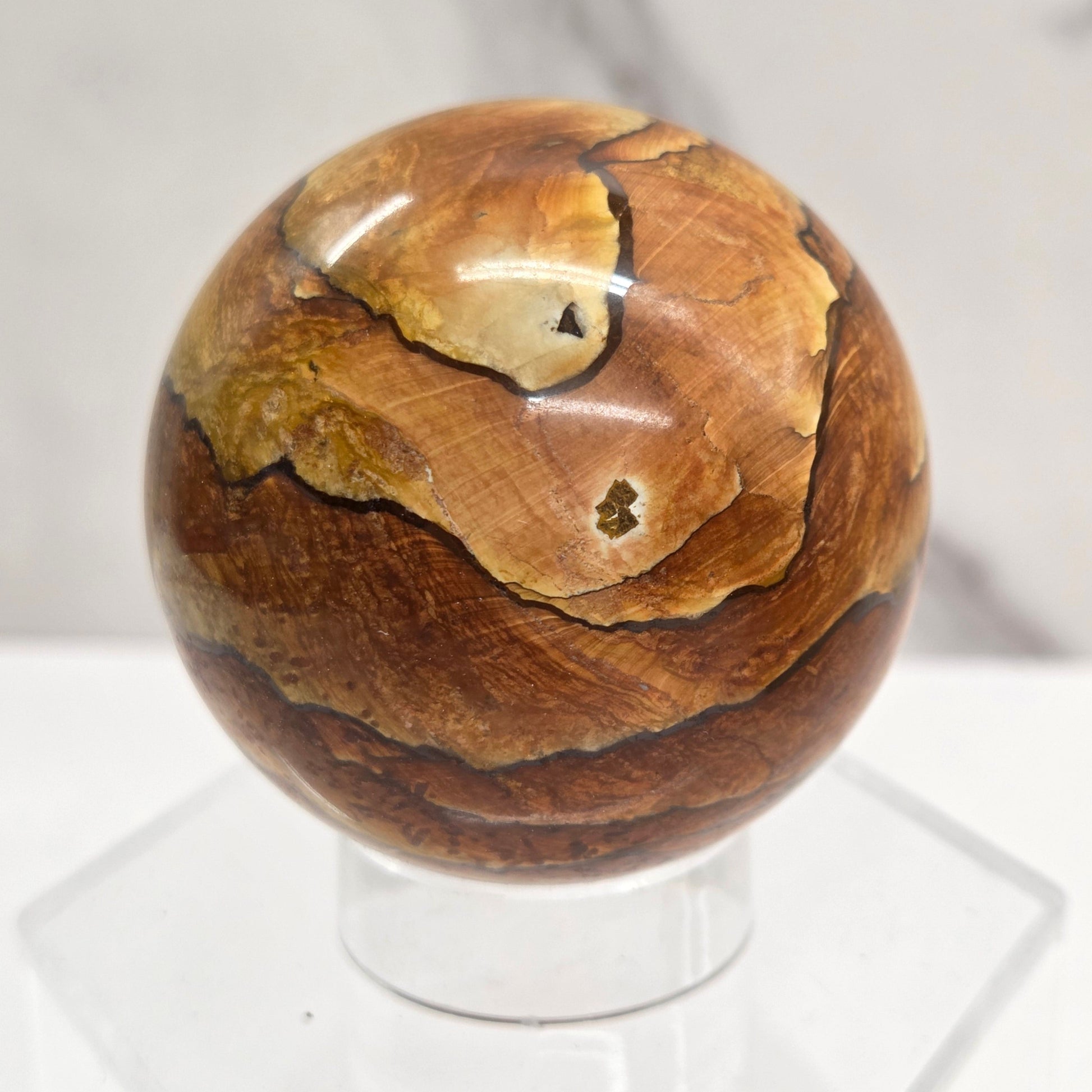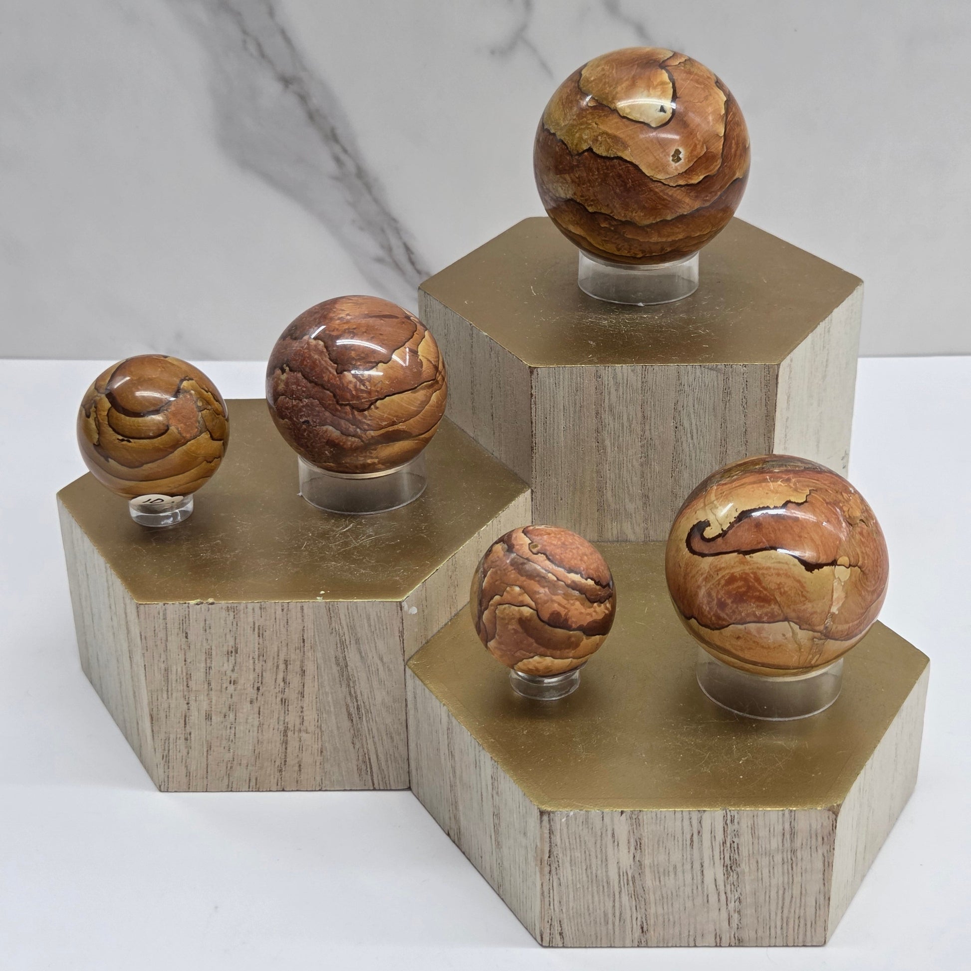 Walnut jasper is a type of opaque chalcedony, microcrystalline quartz, that resembles the wood grain of a walnut due to its unique earthy patters of brown and tan colors.