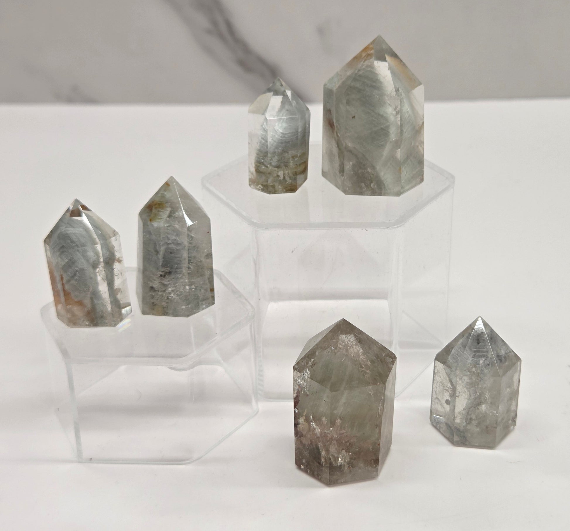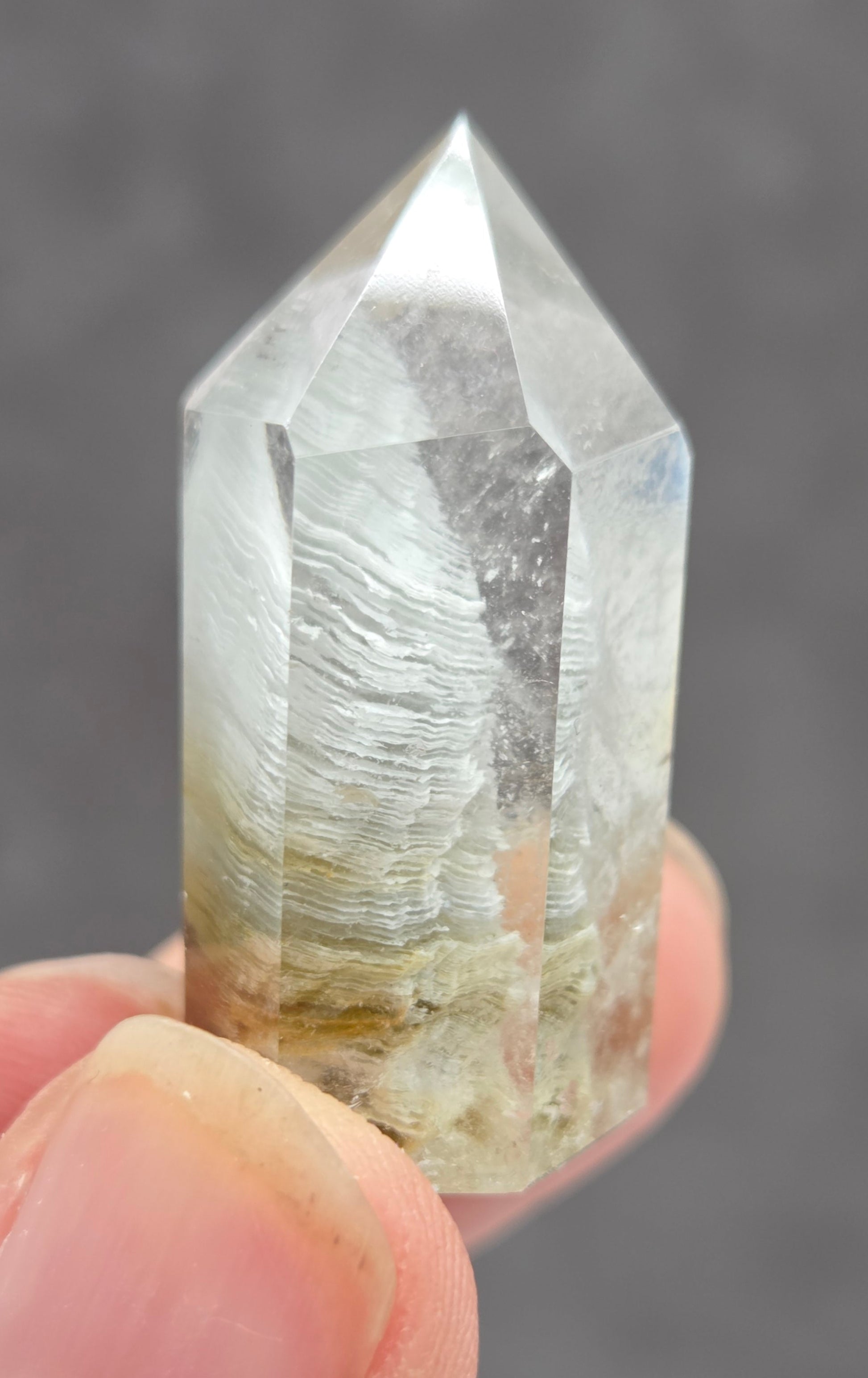 Garden Quartz and/or Thousand Layer Quartz, also known as Lodolite, is a variety of Quartz with inclusions of Chloride, Iron, and other trace minerals. The color can range to just about anything, depending on what trace minerals are inside and how transparent the Quartz crystal is. Its most commonly found in mossy green, pink, black, brown, or grey.