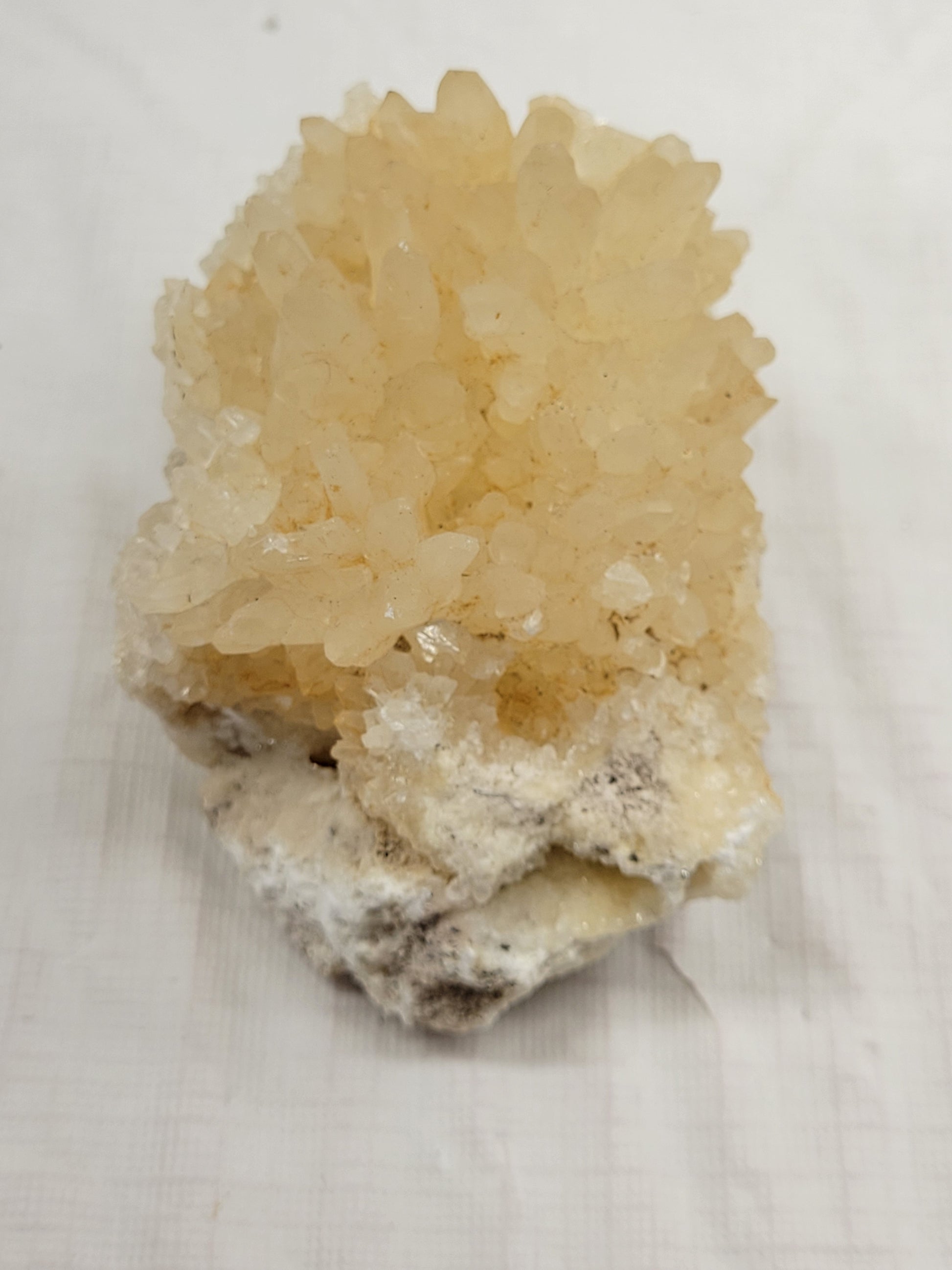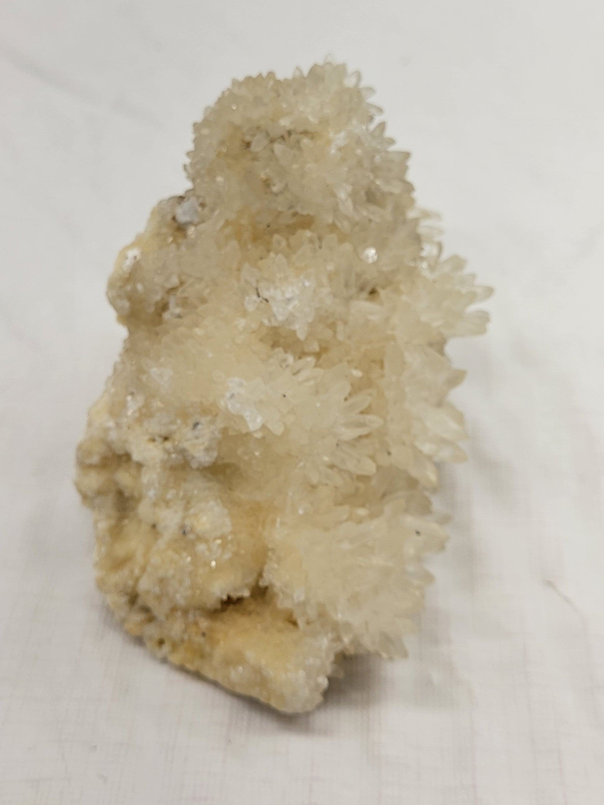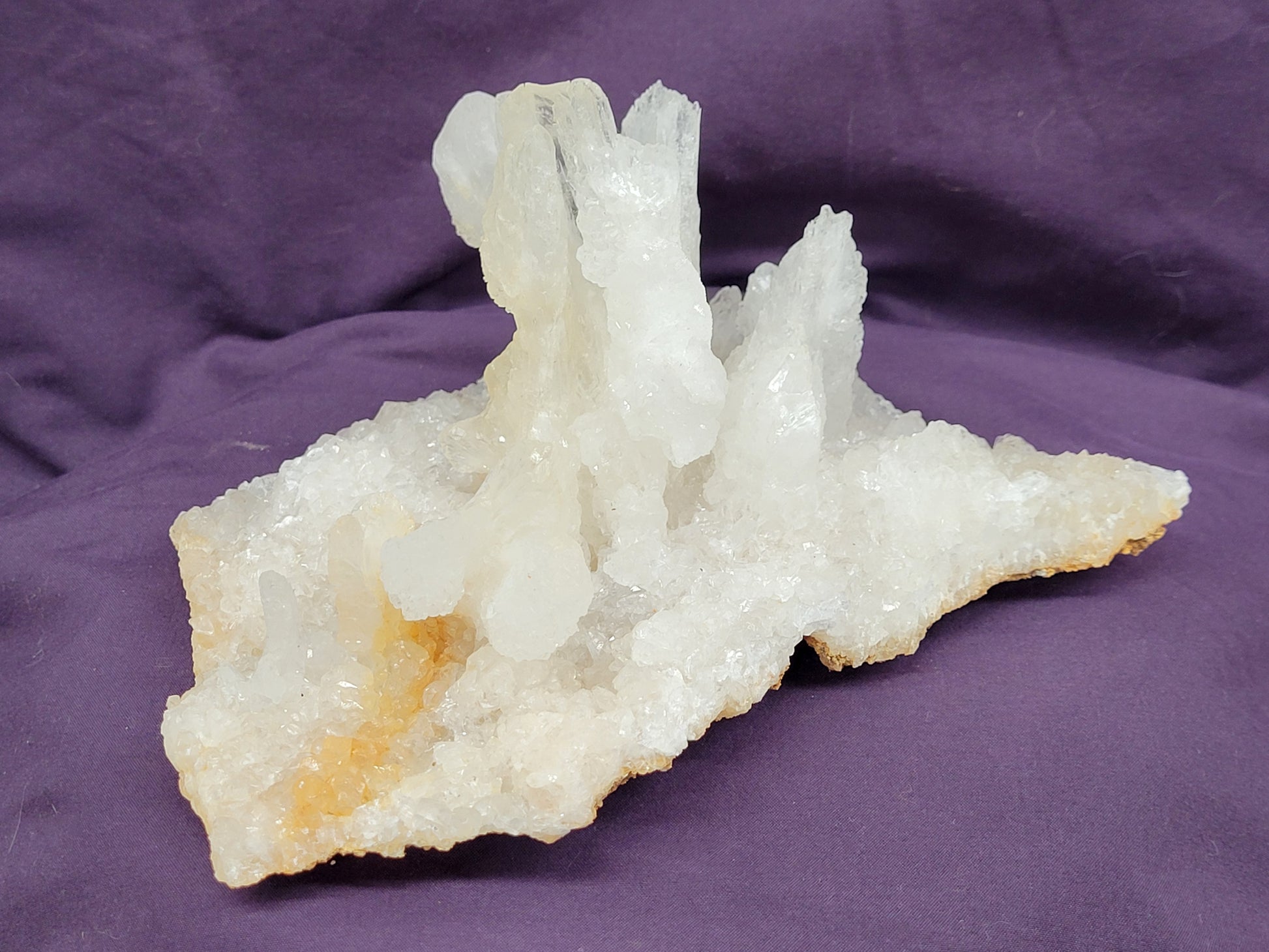 These beautiful, uncommon calcite specimens are from Indonesia. The colors range from white to yellow/orange hues. The calcite formations also come in a wide range; from spike like points to cubic formations. The calcites are UV reactive and glow white. This calcite is also known as Ice Calcite.