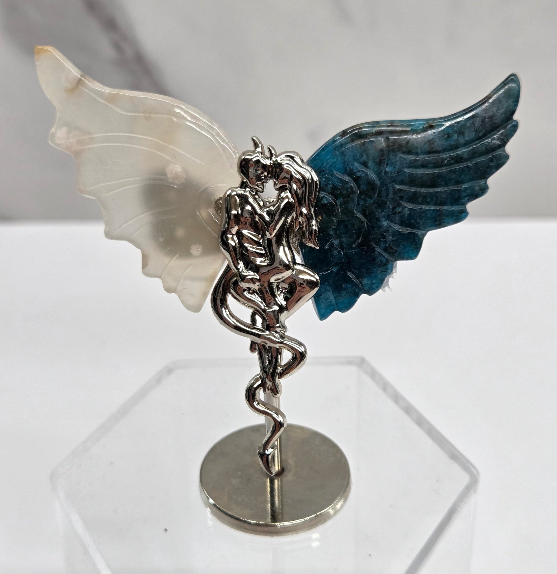 Blue Apatite w/ silver stand: wings 2" x 1", wingspan 2.25", height 3"
