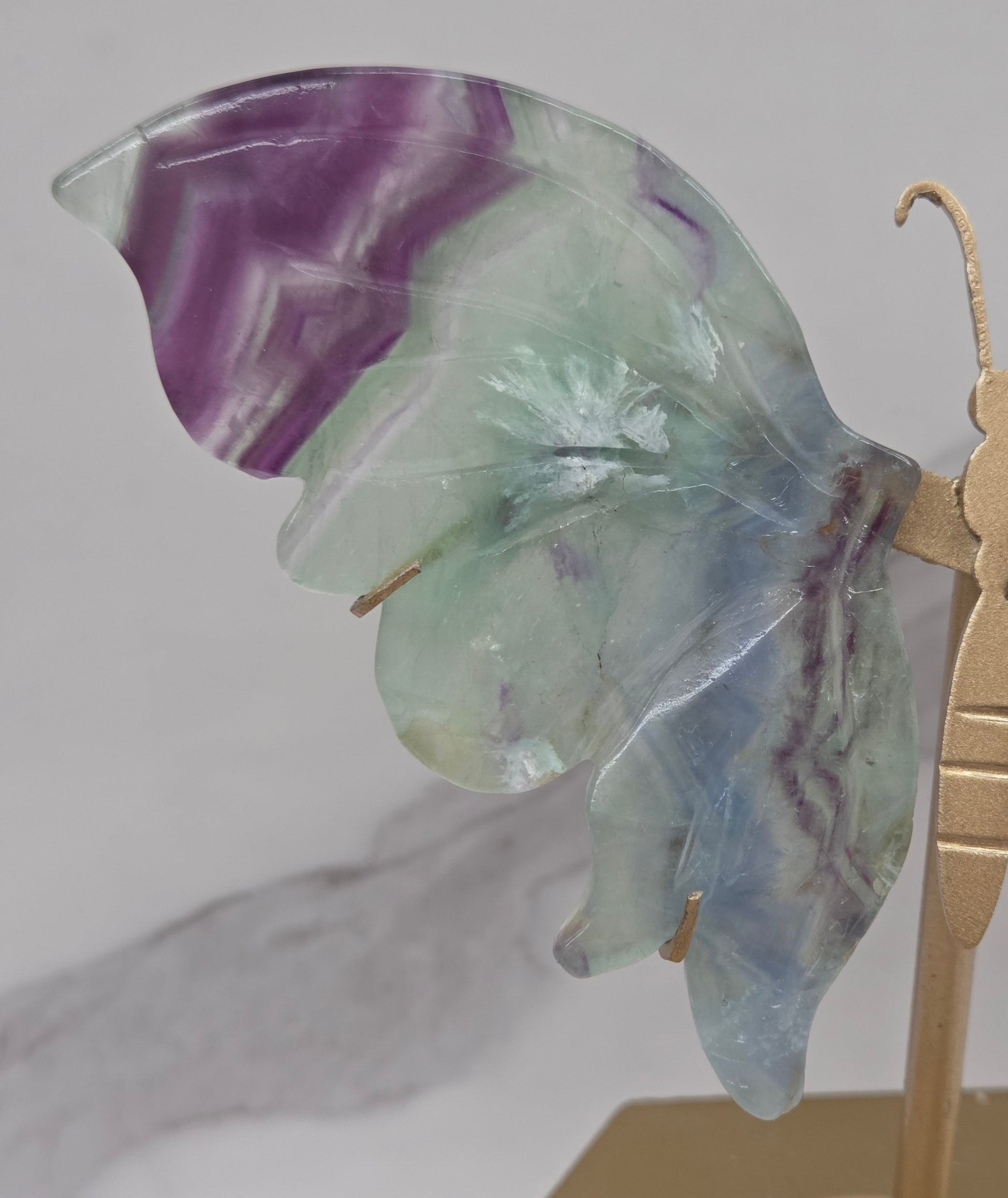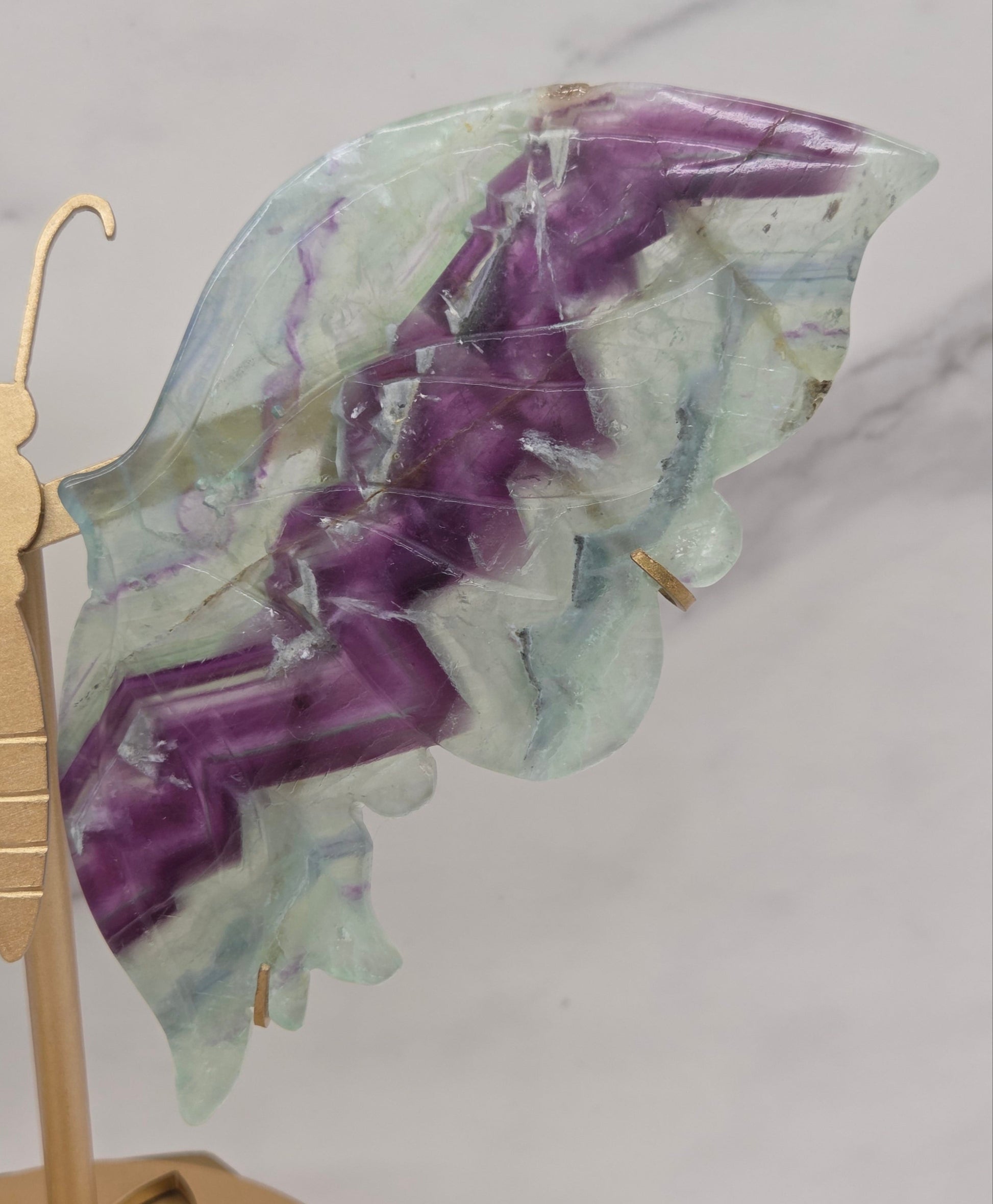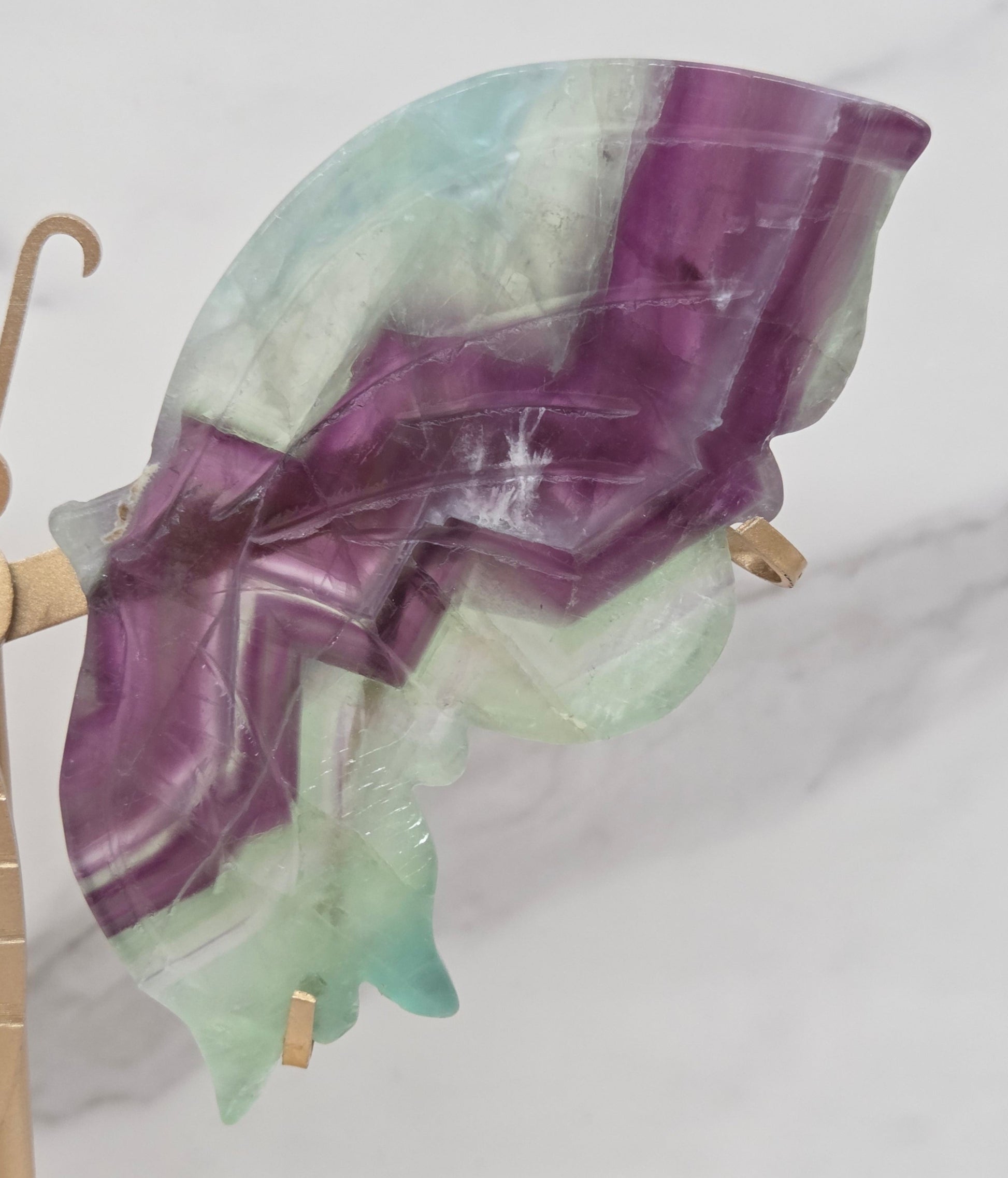 Feather Fluorite is a variety of Fluorite, forms in a wide variety of hues, typically purple, green, yellow, blue, and pure form – colorless. It is composed of calcium fluoride and is a member of the Halide family. Feather Fluorite is named for its Scolecite formations, which resemble delicate feathers or plumes.