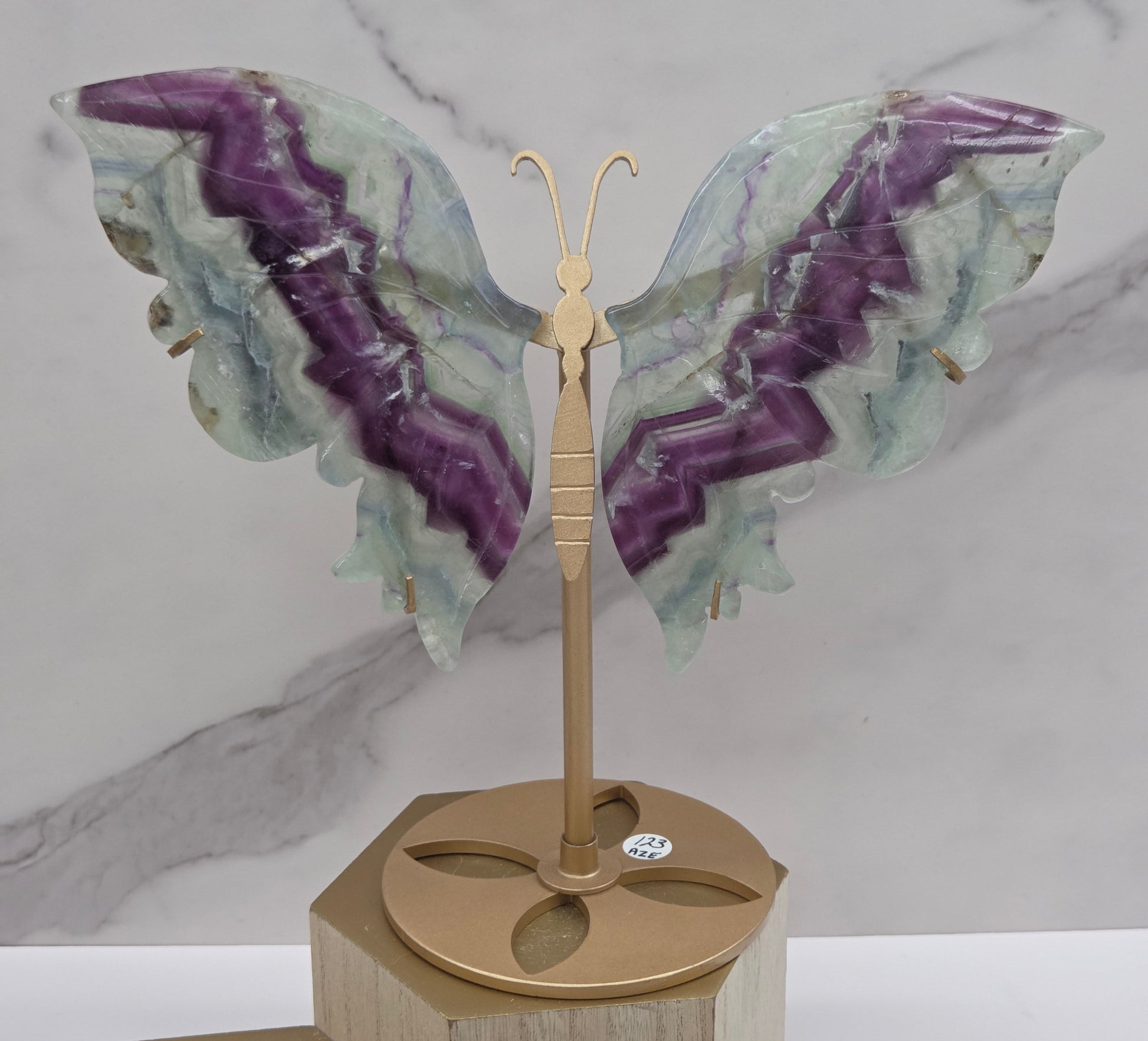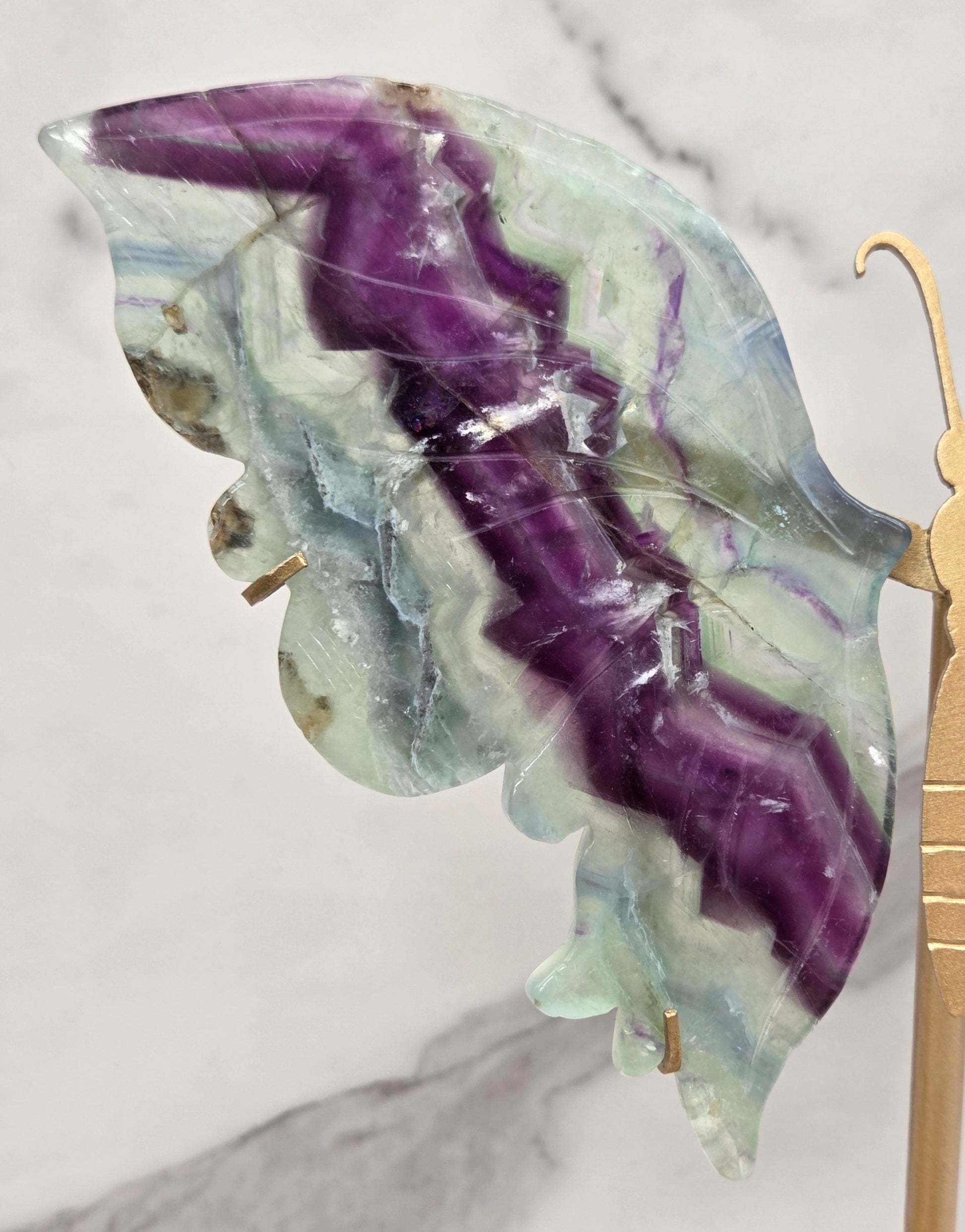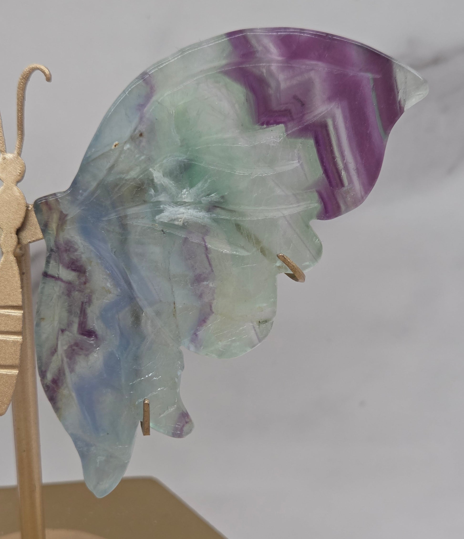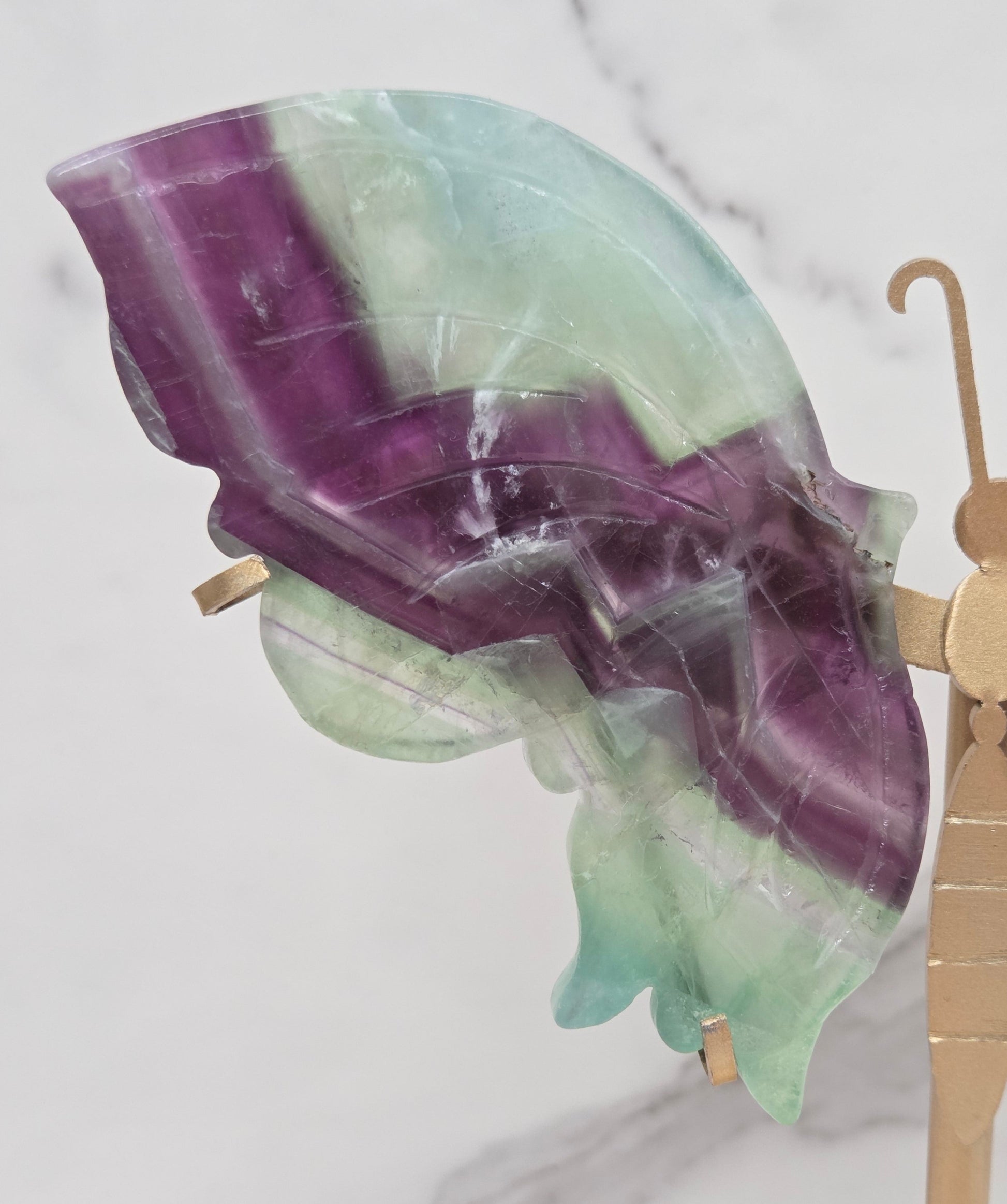 Feather Fluorite is a variety of Fluorite, forms in a wide variety of hues, typically purple, green, yellow, blue, and pure form – colorless. It is composed of calcium fluoride and is a member of the Halide family. Feather Fluorite is named for its Scolecite formations, which resemble delicate feathers or plumes.