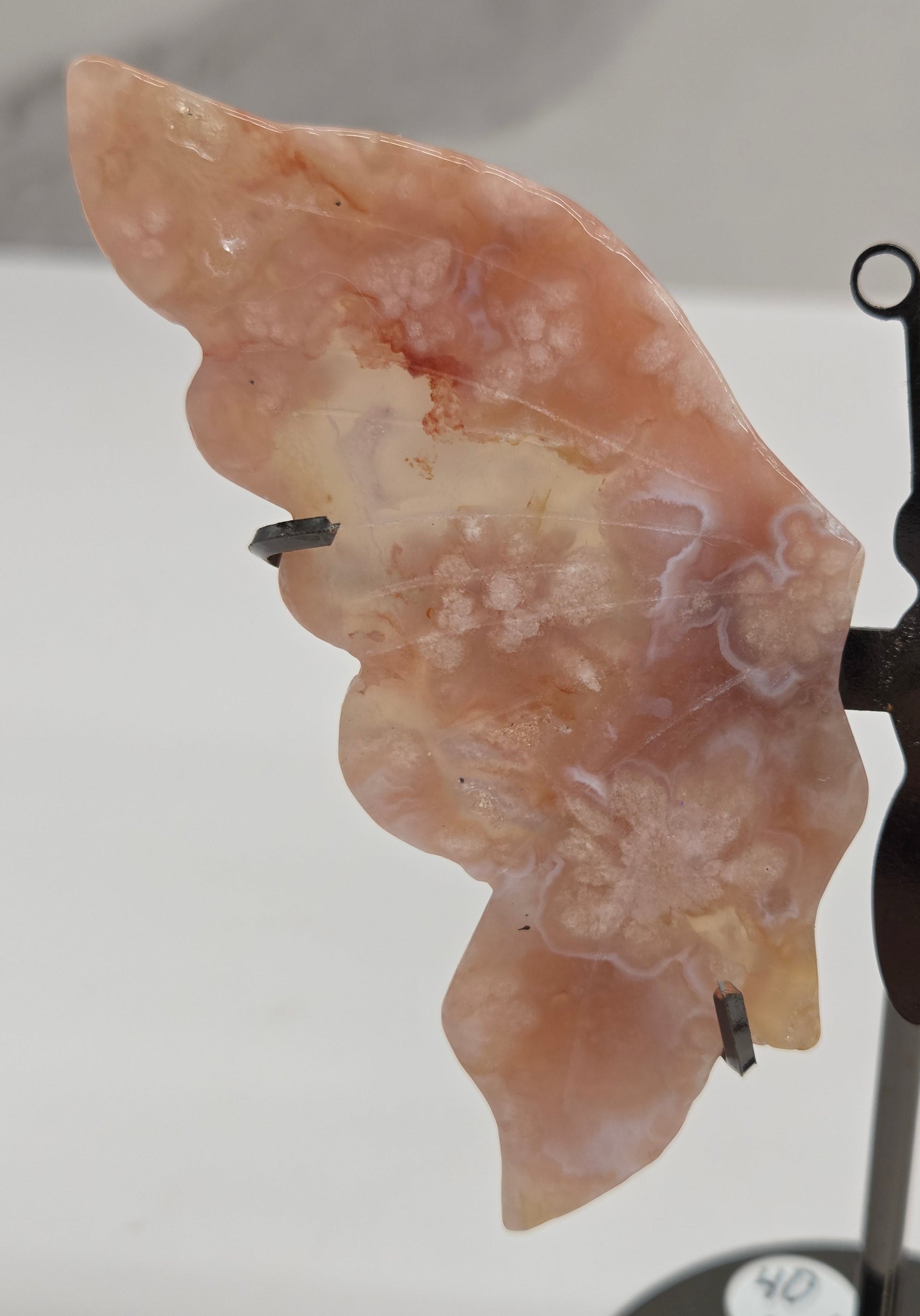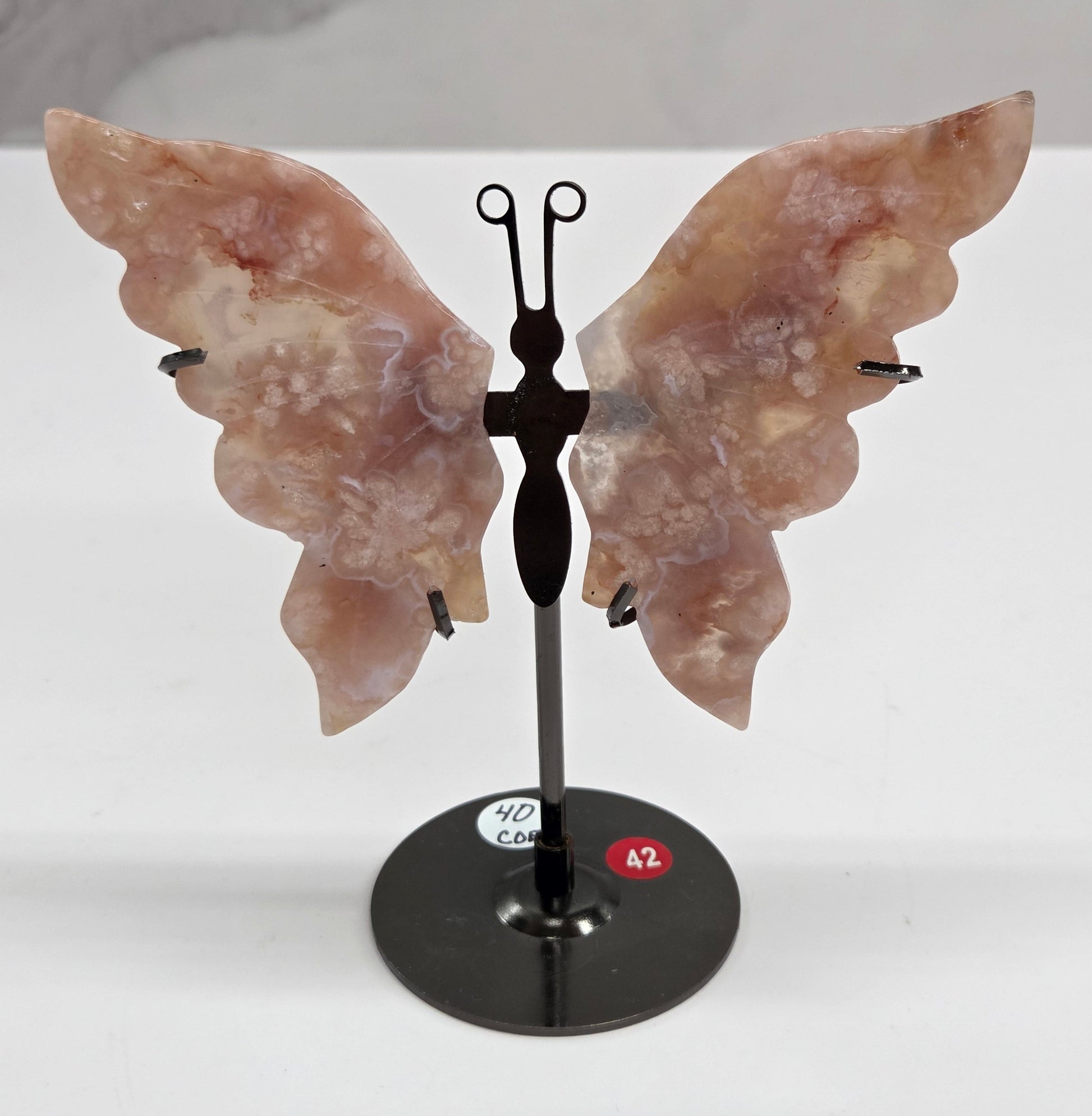 Wings - Pink Amethyst w/ Flower Agate butterfly
