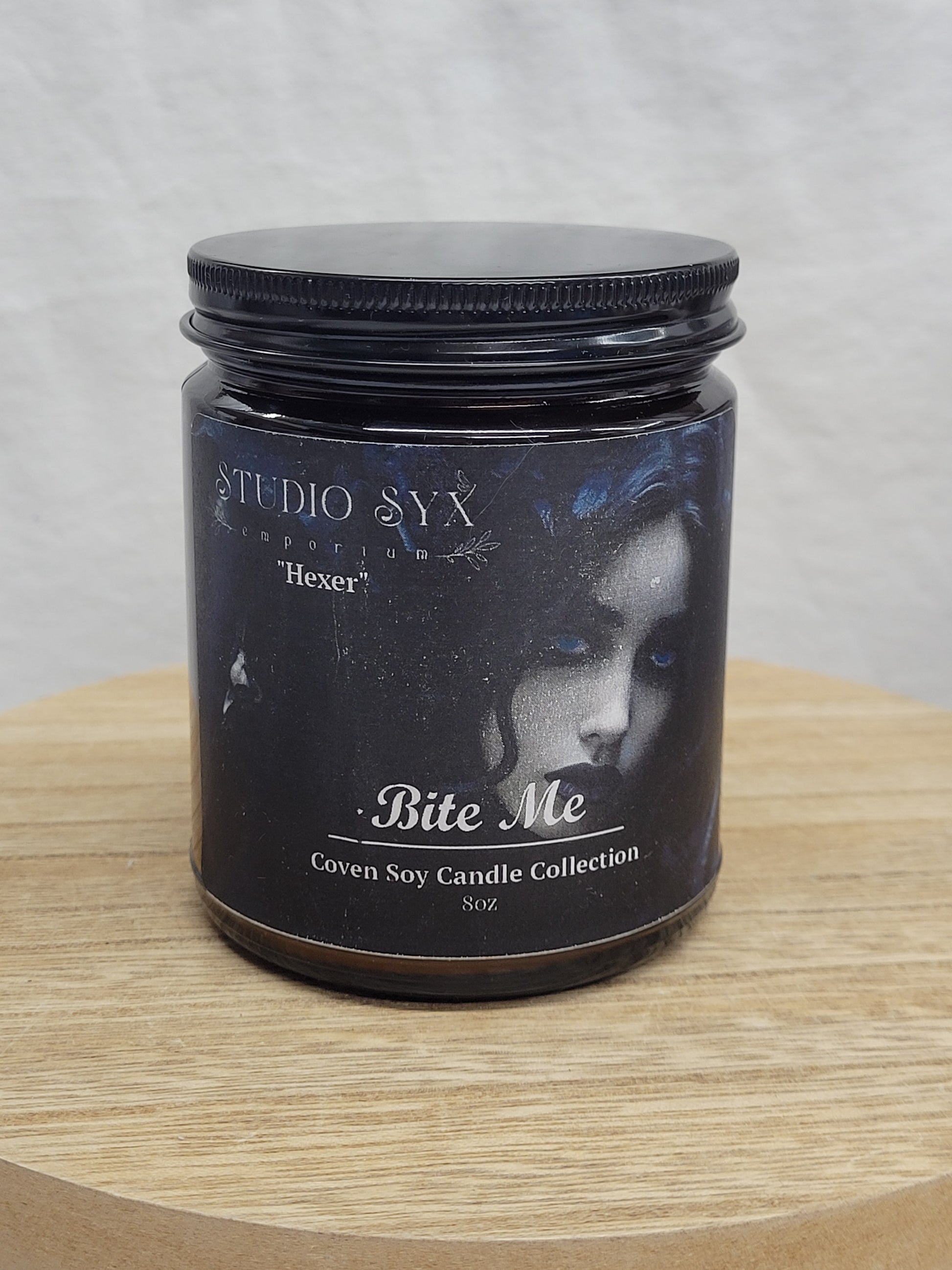 Coven Collection - Bite Me - scent notes: Black Cherry, Orange, Strawberry, Clove, Eucalyptus, Violet, Vanilla Bean.