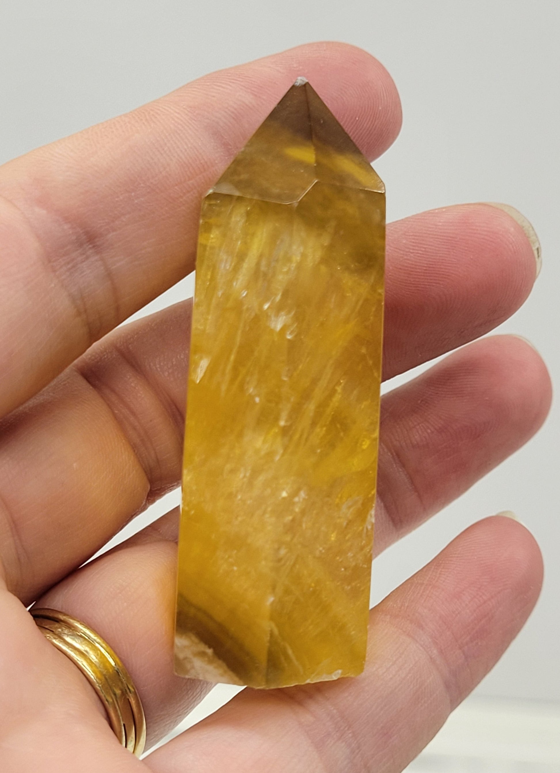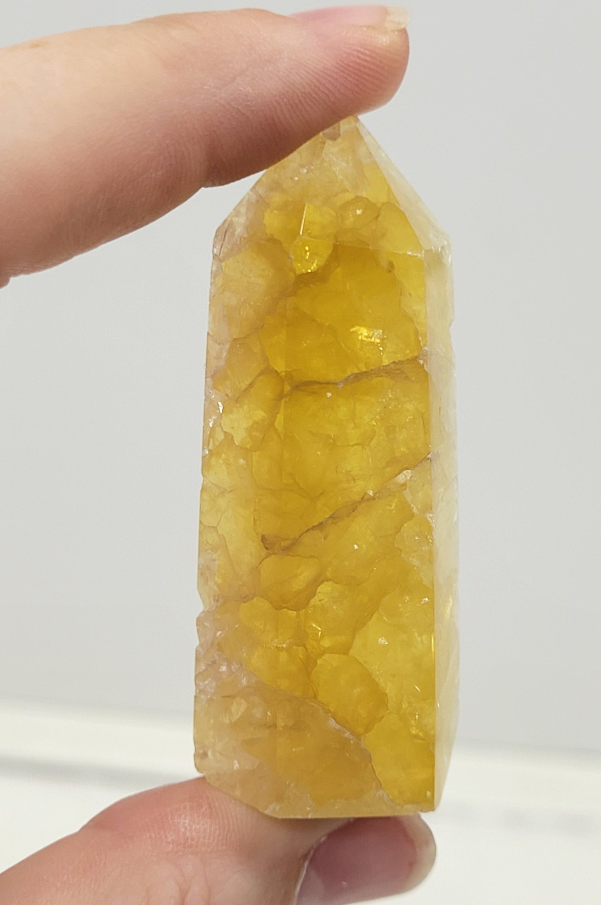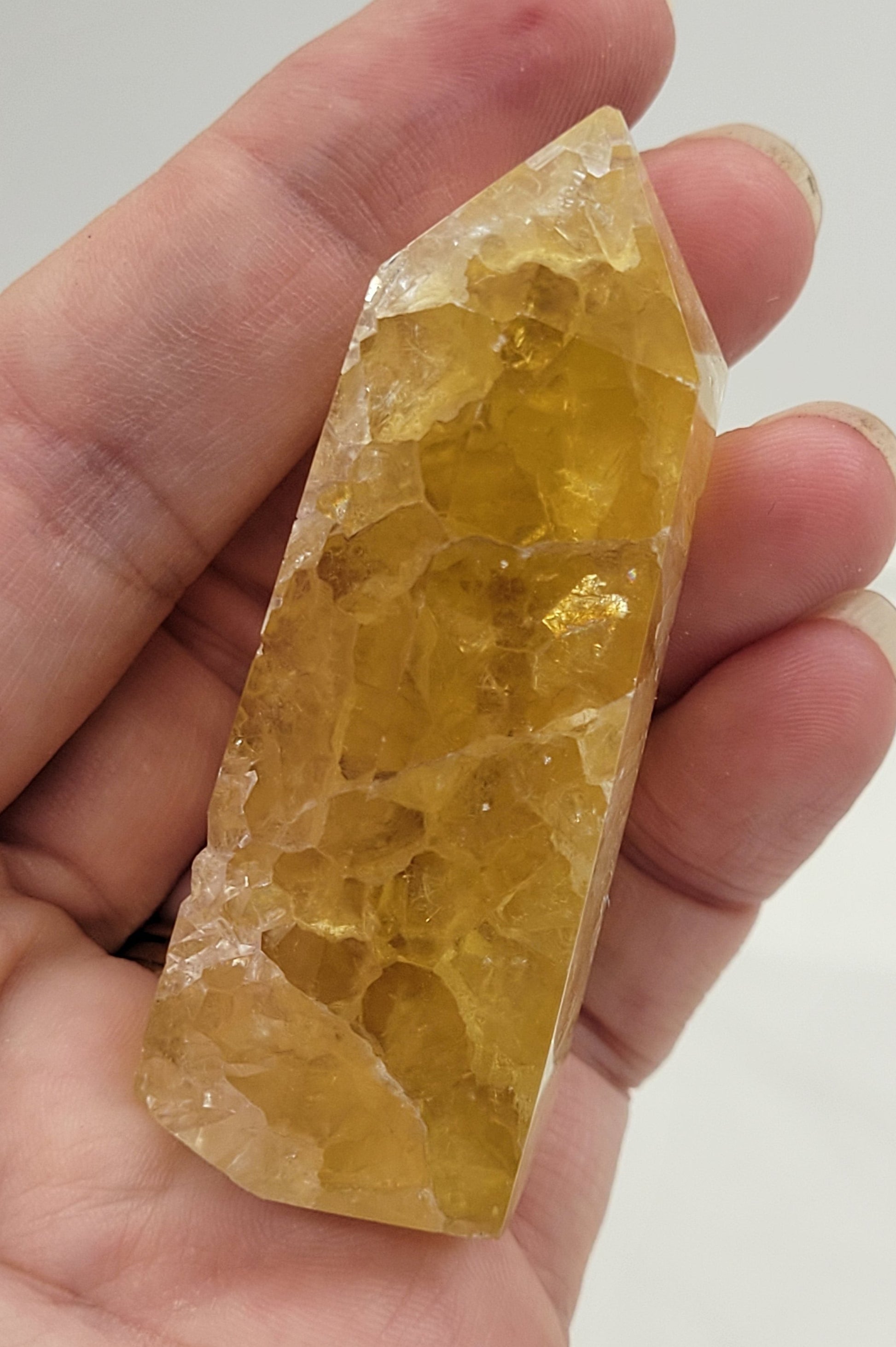 Honeycomb Fluorite towers from Mongolia. They are super gemmy and are a beautiful yellow color. A few of the towers have unique interior structures that resemble honeycomb, hence the name.