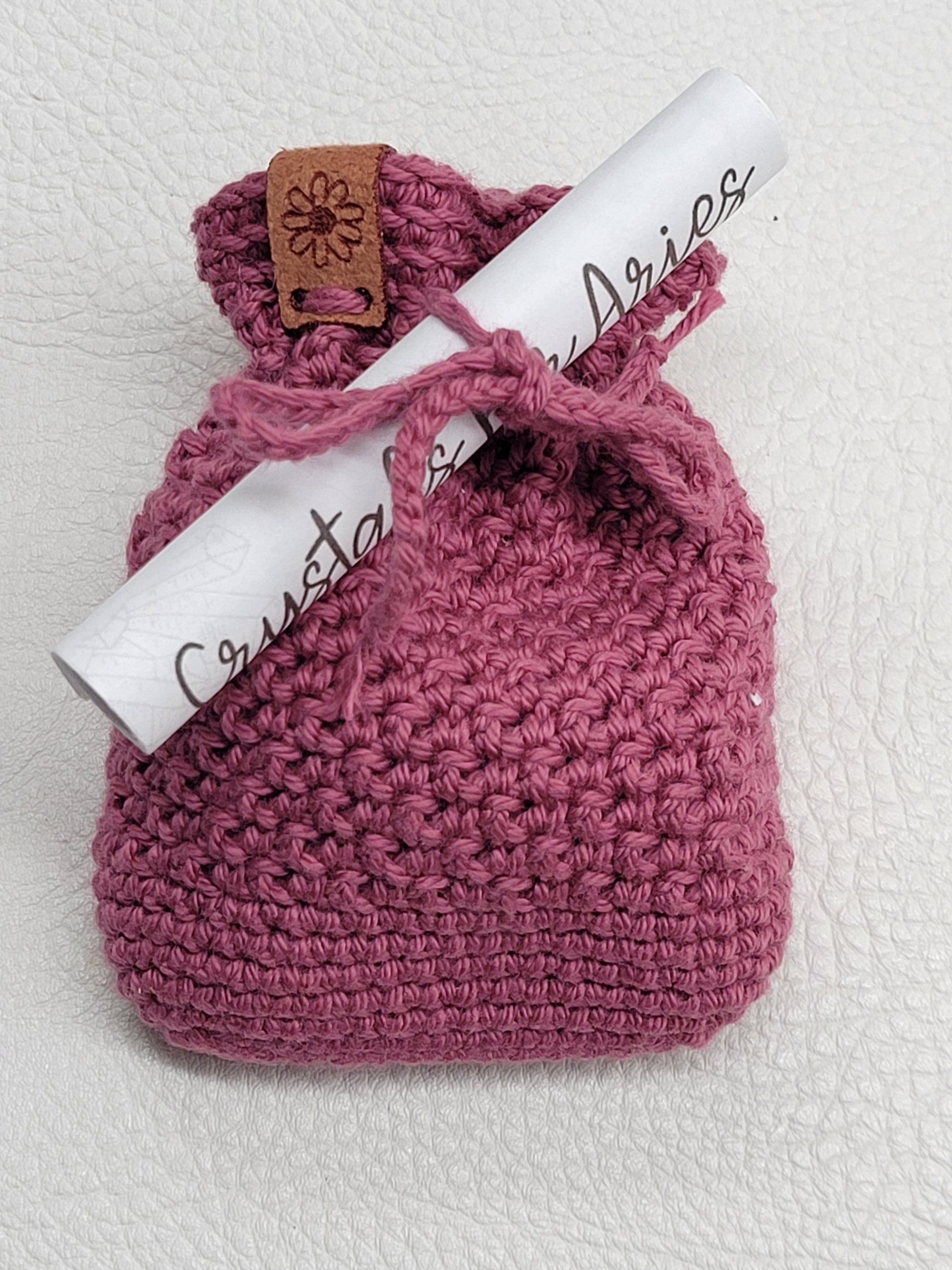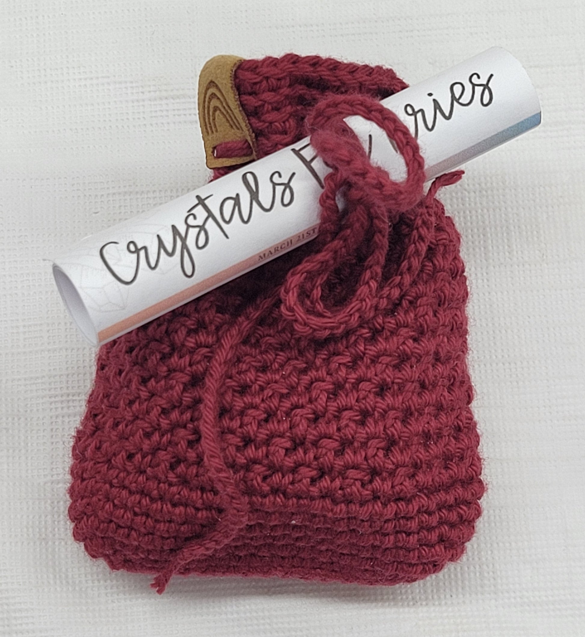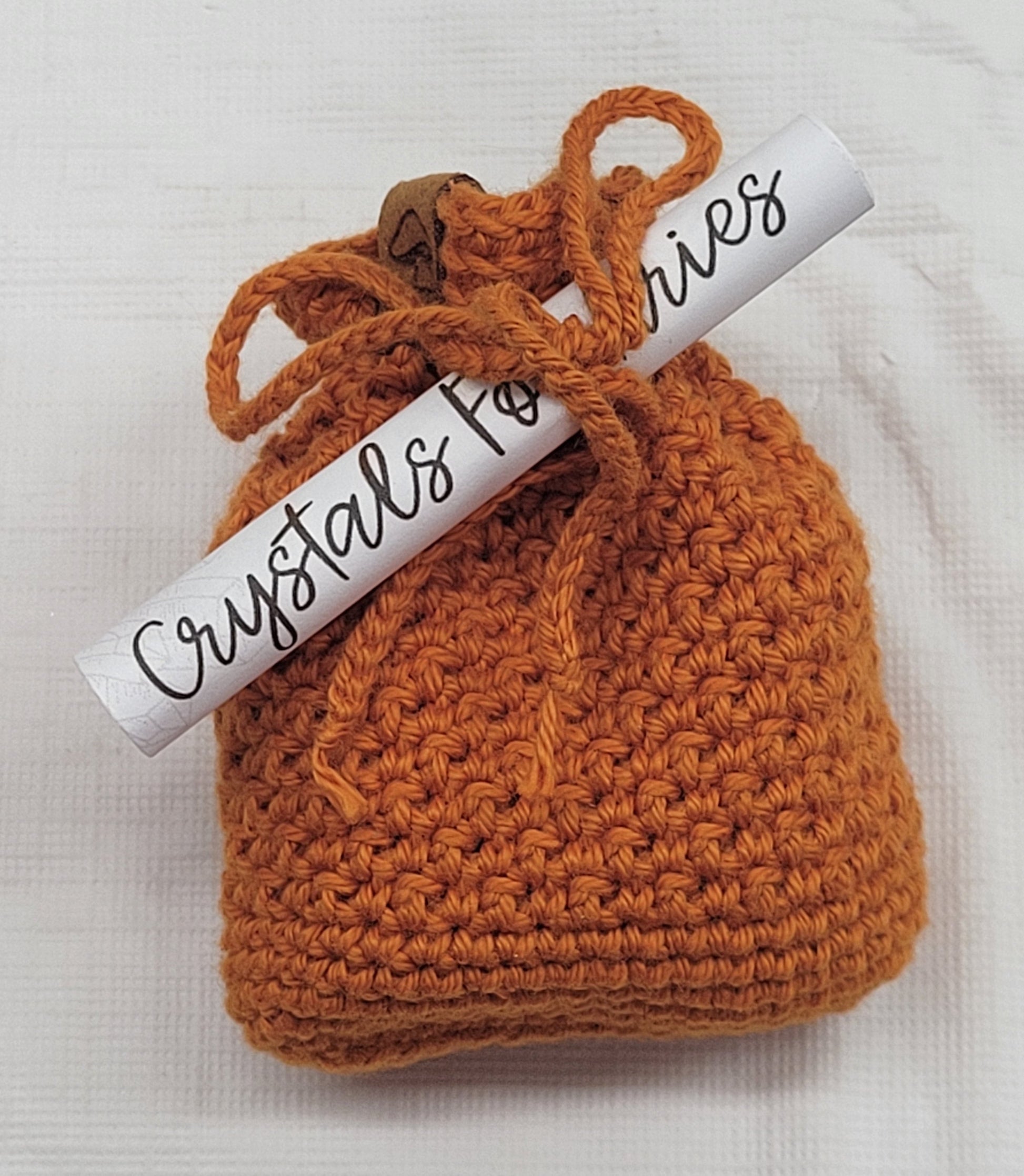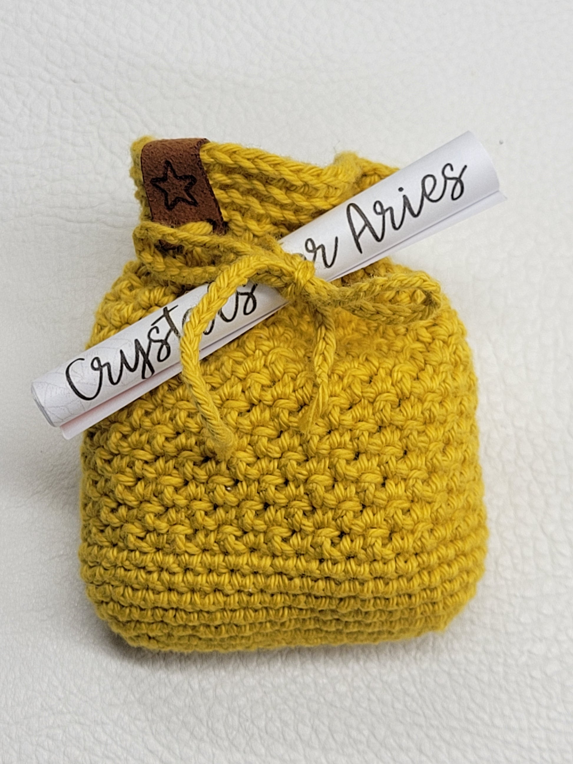 Zodiac tumble bags come with 4 tumbles, an adorable hand crocheted bag and a scroll explaining the metaphysical properties of the tumbles.