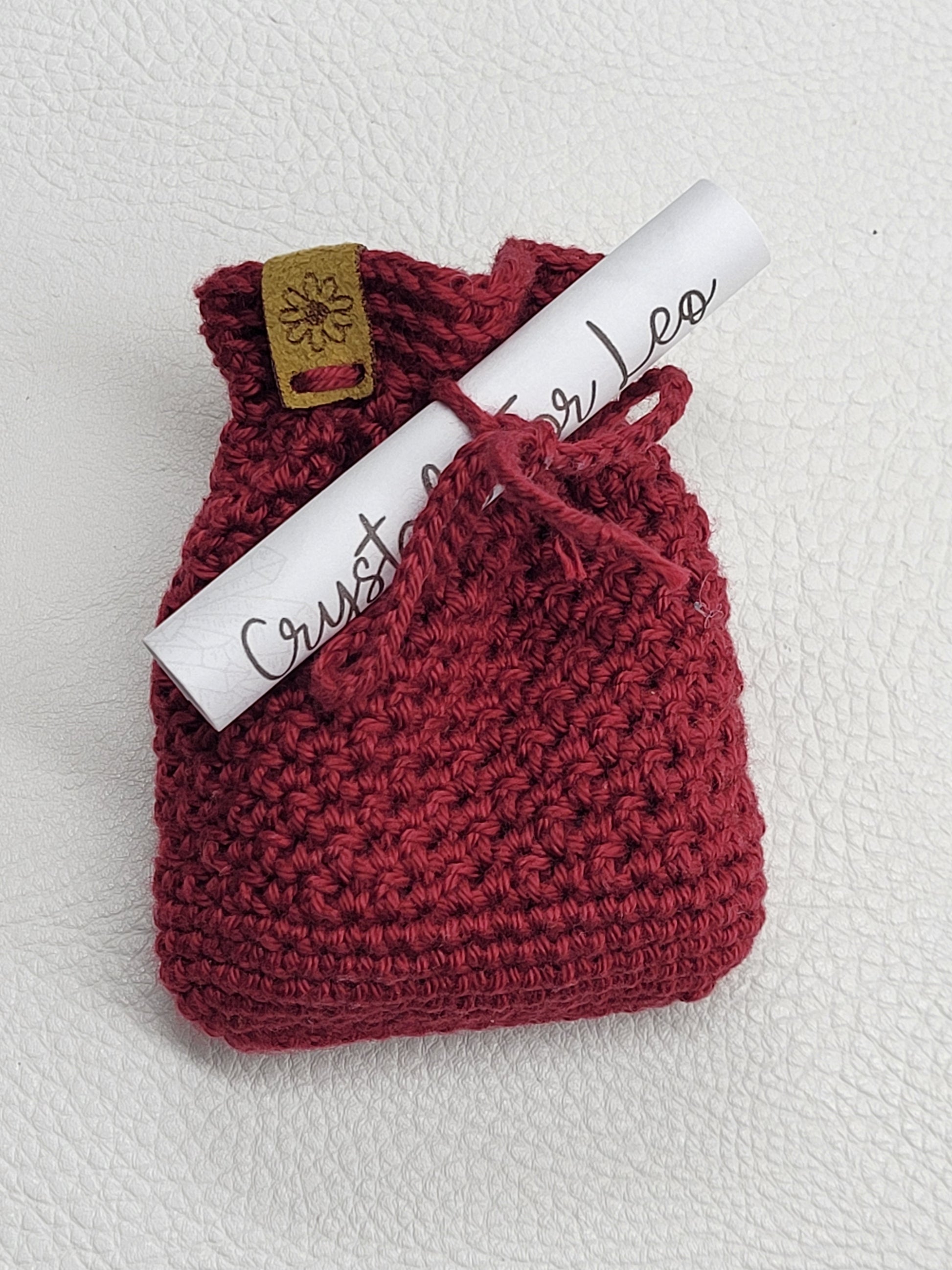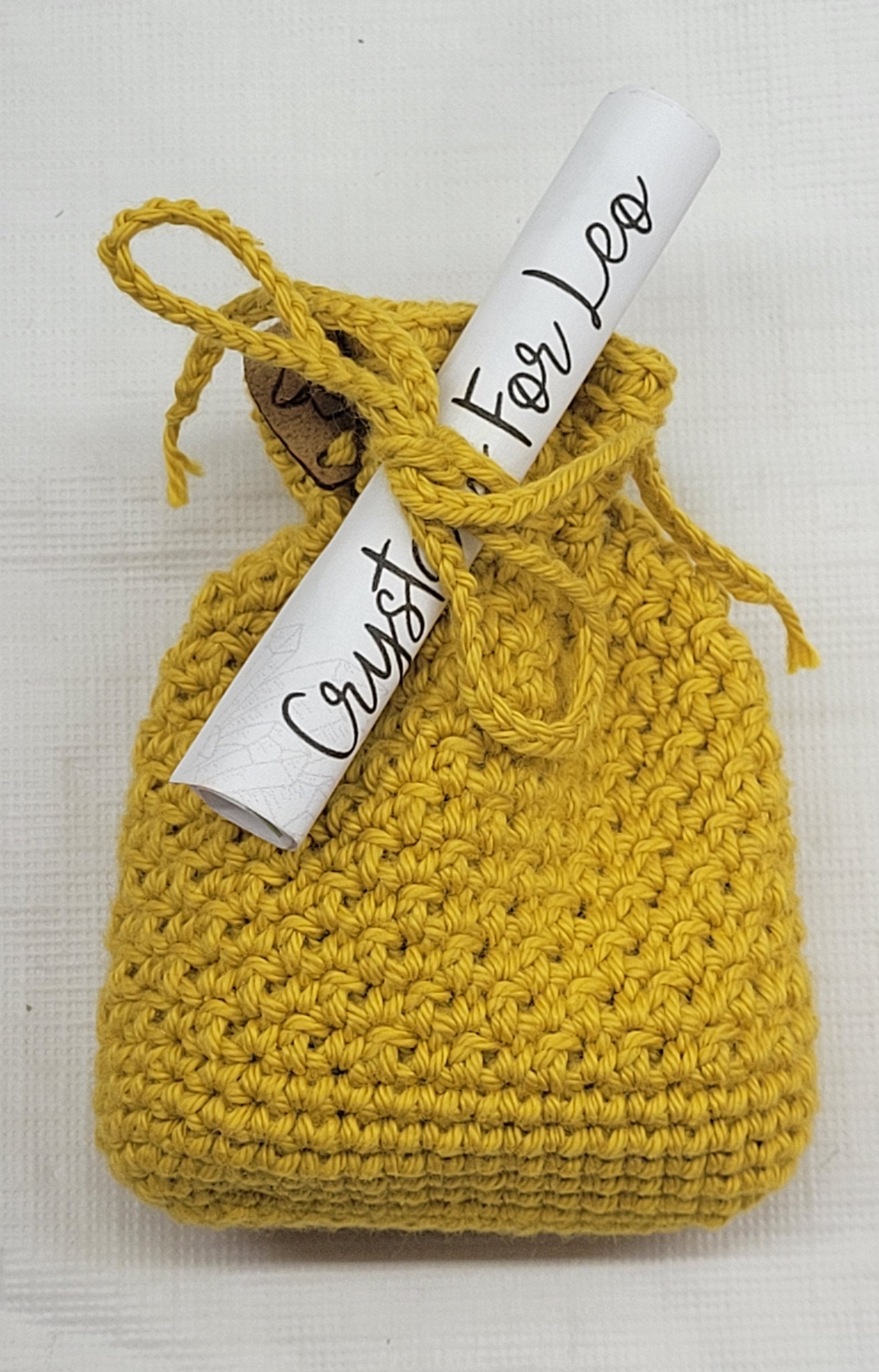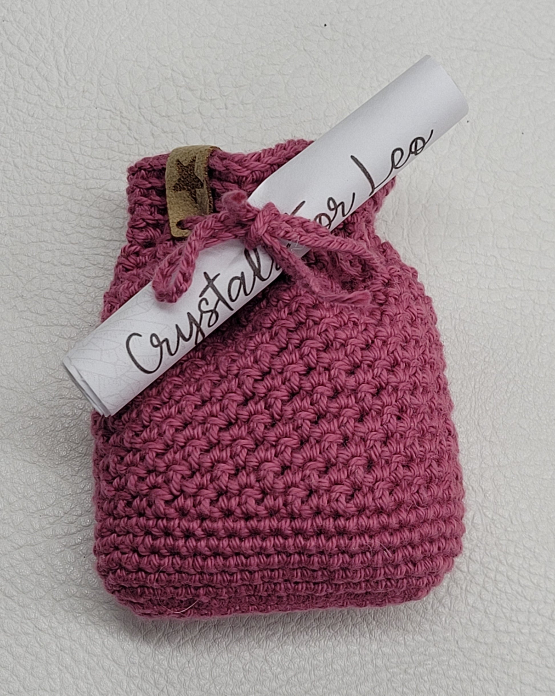 Zodiac tumble bags come with 4 tumbles, an adorable hand crocheted bag and a scroll explaining the metaphysical properties of the tumbles.