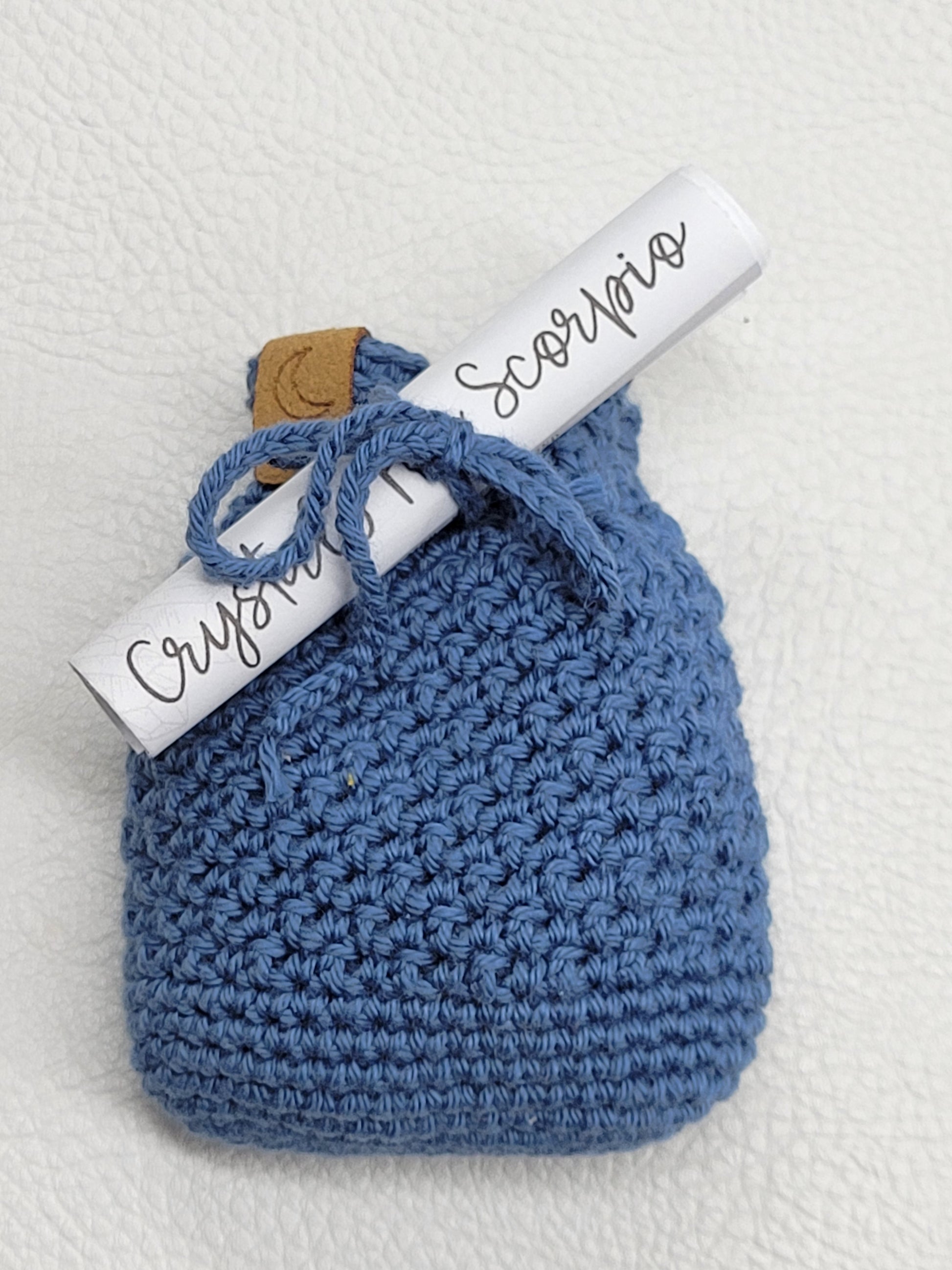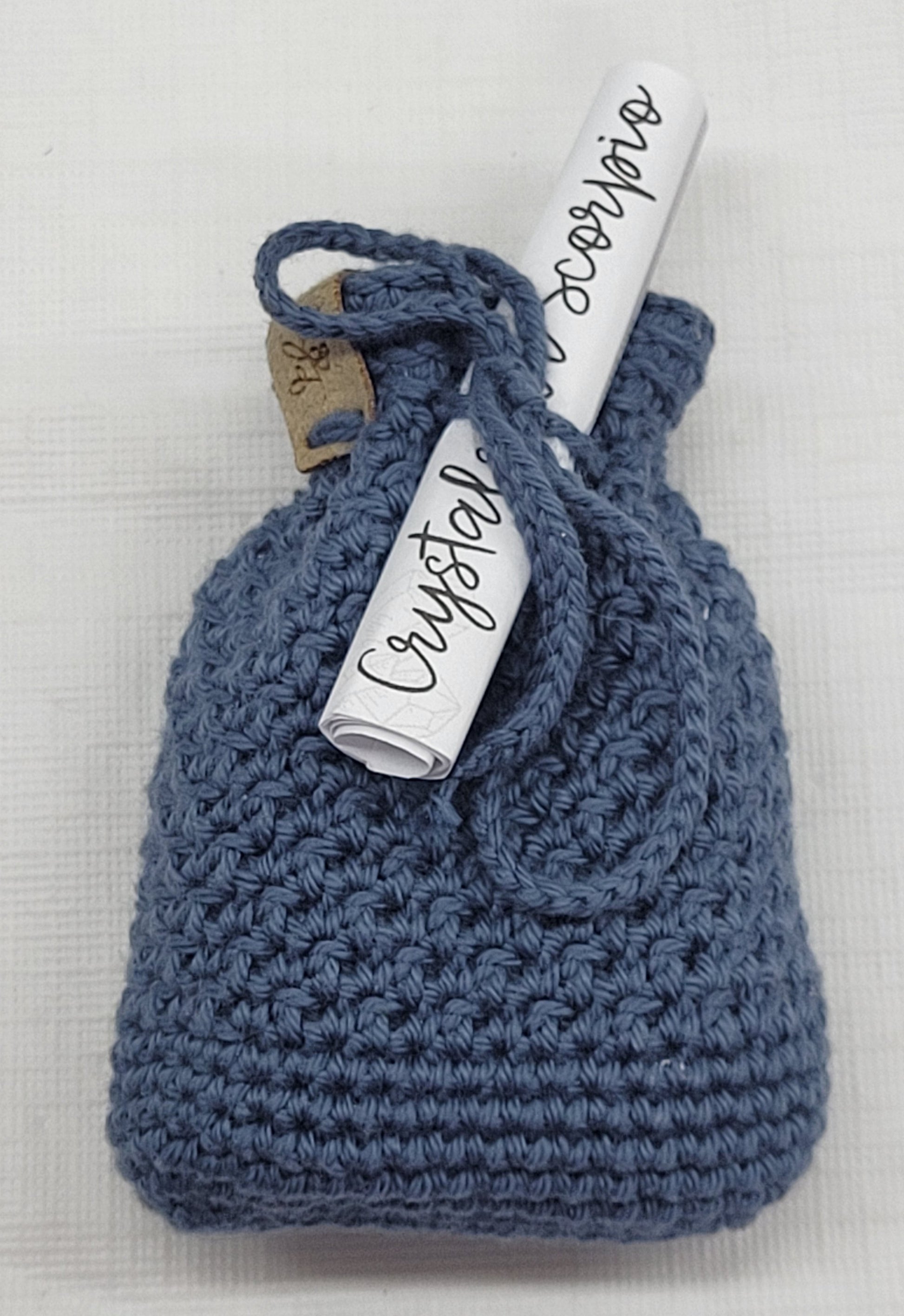 Zodiac tumble bags come with 4 tumbles, an adorable hand crocheted bag and a scroll explaining the metaphysical properties of the tumbles.